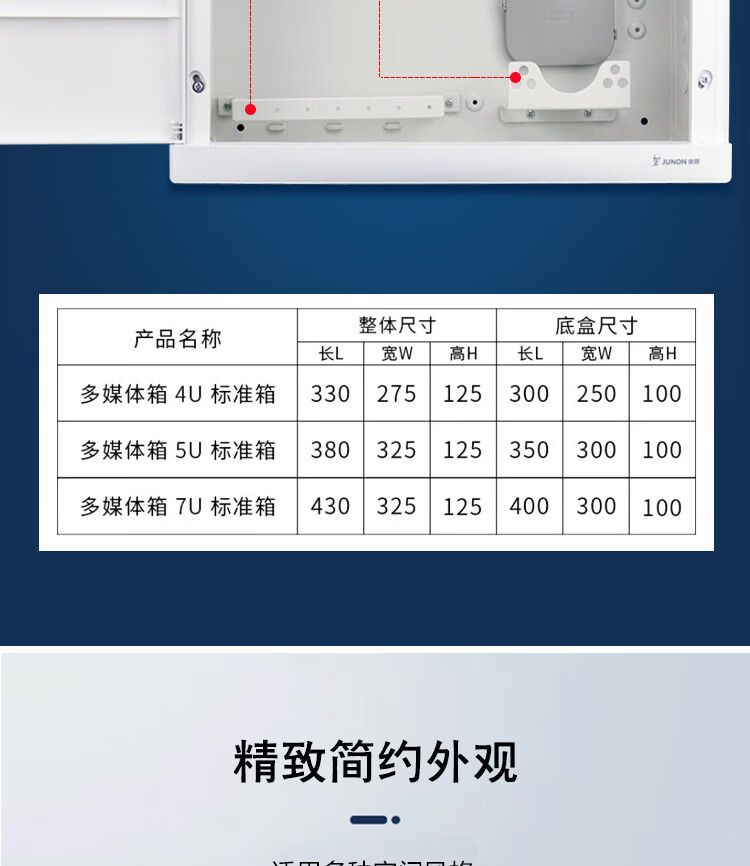 俊朗R10光纤箱多媒体信息箱网络电视布线箱家用弱电箱V10配电箱 俊朗R10光纤箱型号4U