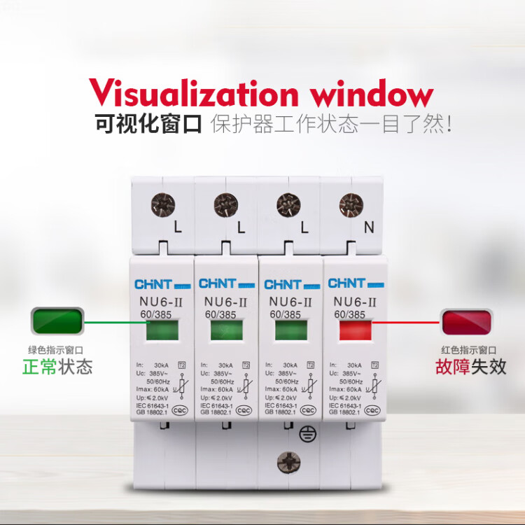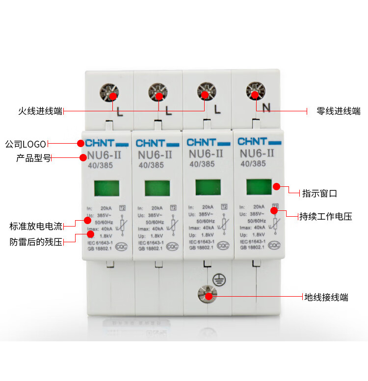 正泰电涌保护器NU6II防雷器040KA385V4P避雷器器浪涌保 40KA 4P