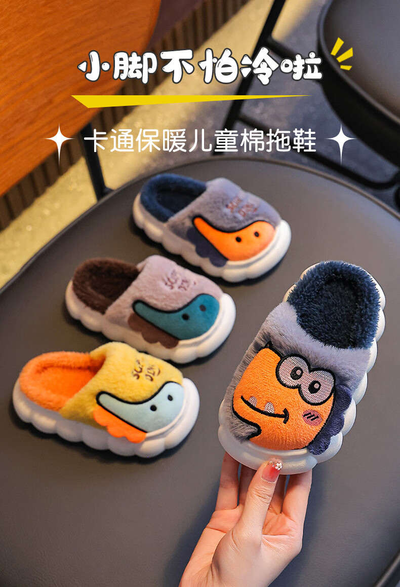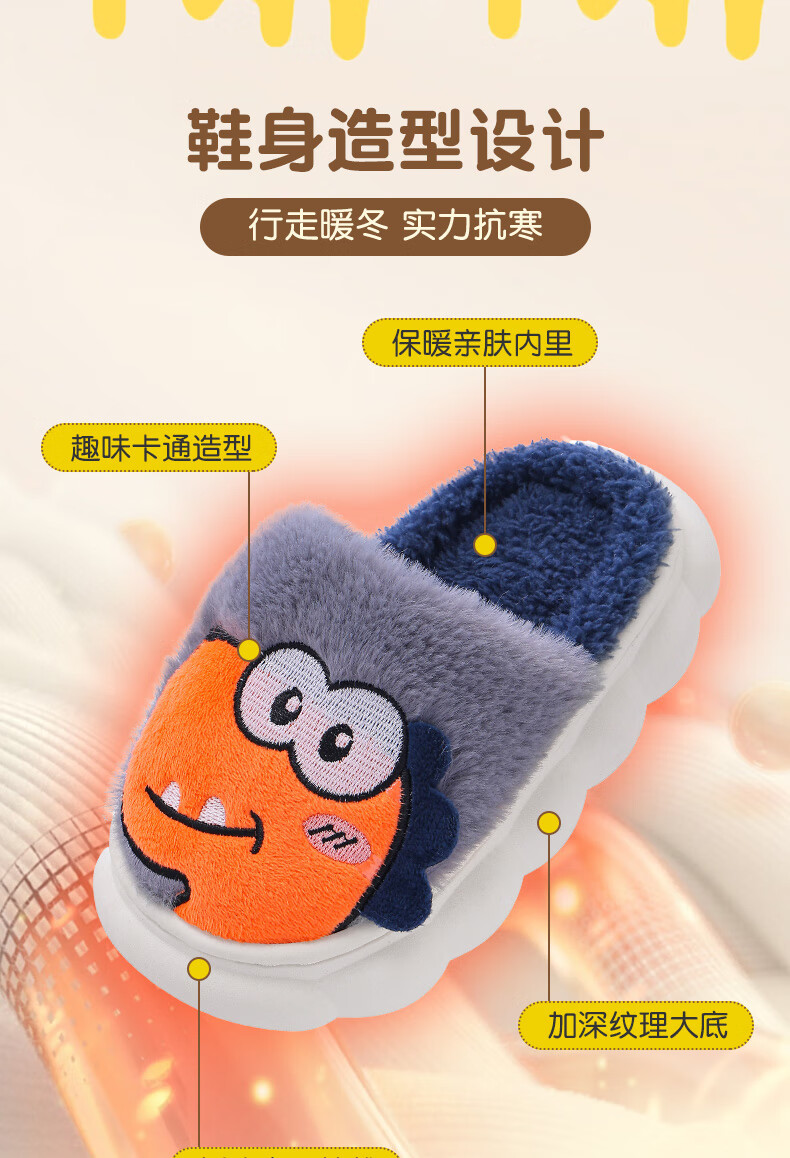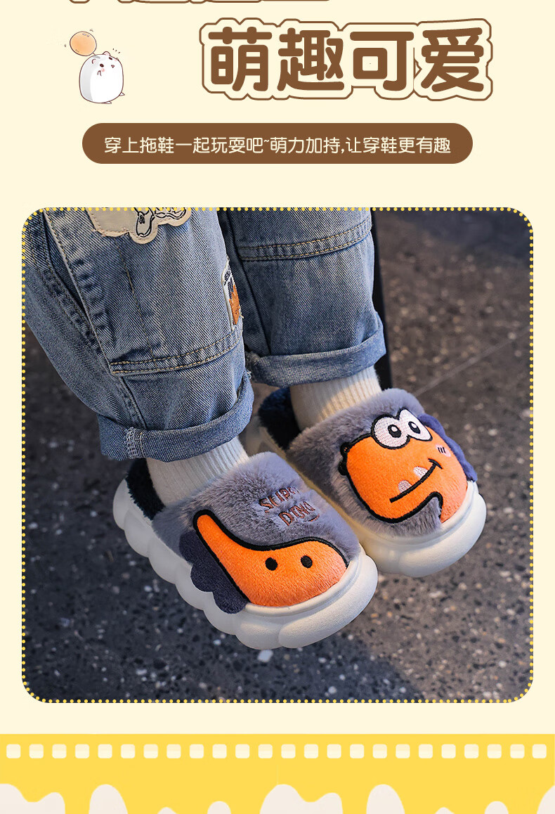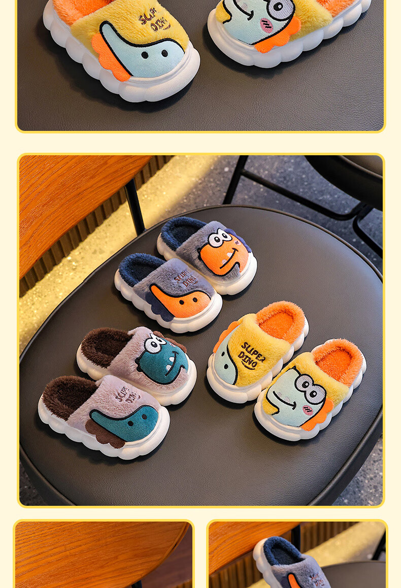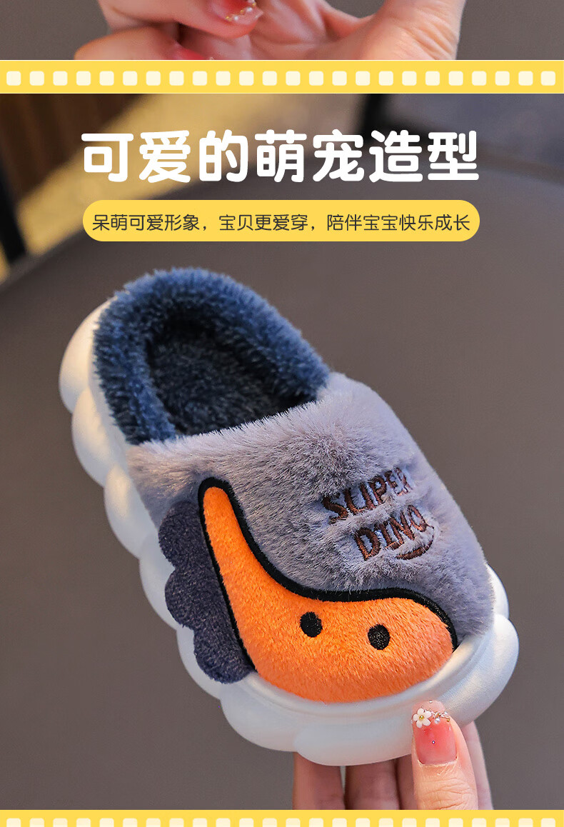 儿童棉拖鞋秋冬男童室内家居2025新款女宝宝小孩恐龙防滑亲子拖鞋 升级版灰色拖鞋 12 35/36码(鞋内长21CM适合脚长20