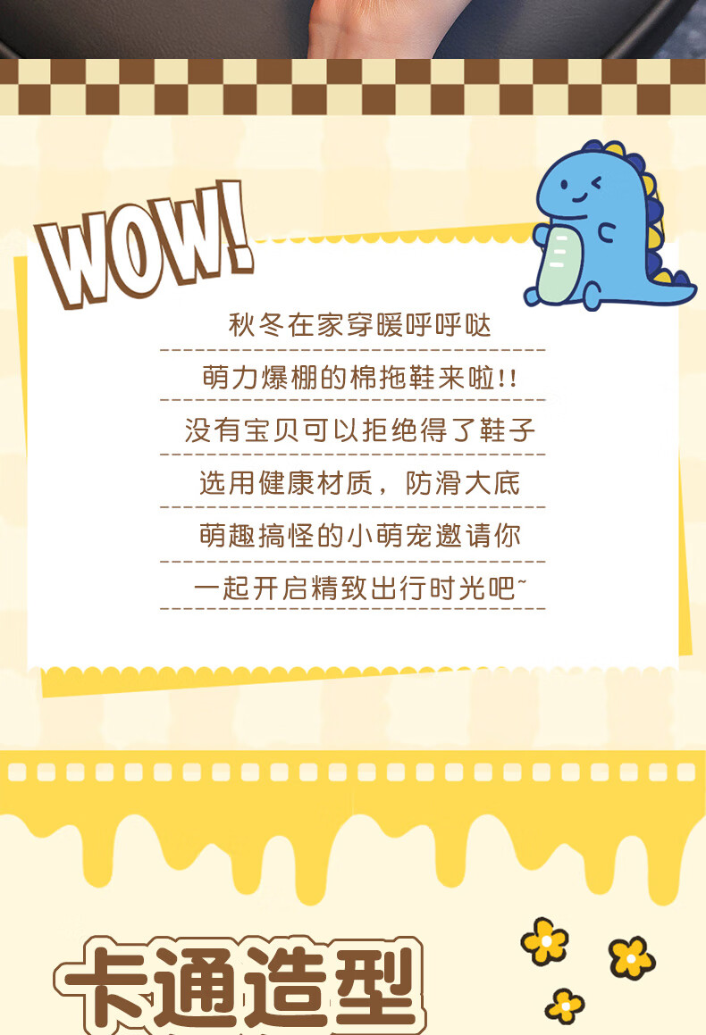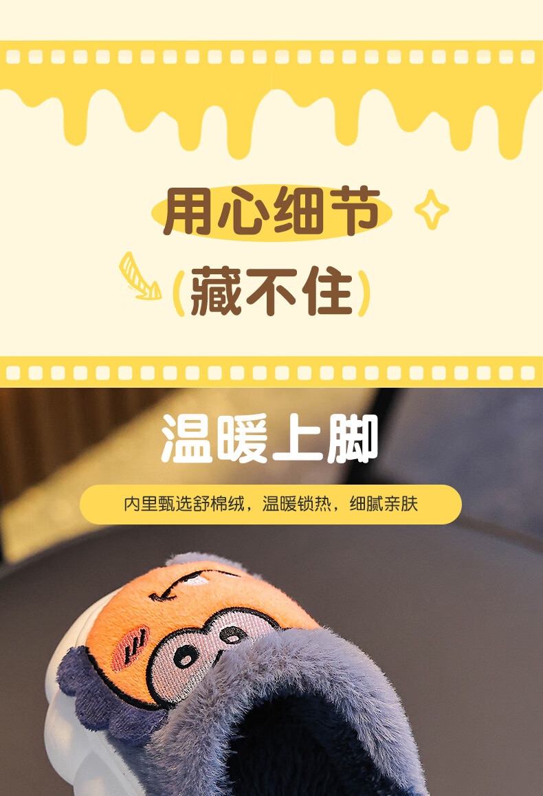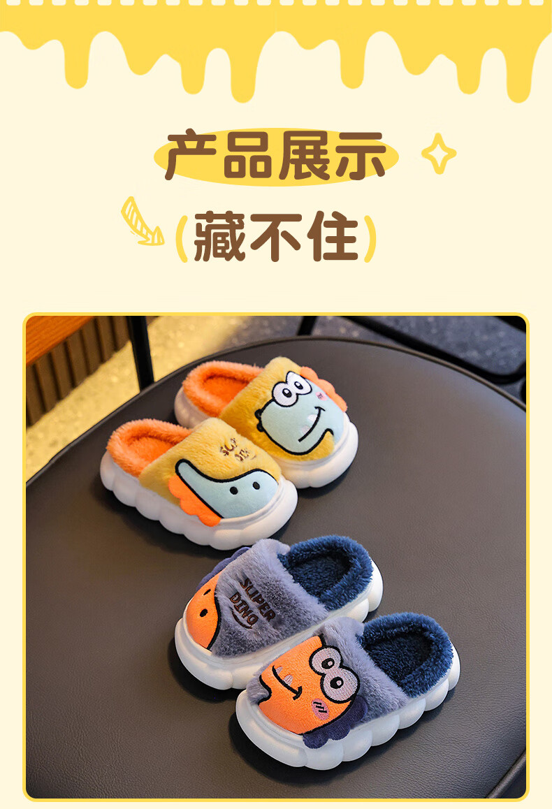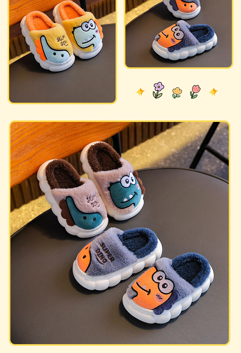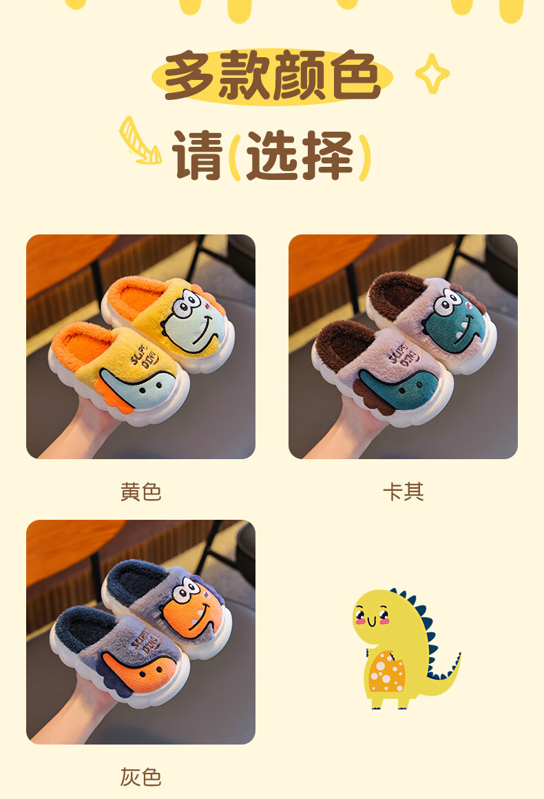 儿童棉拖鞋秋冬男童室内家居2025新款女宝宝小孩恐龙防滑亲子拖鞋 升级版灰色拖鞋 12 35/36码(鞋内长21CM适合脚长20