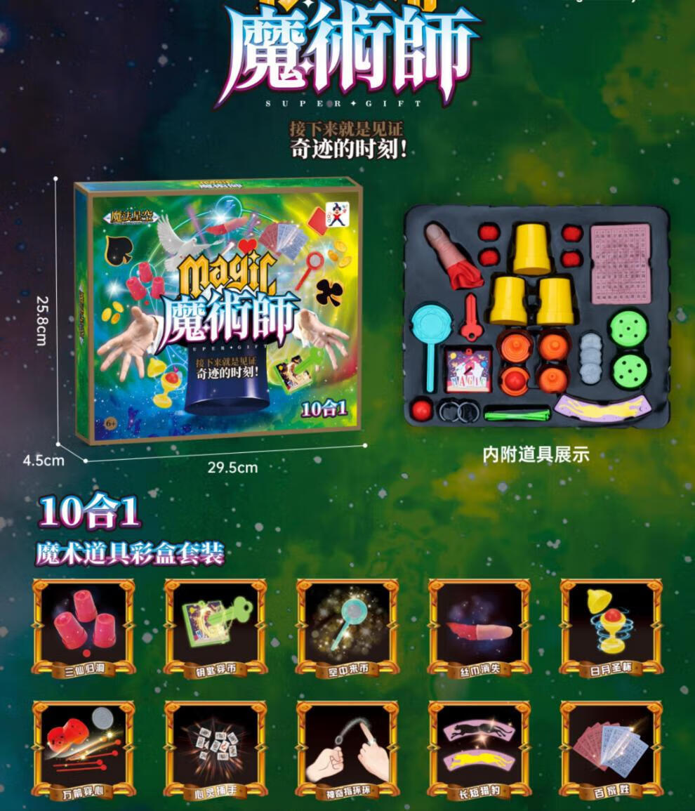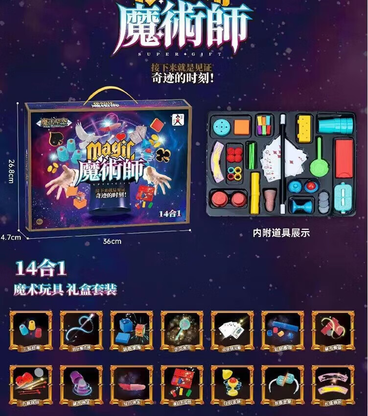 MPPMCK magician prop set children's close-up stage magic performance teaching toy for primary school students to become a magic man 42-piece magic prop set