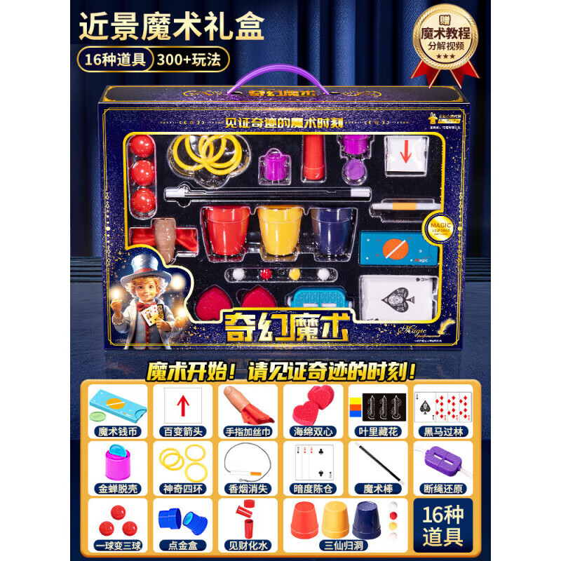 RICH YOUR HOME德国品质魔术玩具儿童魔术礼盒魔术道具集变脸玩具扑克魔术玩具 视觉魔术套装-16件套[手提礼盒] 均码