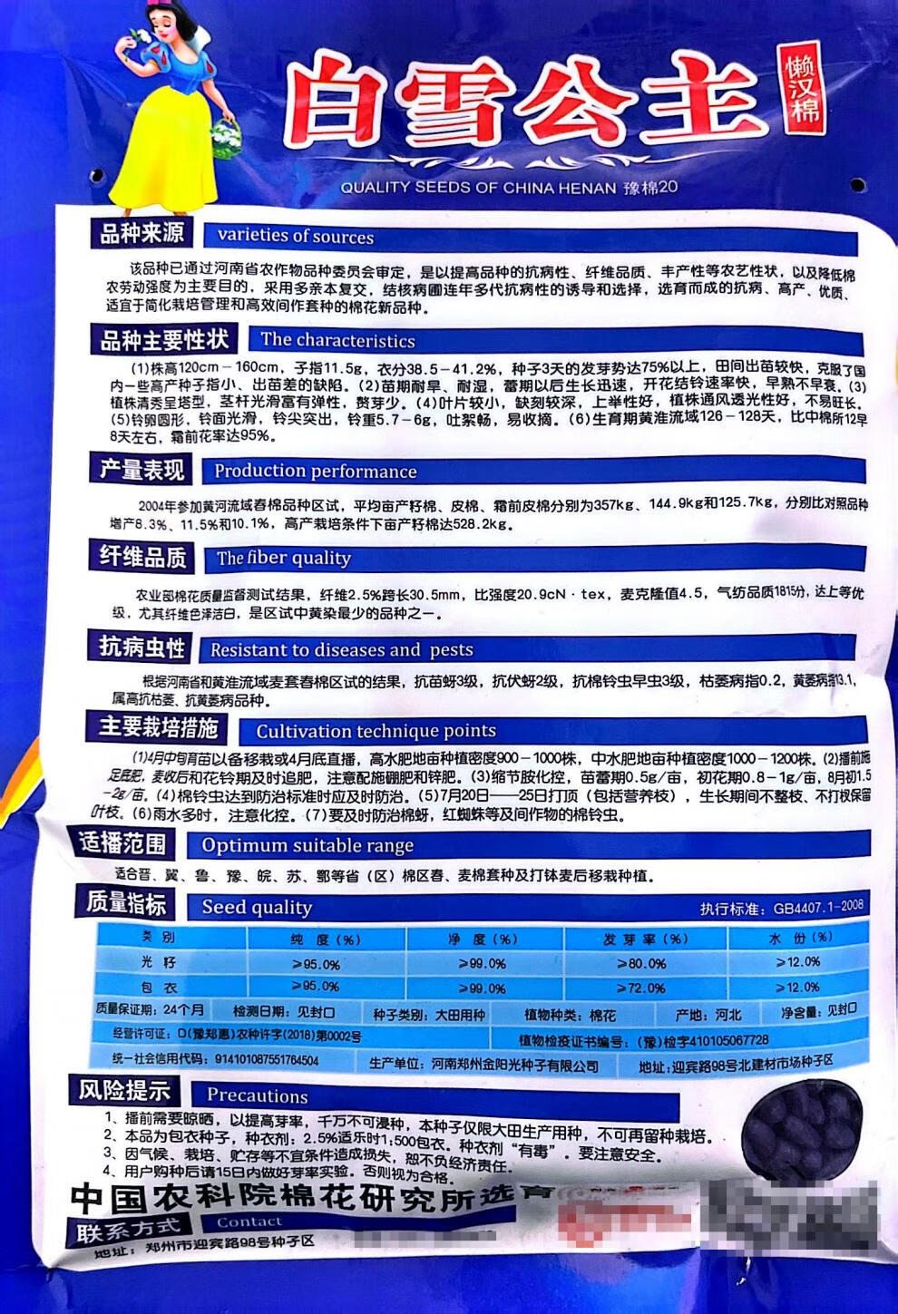 Qiuying lazy cotton cotton seeds for field planting, agricultural high-yielding spring seeds, insect-resistant cotton for all seasons, Snow White lazy cotton 10 grams, about 90 pieces