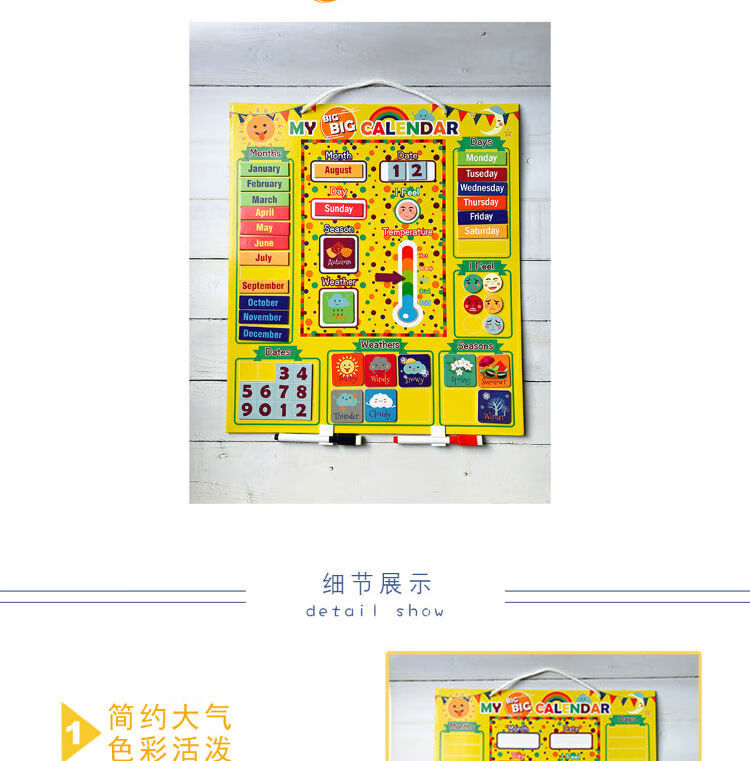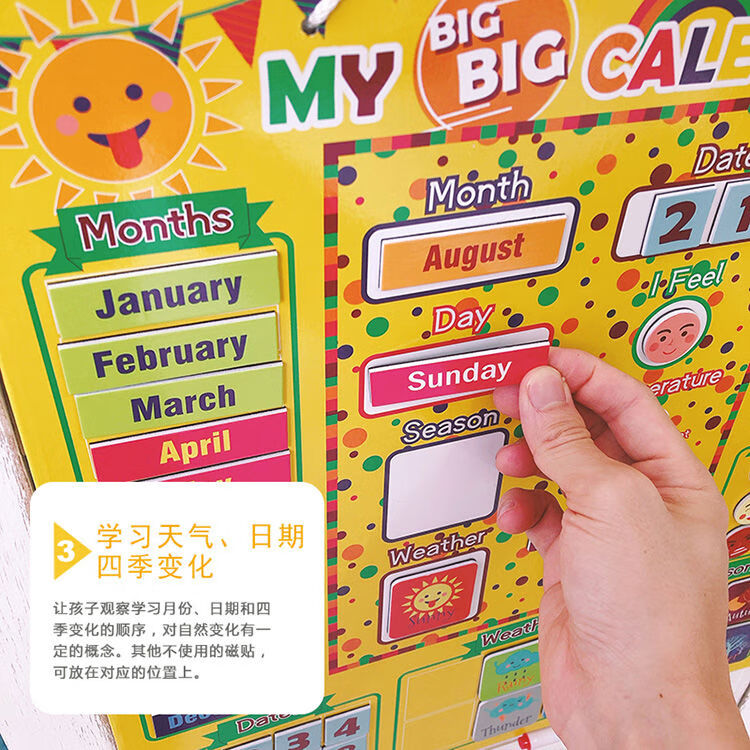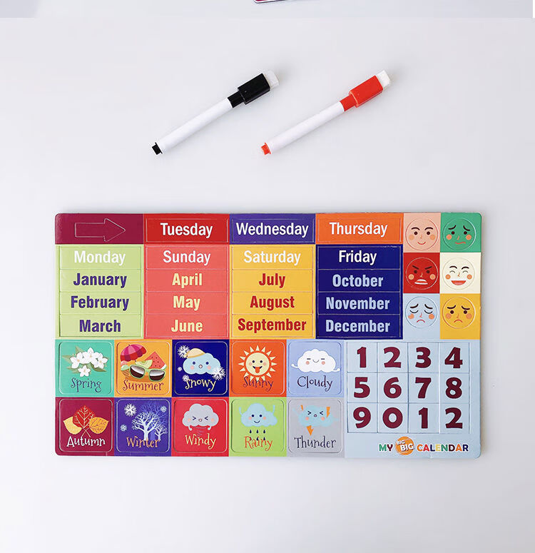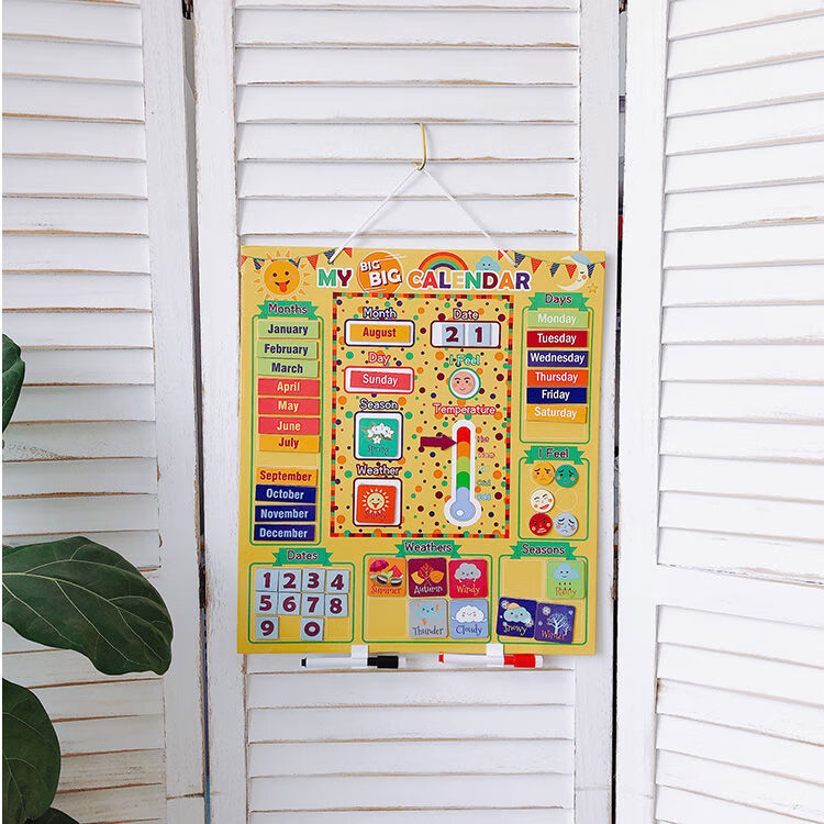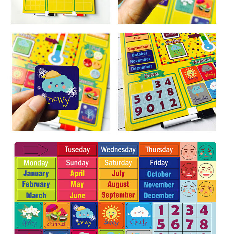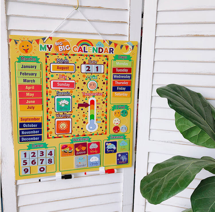 Детский календарь погоды на четыре сезона на китайском и английском языках. Магнитная наклейка. Стираемая подвесная доска. Осведомленность ребенка, экспортированная в Европу. Маленький традиционный китайский календарь 40X30 см.