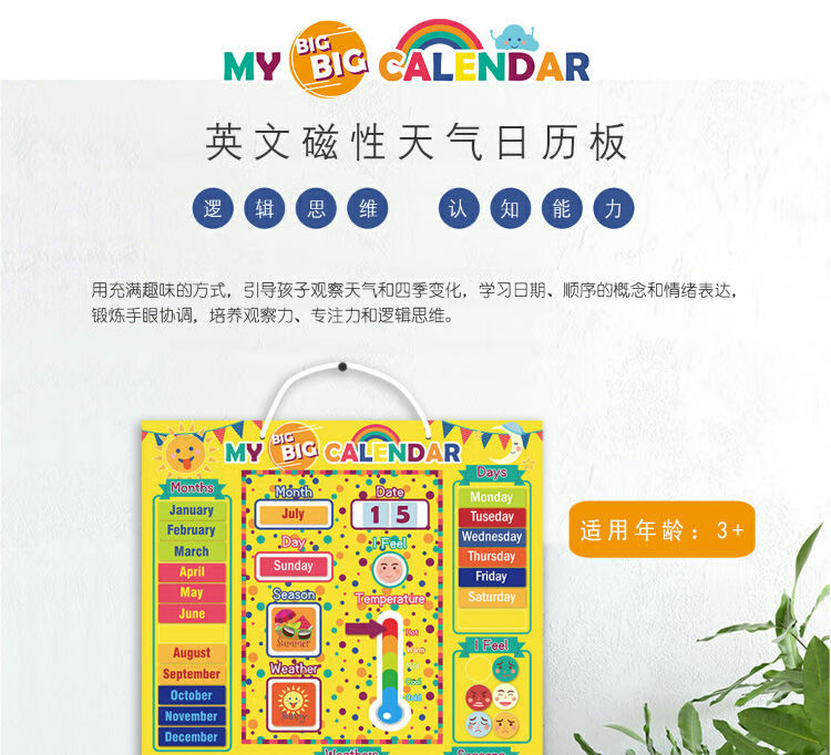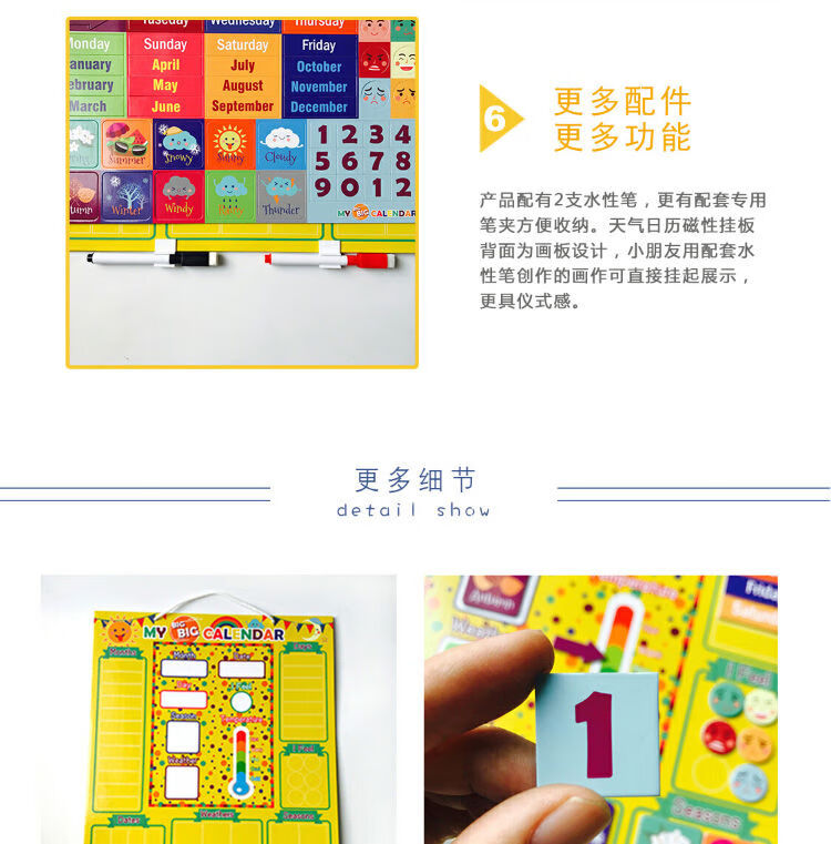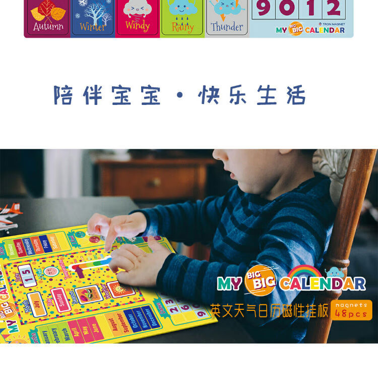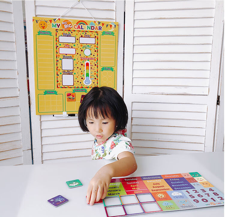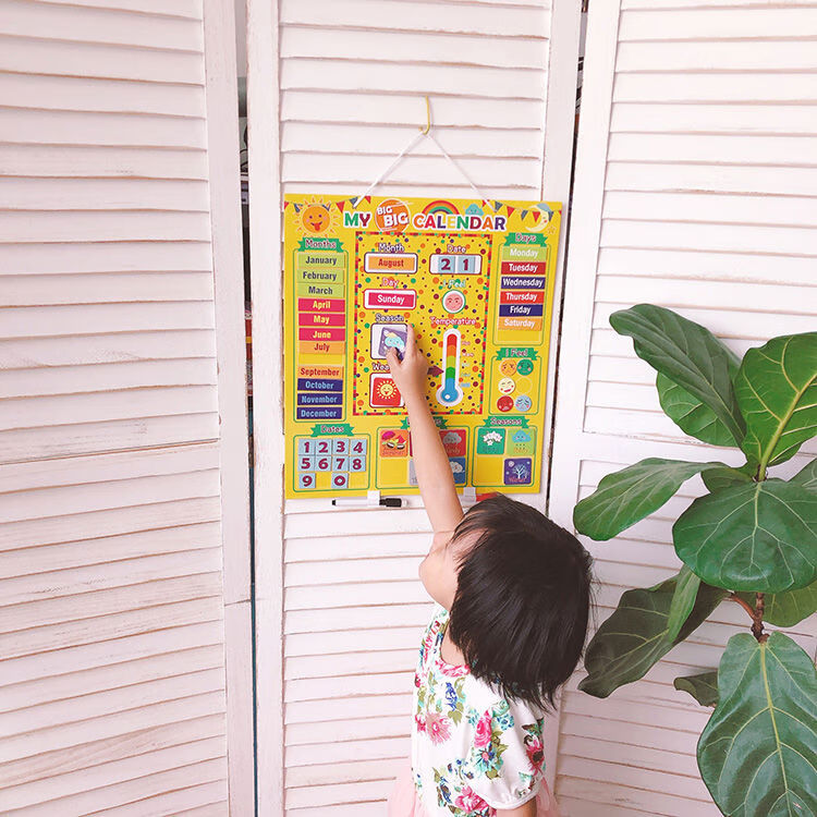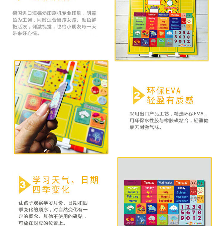 Детский календарь погоды на четыре сезона на китайском и английском языках. Магнитная наклейка. Стираемая подвесная доска. Осведомленность ребенка, экспортированная в Европу. Маленький традиционный китайский календарь 40X30 см.