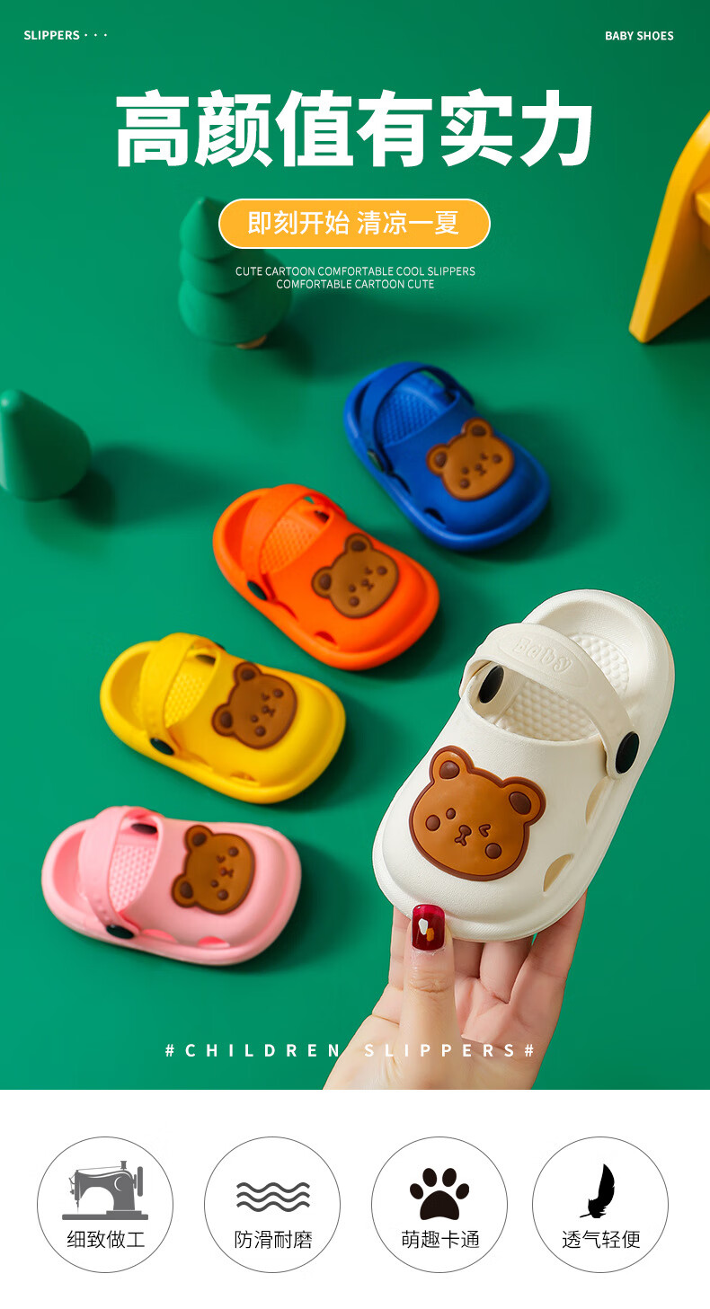 Children's Croc Shoes Boys Sandals Soft Soled Boys Girls Beach Shoes New Medium and Large Children Baotou Anti-collision Slippers Dark Blue Size 20-21 Inner Length 13cm