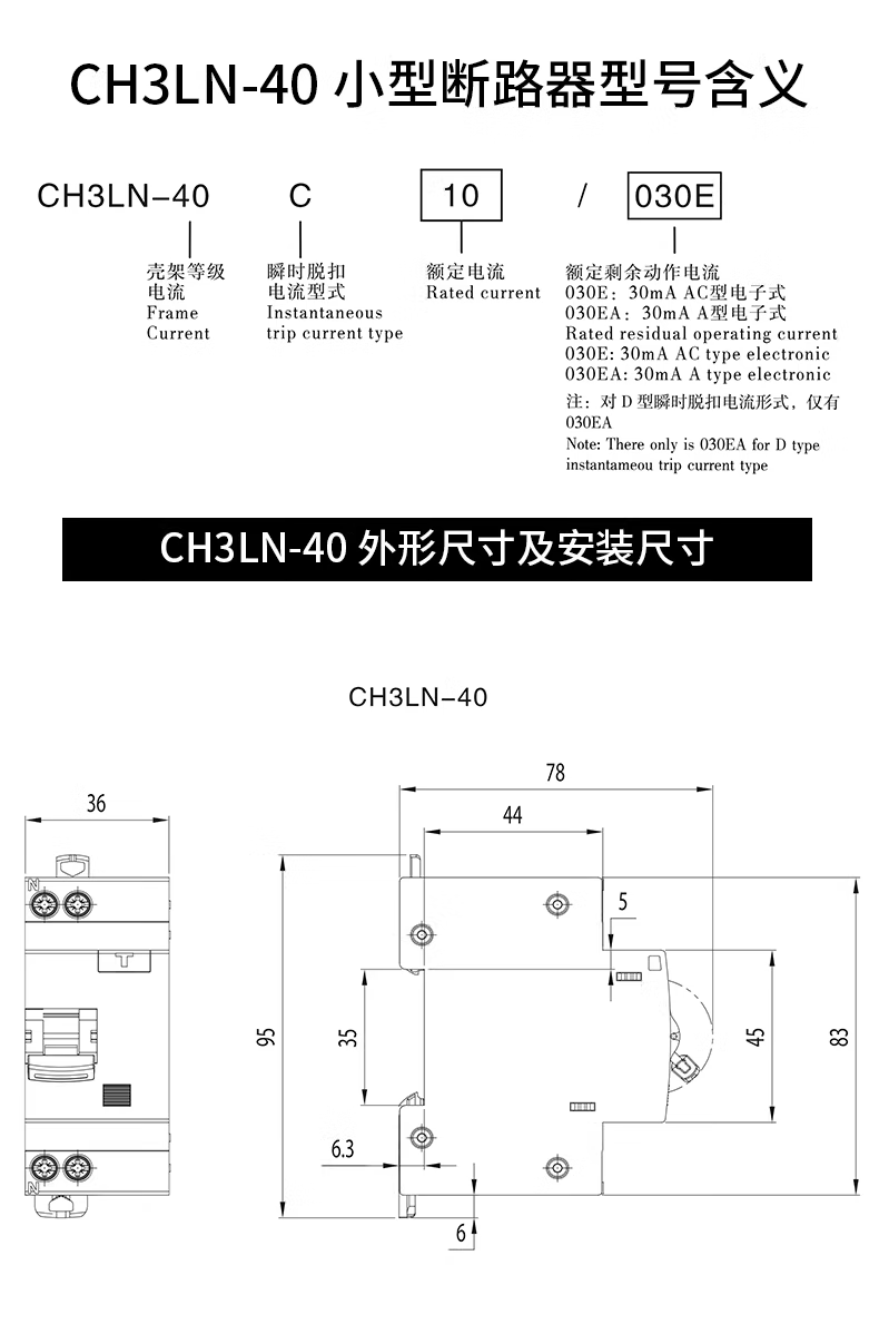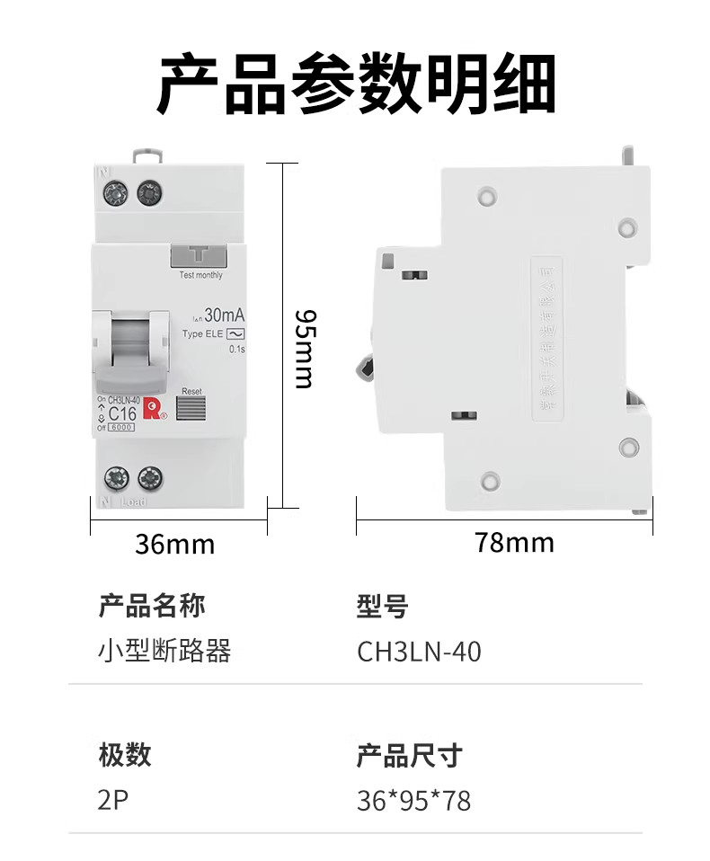 常熟开关制造有限公司(原常熟开关厂)常熟开关厂CH3LN-40漏电断路器DPN双进双出10A16A20A25A32A40A 1P+N/C型 6A