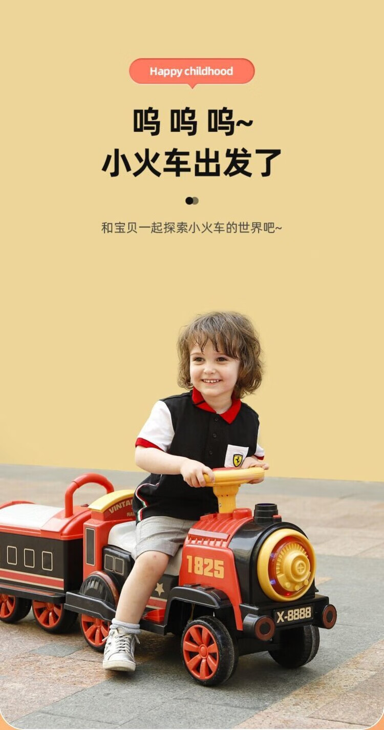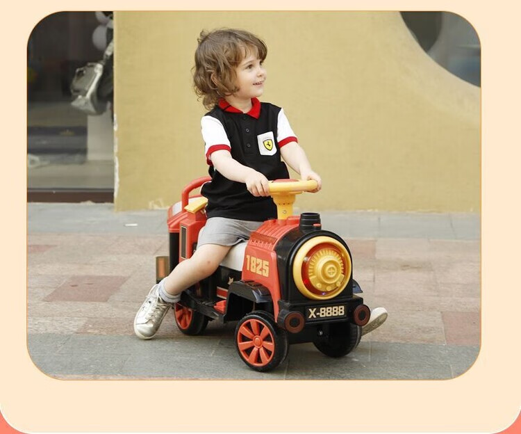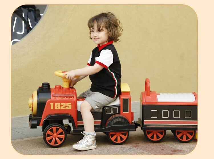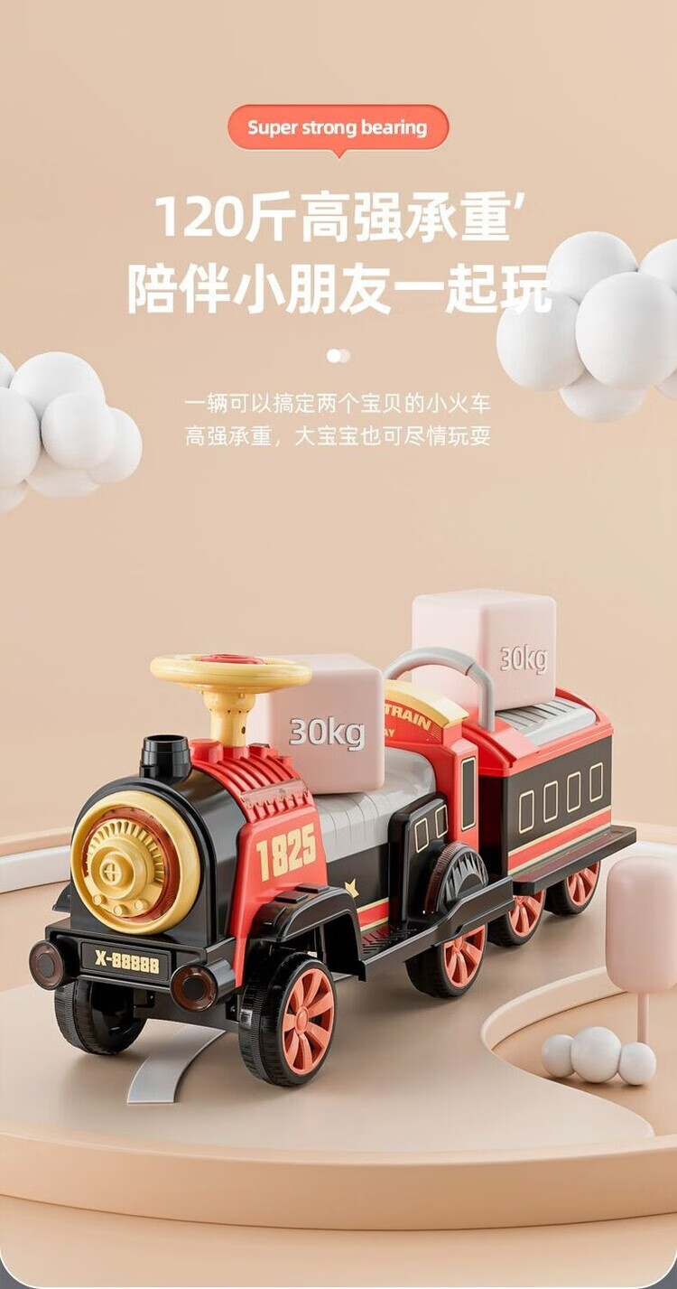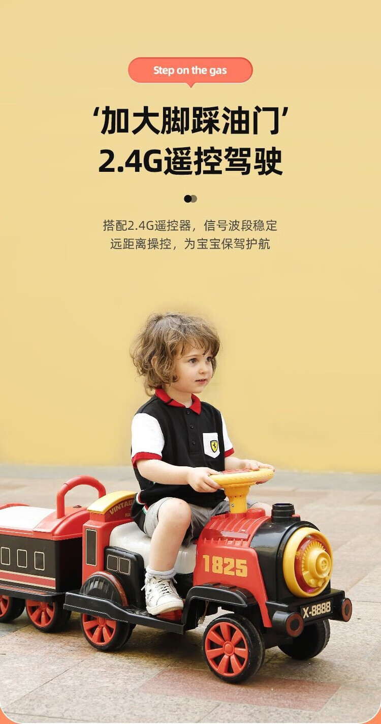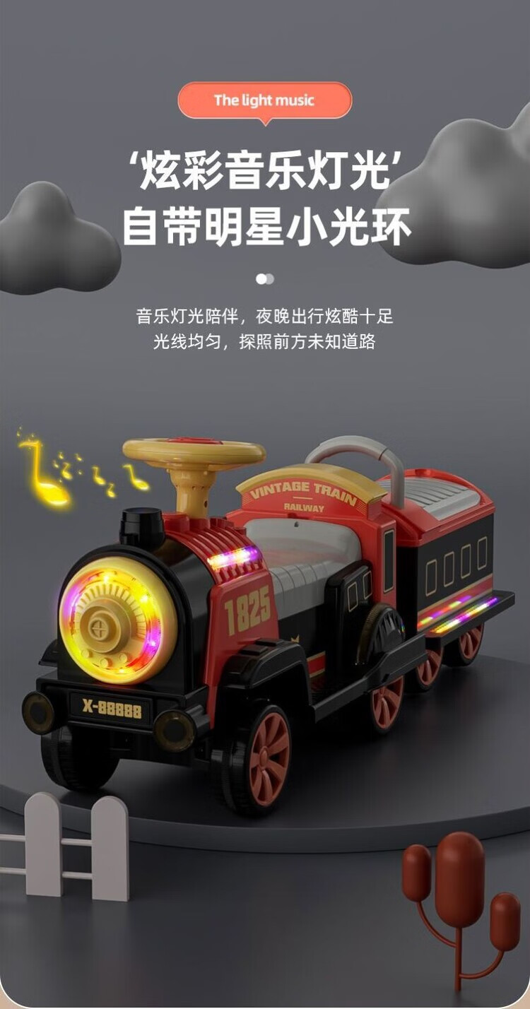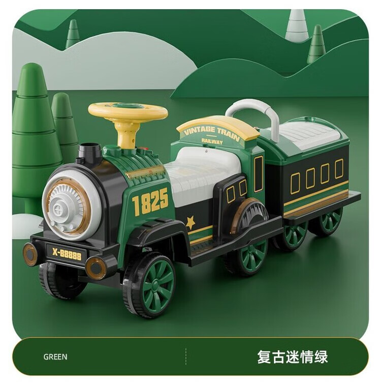 OTHER新款儿童电动车可坐人带遥控玩具车男女小孩火车充电宝宝童车礼物 绿色+火车头车厢单电单驱音乐早教灯光
