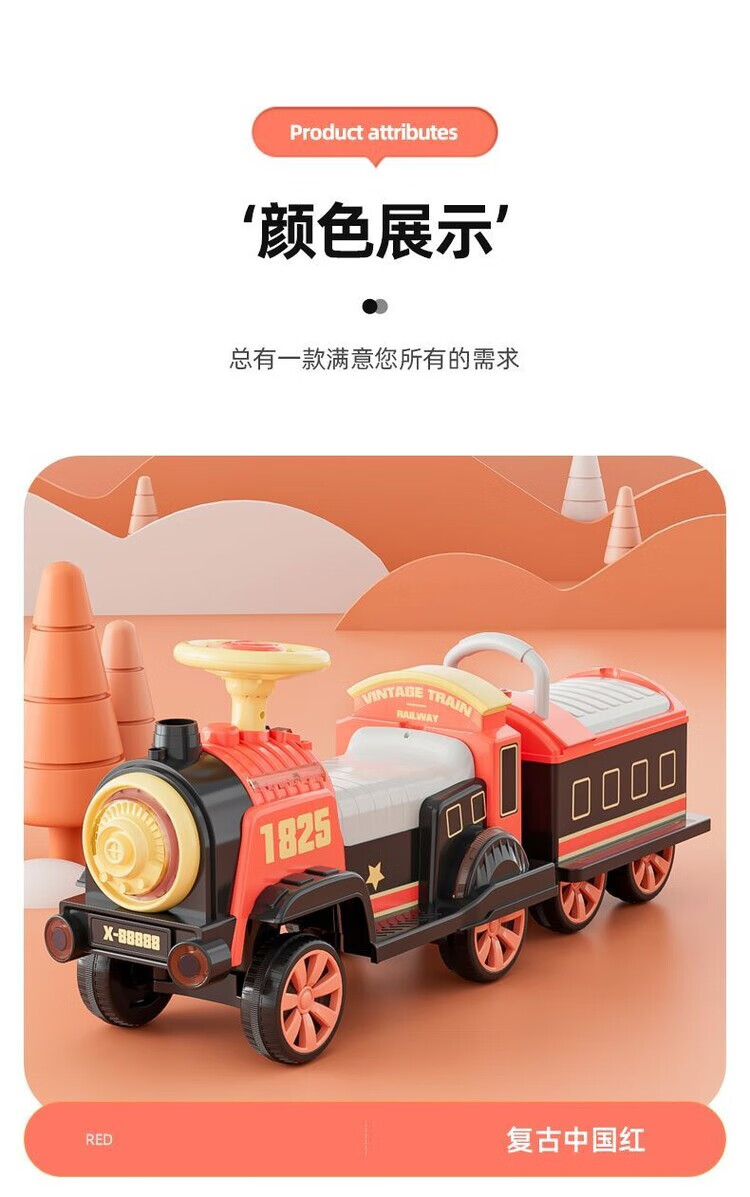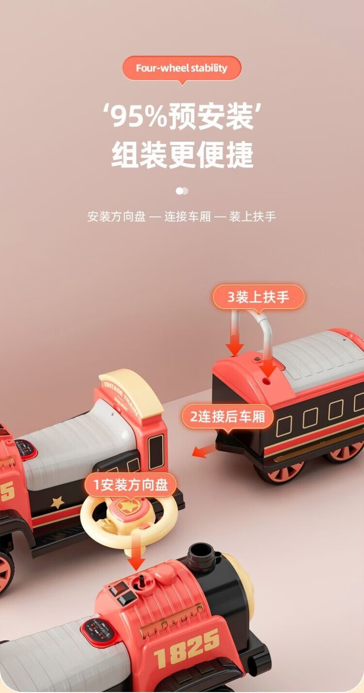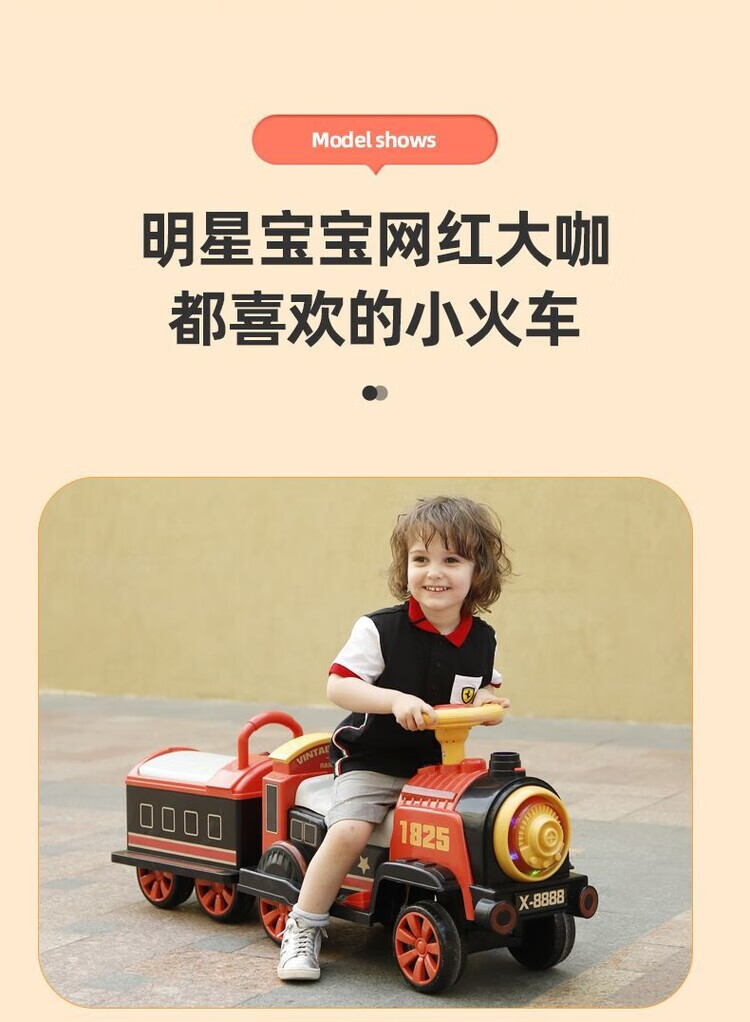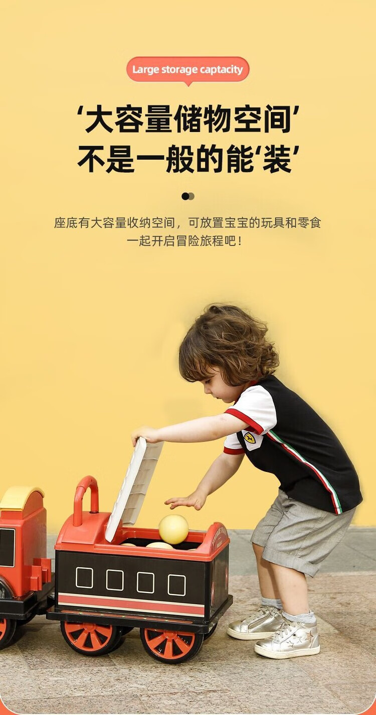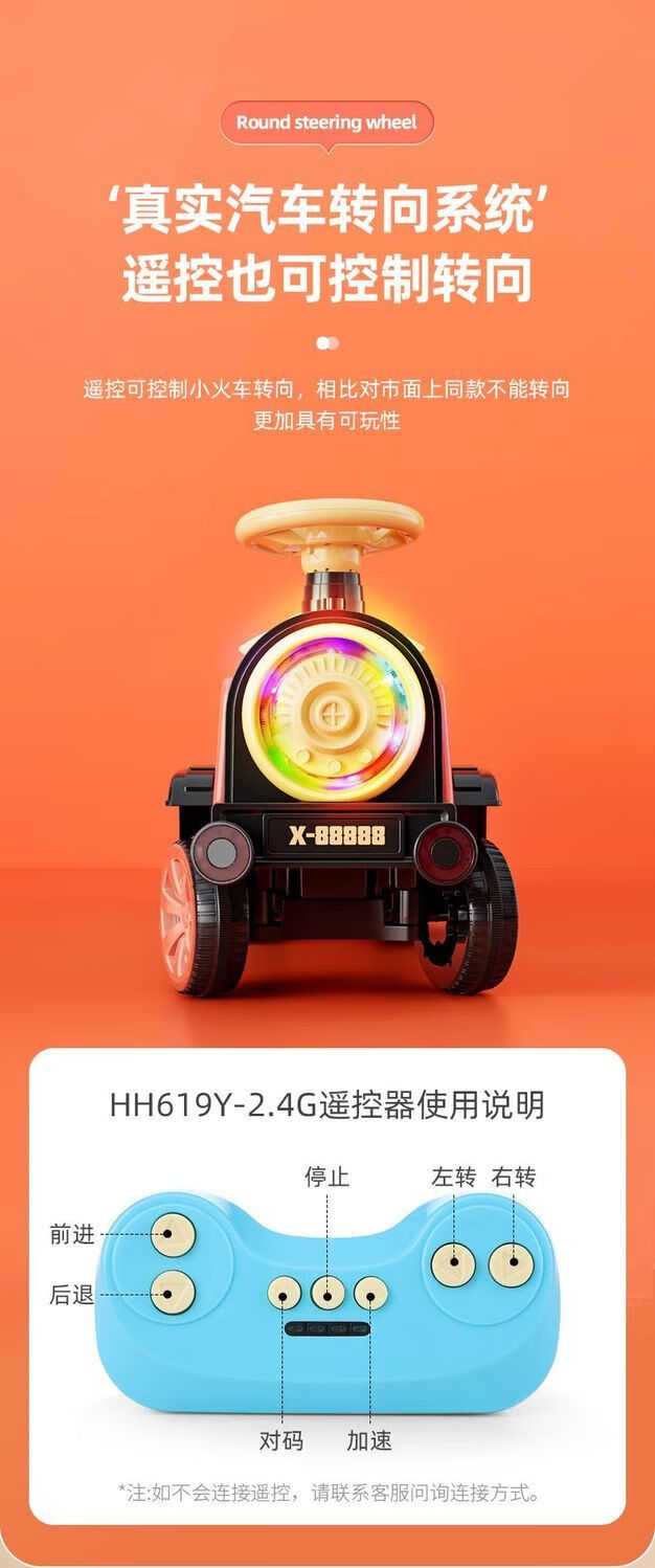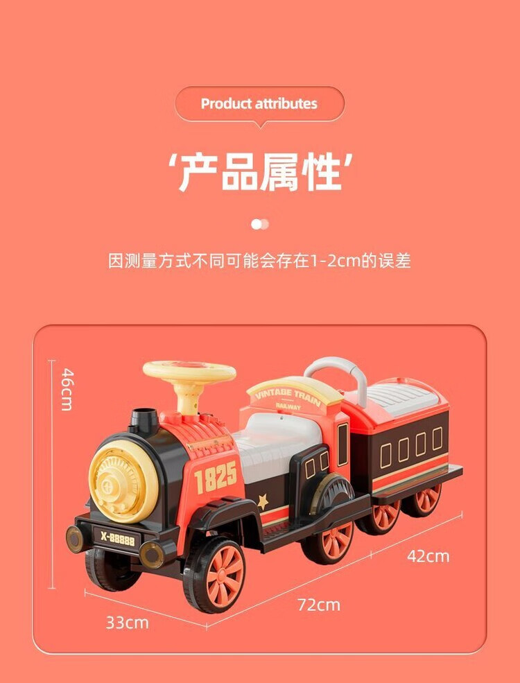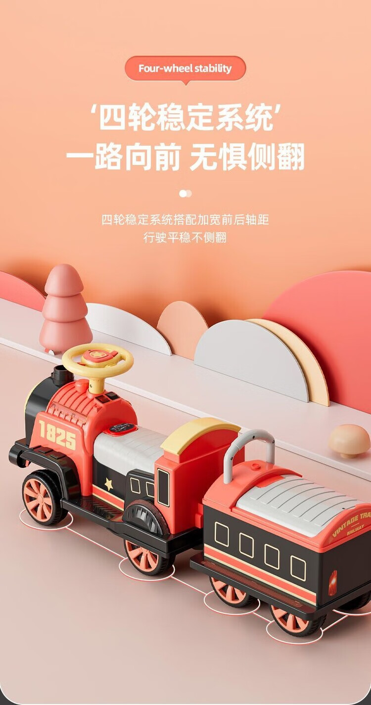 OTHER新款儿童电动车可坐人带遥控玩具车男女小孩火车充电宝宝童车礼物 绿色+火车头车厢单电单驱音乐早教灯光