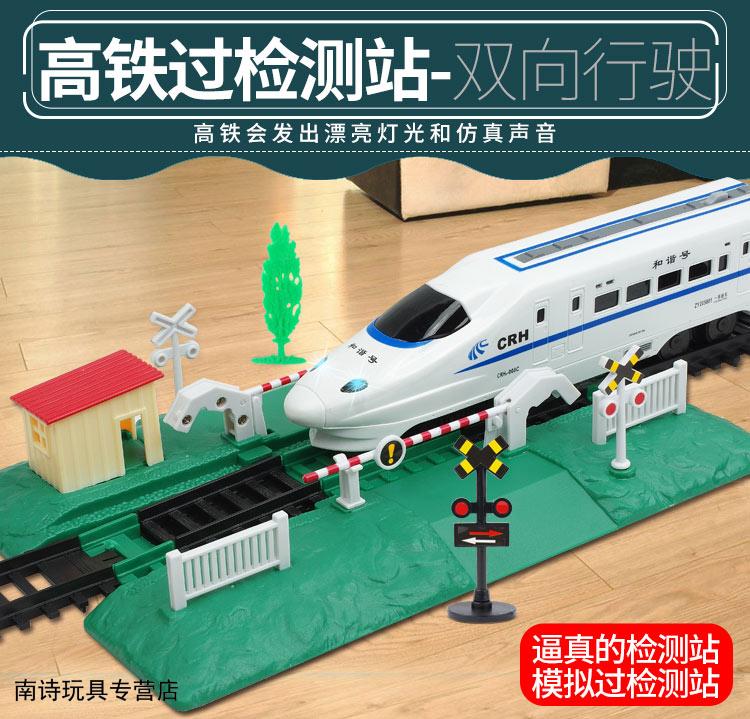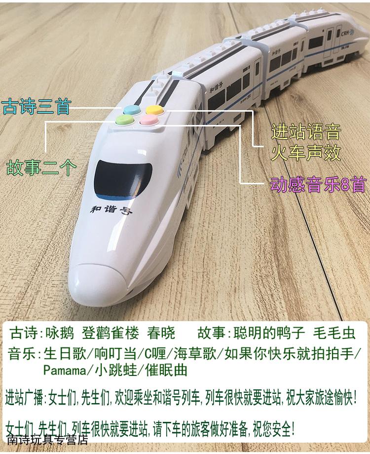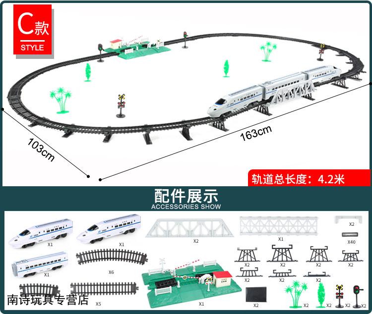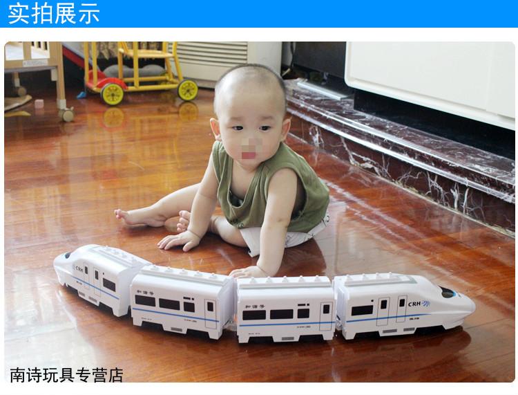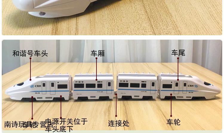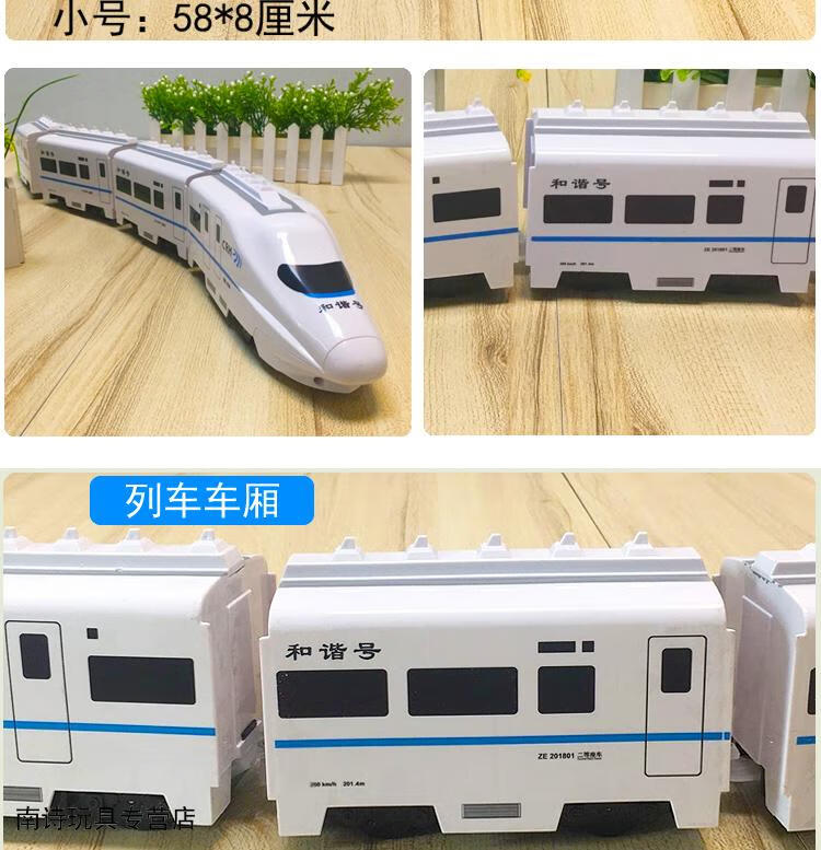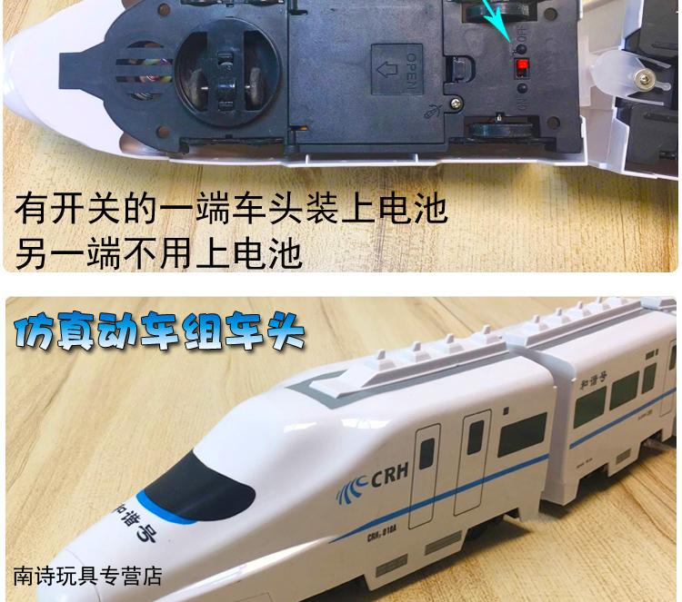 儿童大号动车高铁和谐号火车玩具男孩电动小火车轨道车模型 58厘米声光万向和谐号四节车厢 充电版充电电池+充电器