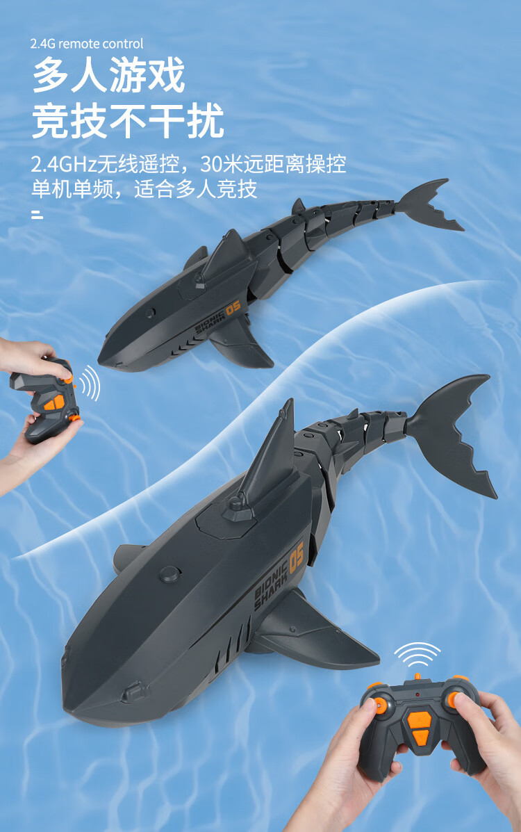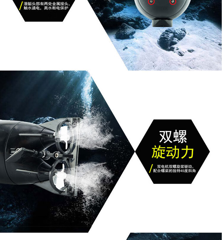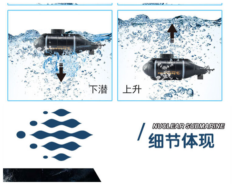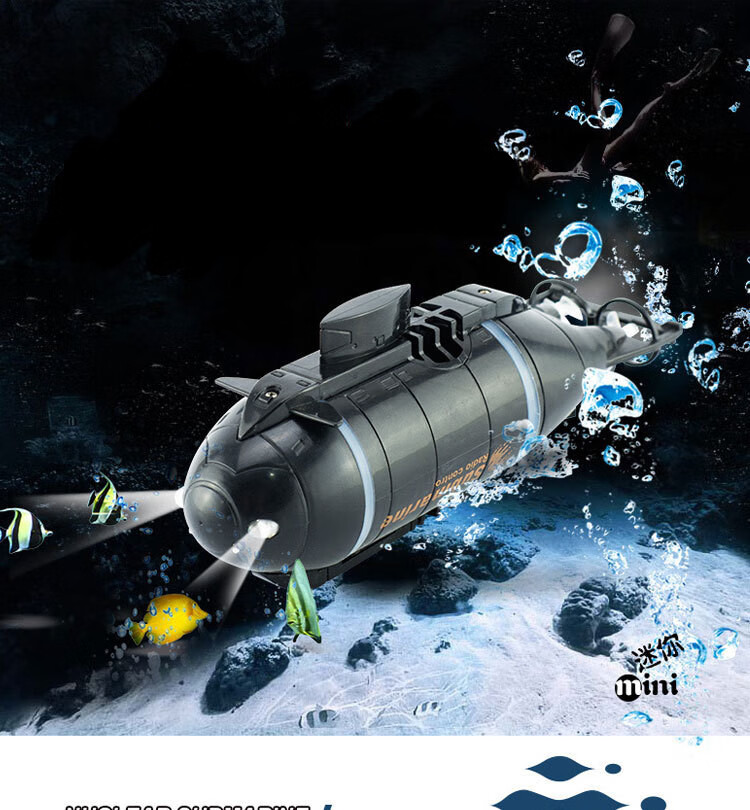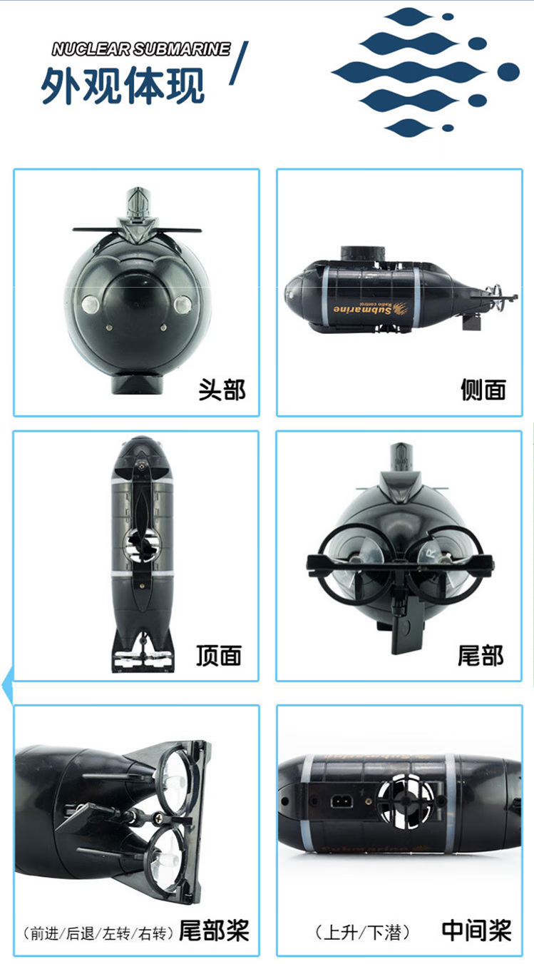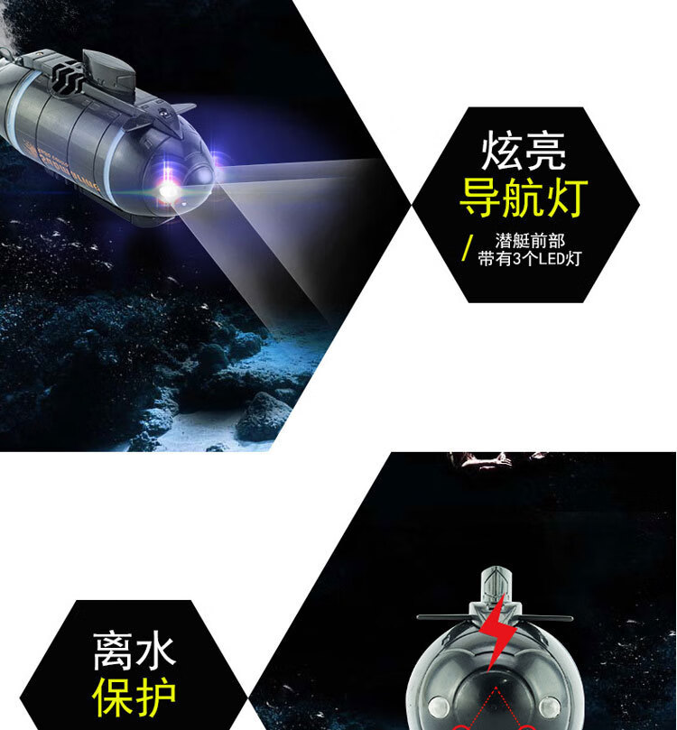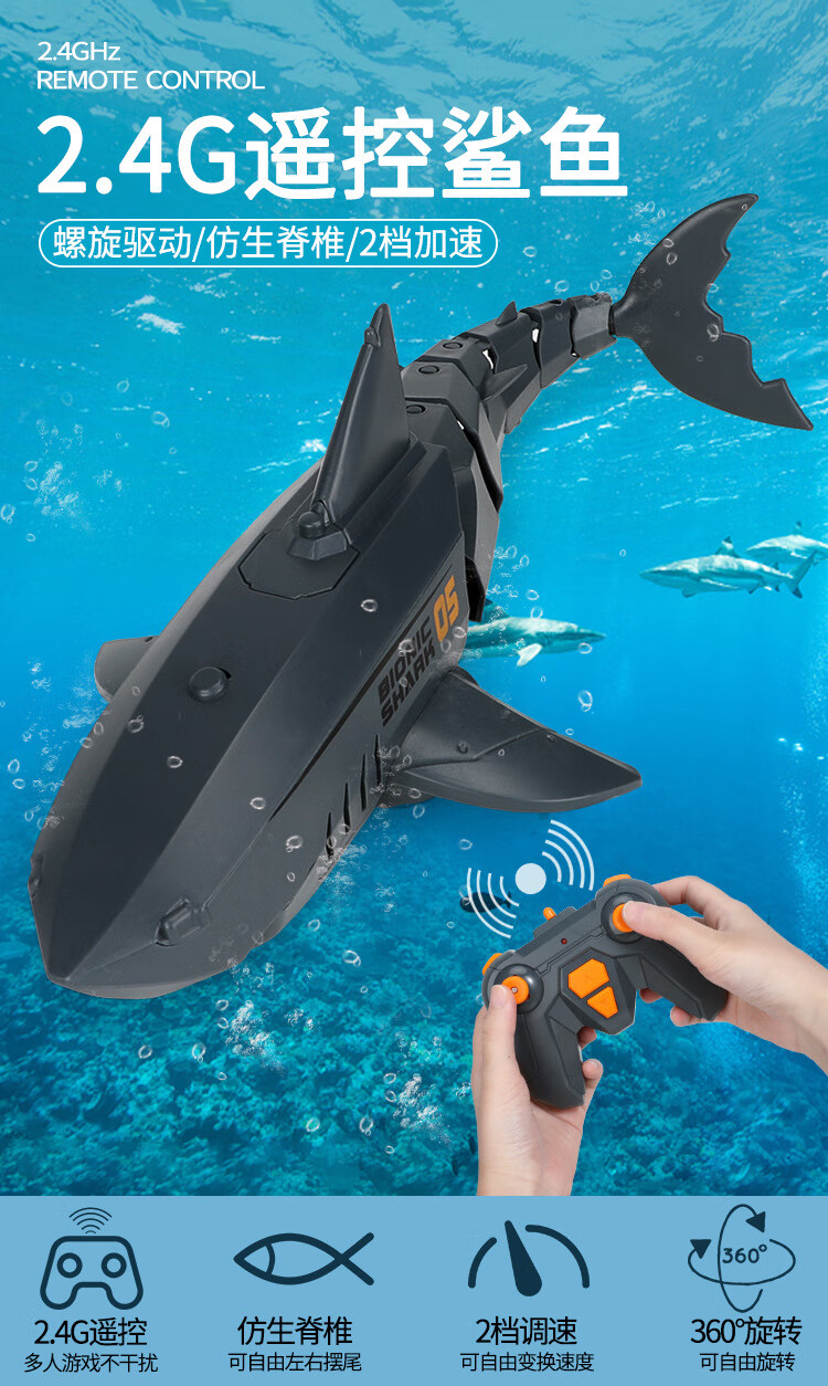 遥控迷你潜水艇快潜艇船军舰模型鱼缸可潜水水下电动儿童水上玩具 黑色遥控鲨鱼 高配送电池+螺丝刀+充电头