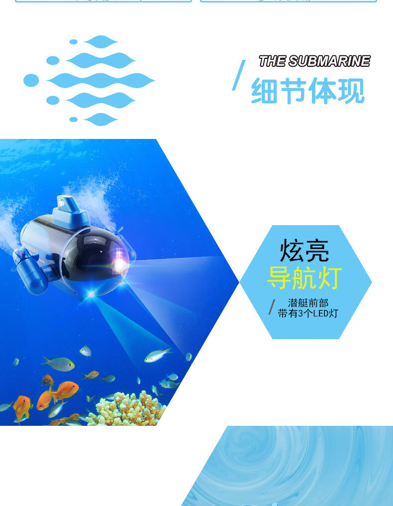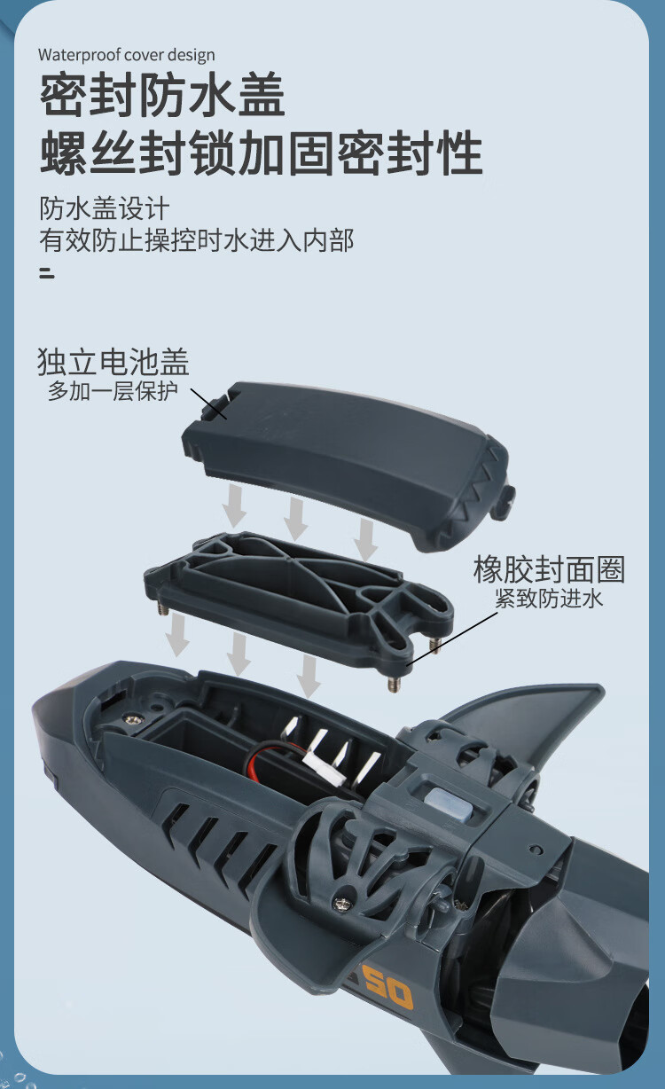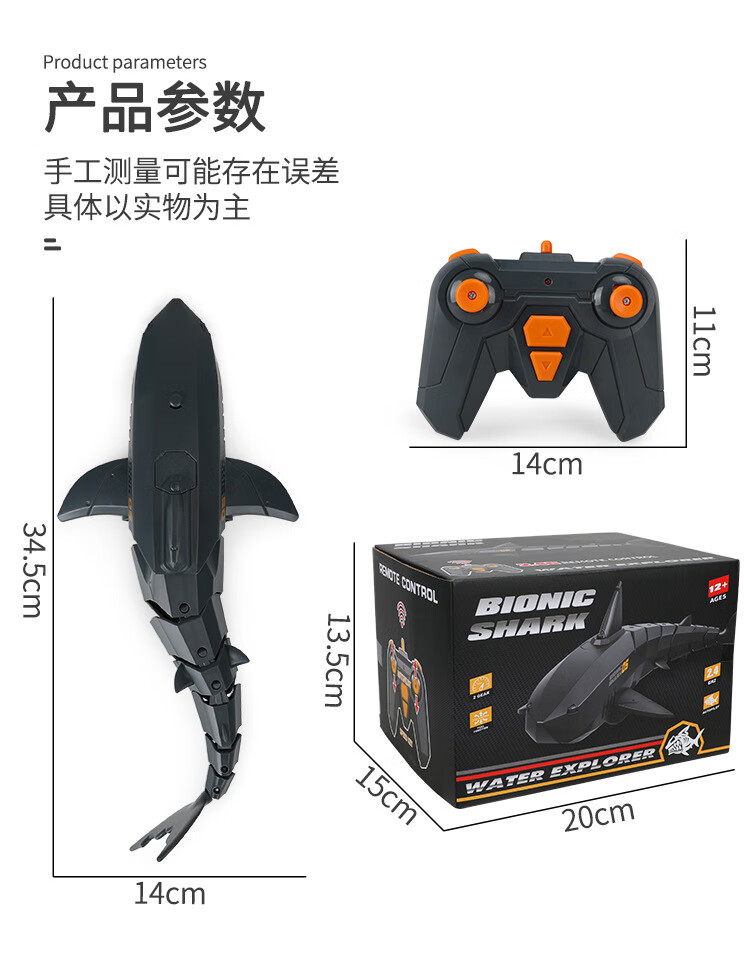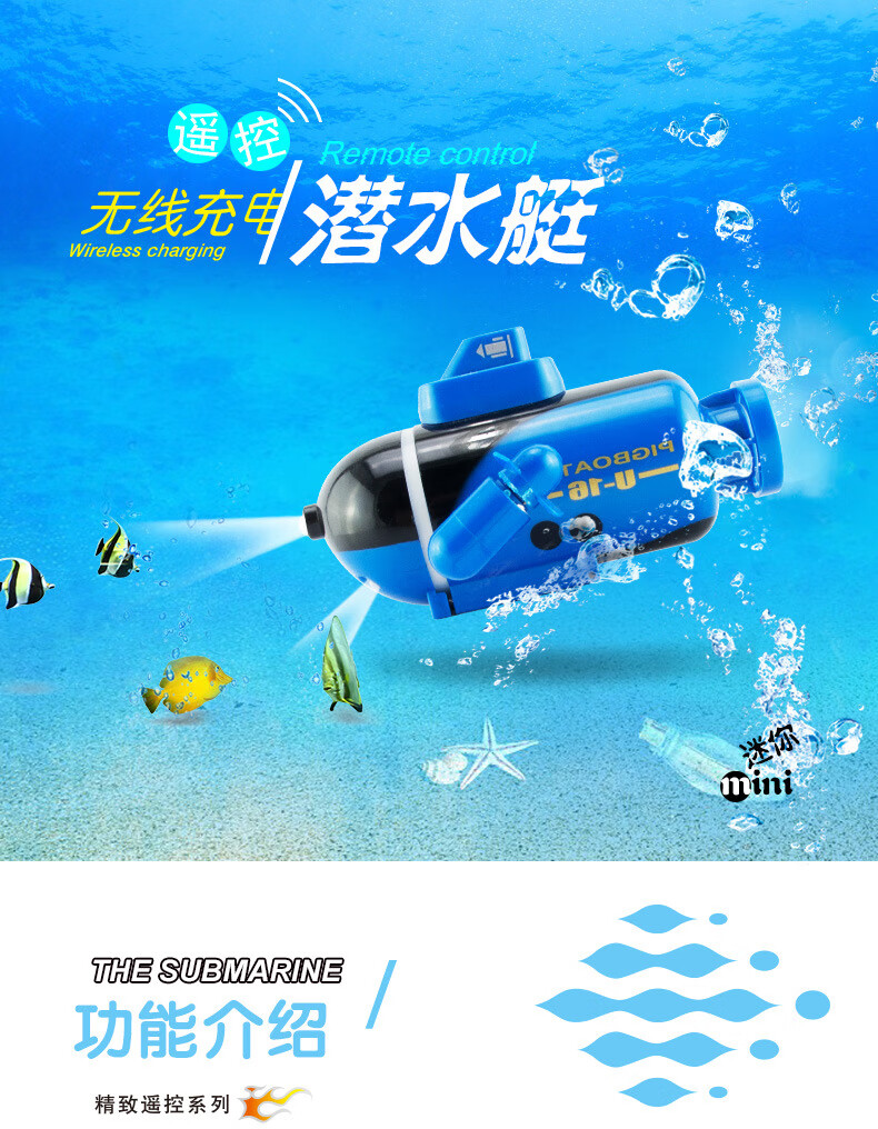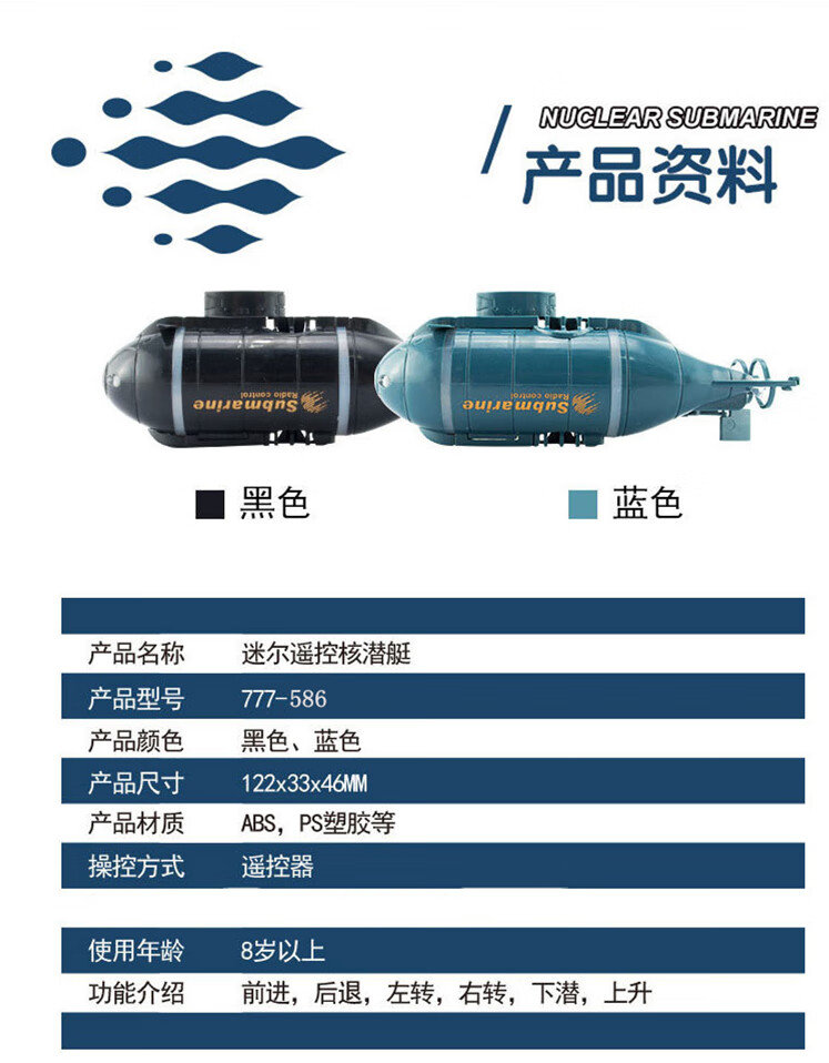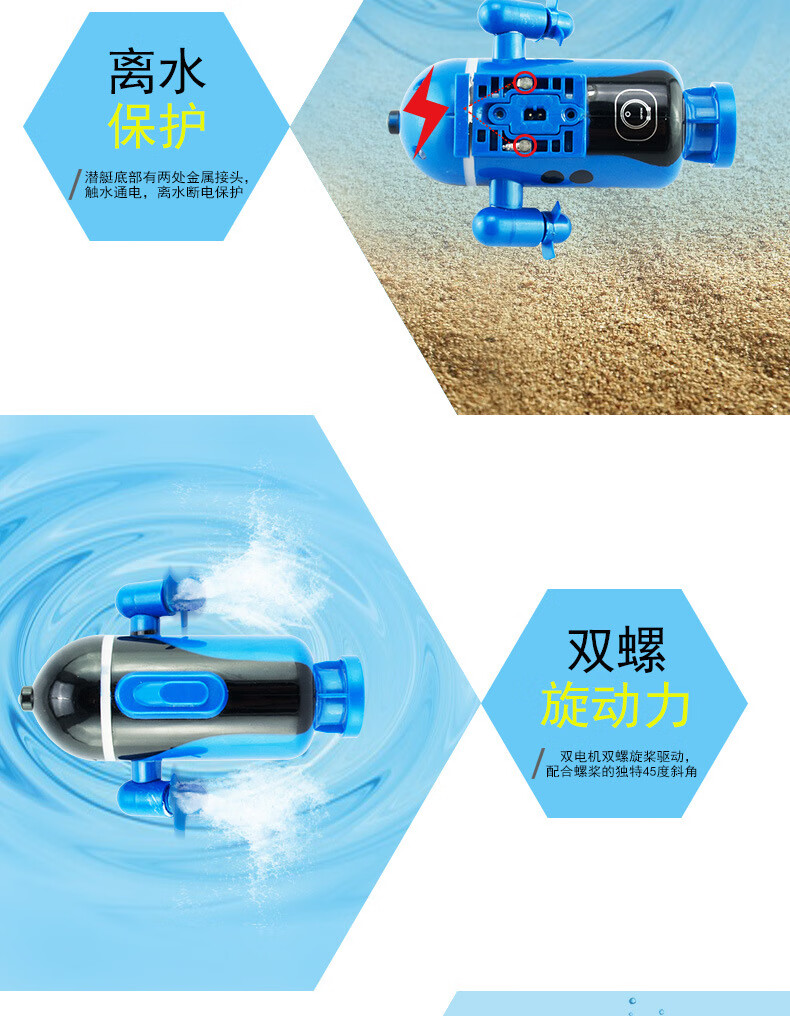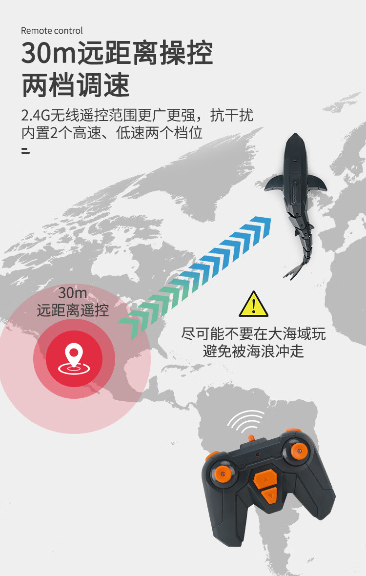 遥控迷你潜水艇快潜艇船军舰模型鱼缸可潜水水下电动儿童水上玩具 黑色遥控鲨鱼 高配送电池+螺丝刀+充电头