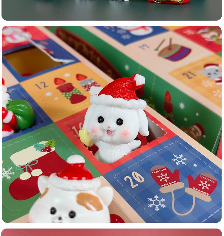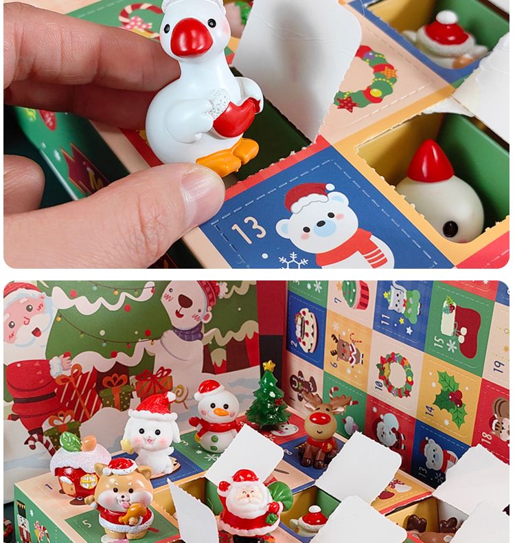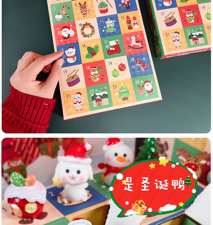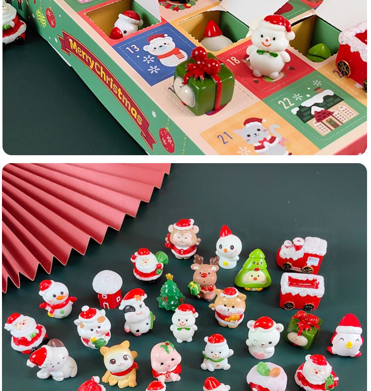 24-frame Christmas hole-in-the-wall countdown calendar, blind box Santa Claus ornaments, children's lottery toys, holiday gifts, 24-frame Christmas hole-in-the-wall 2 boxes