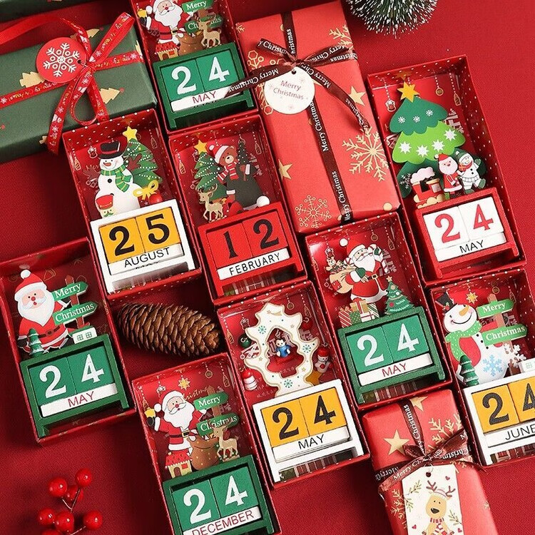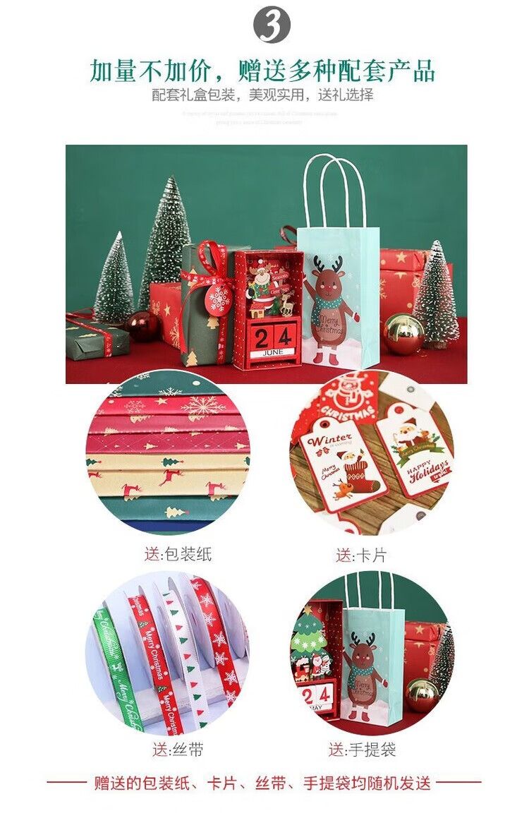 Christmas Countdown Calendar Gift Box Children's Gift Decoration Christmas Eve Ornaments Creative Kindergarten Toys New Snowman Calendar + Handbag + Wrapping Paper