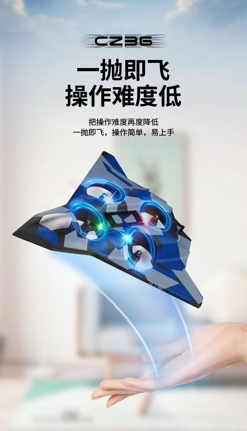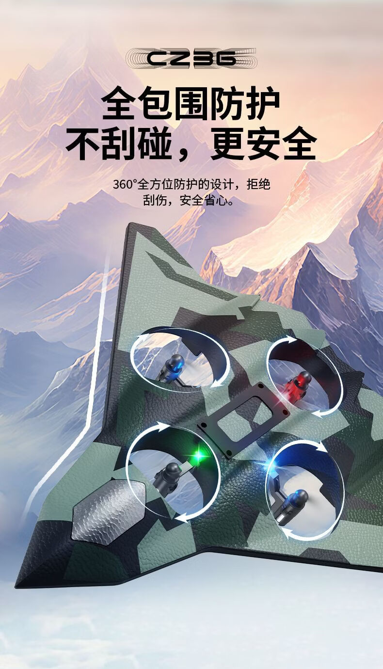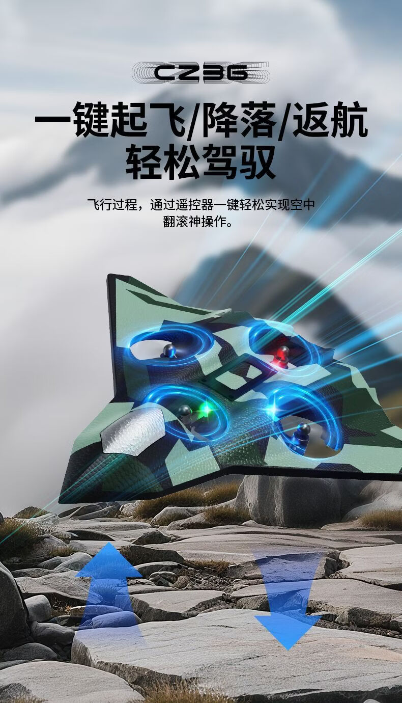 Avión de control remoto para niños planeador de combate de espuma dron de cuatro ejes estudiante de escuela primaria niño pequeño modelo de avión de juguete militar verde dos baterías