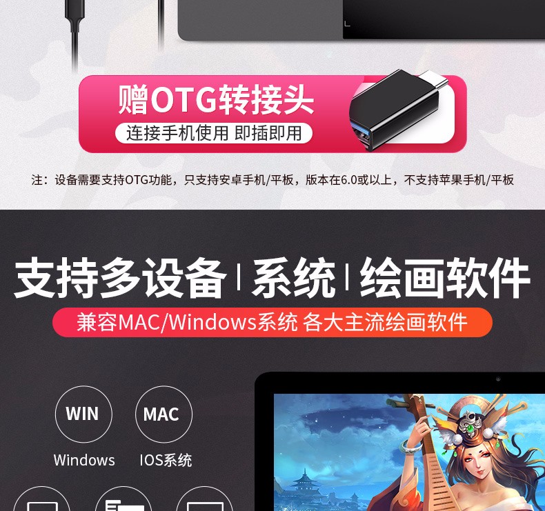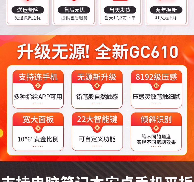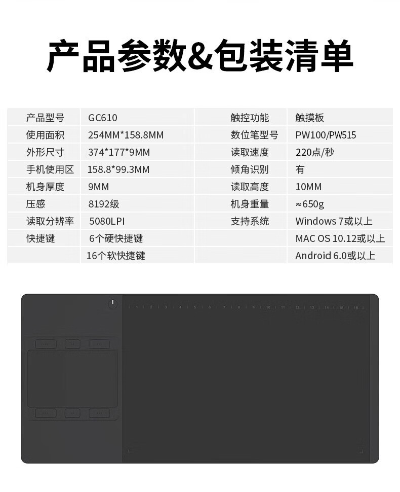 HUION hand-drawing tablet, digital tablet, handwriting tablet, drawing tablet online course GC610 black