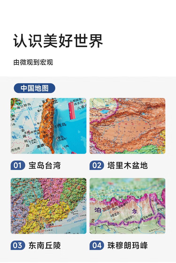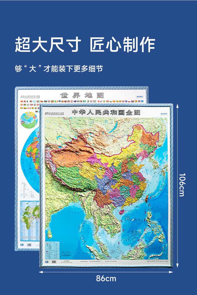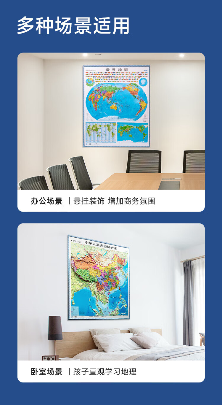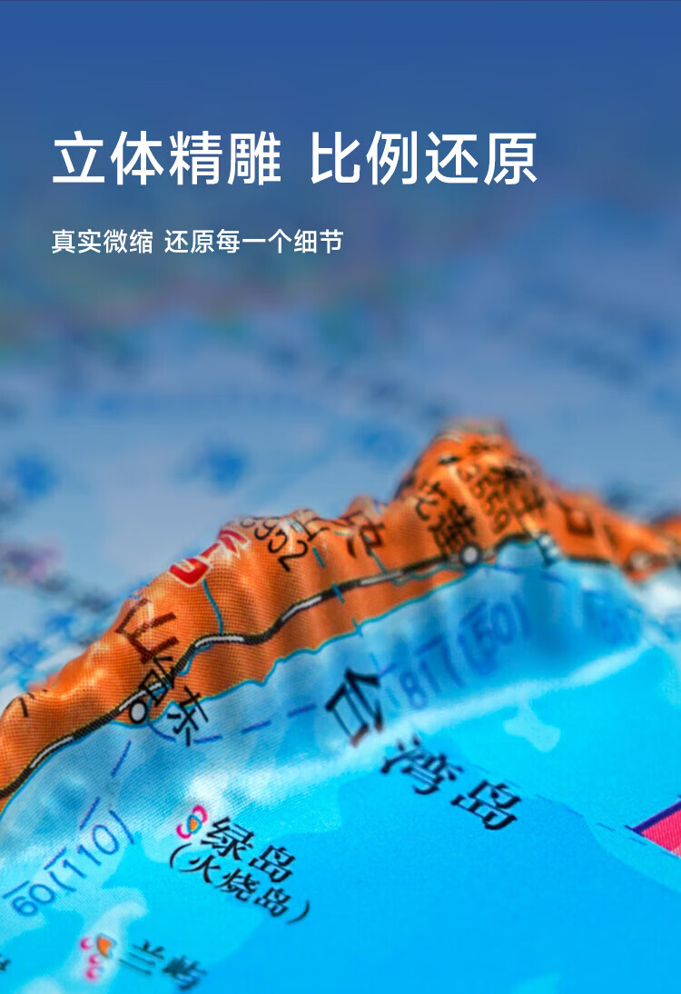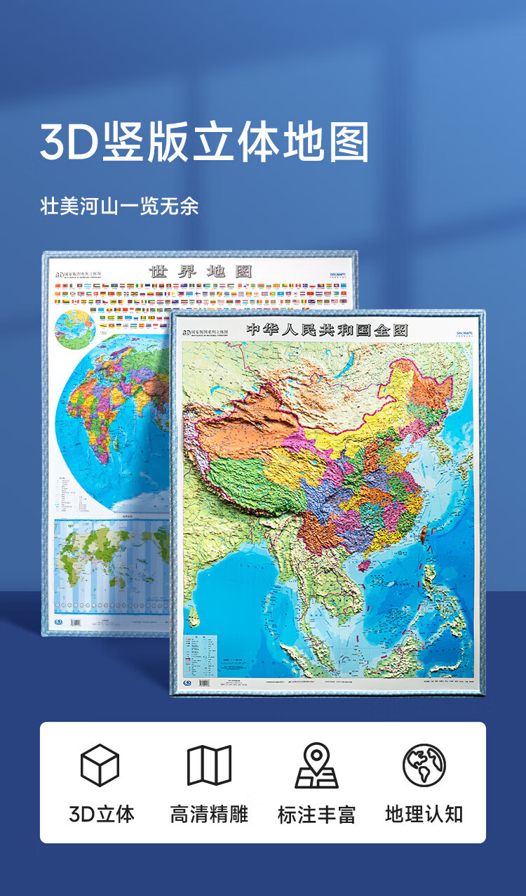 Time Optical China World Three-Dimensional Map Complete 2 Volumes High-definition Carved Extra Large Groove 3D Three-Dimensional Concave-convex Vertical Version Student Geography Encyclopedia Wall Sticker