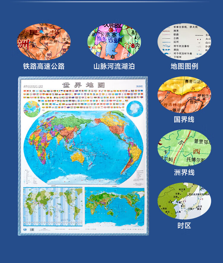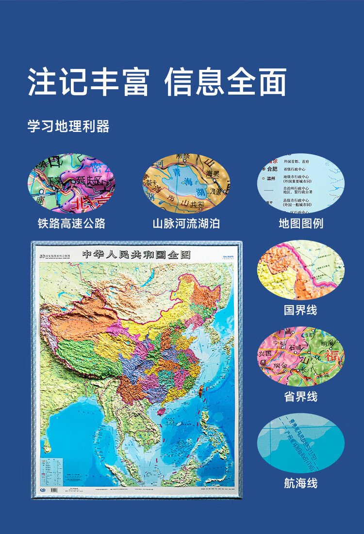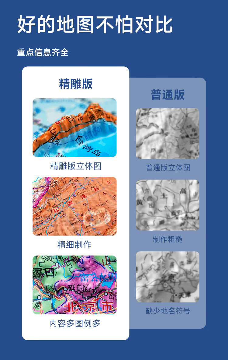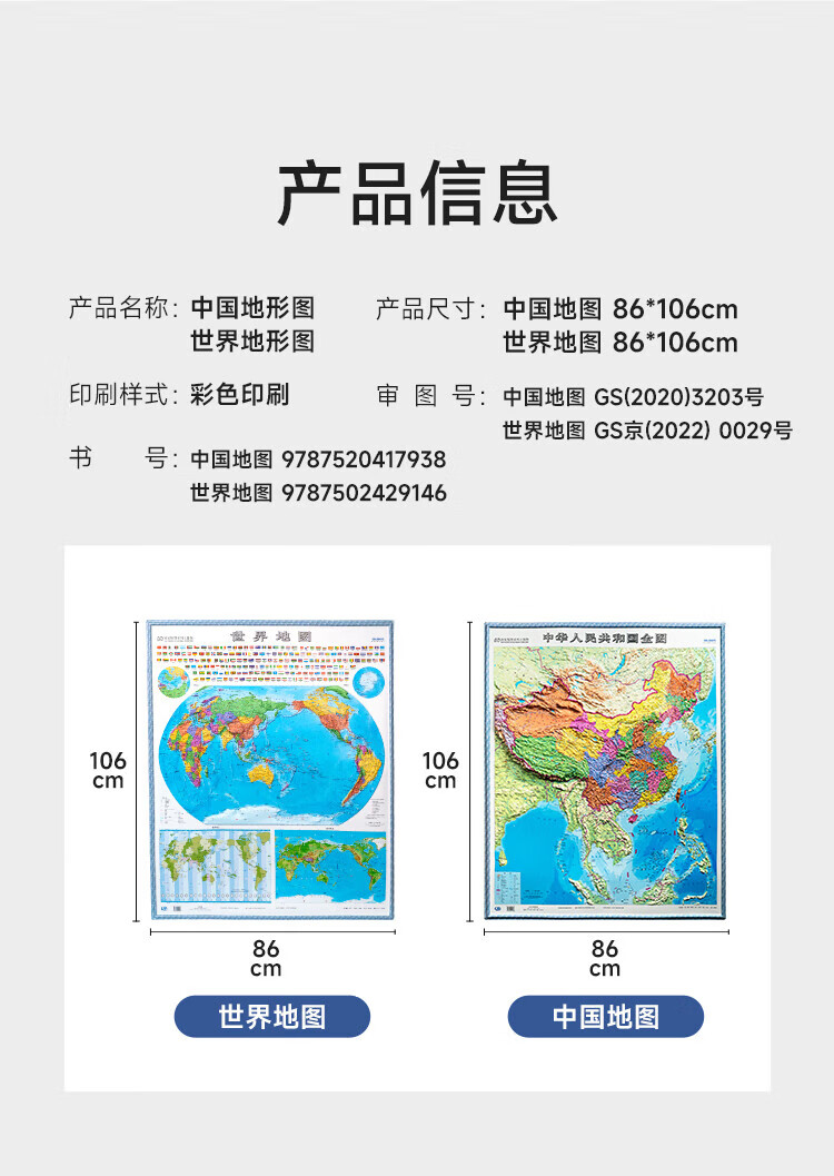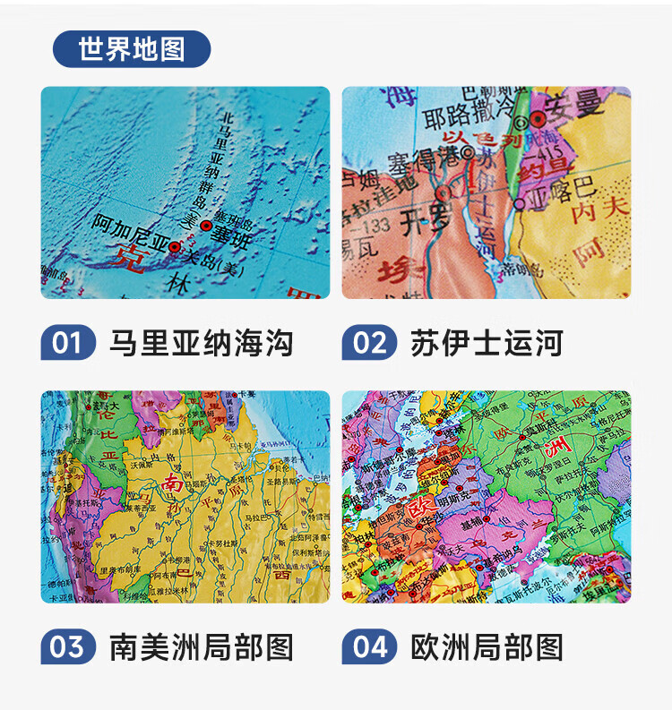 Time Optical China World Three-Dimensional Map Complete 2 Volumes High-definition Carved Extra Large Groove 3D Three-Dimensional Concave-convex Vertical Version Student Geography Encyclopedia Wall Sticker