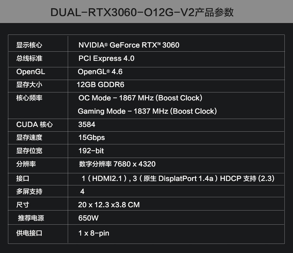 ASUS DUAL-RTX3060-O12G-V2 ordinateur de bureau de jeu e-sports hôte carte graphique indépendante DUAL-RTX3060-O12G-V2