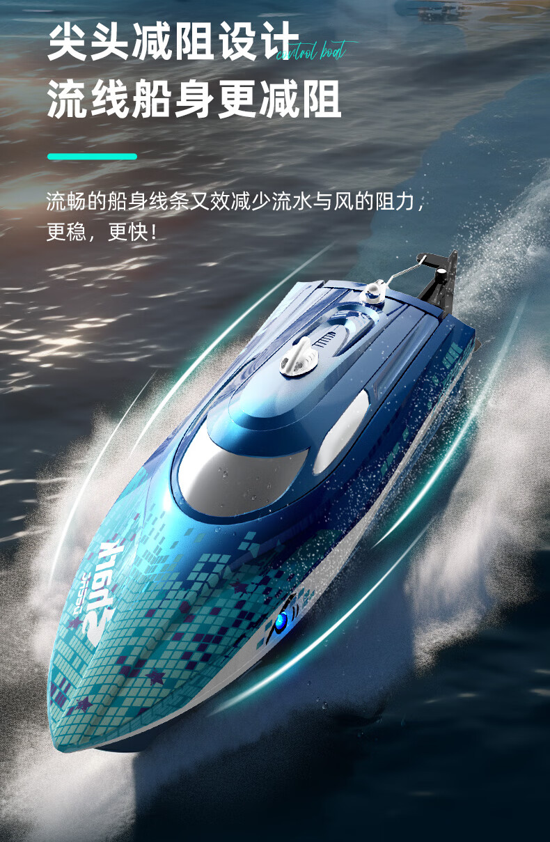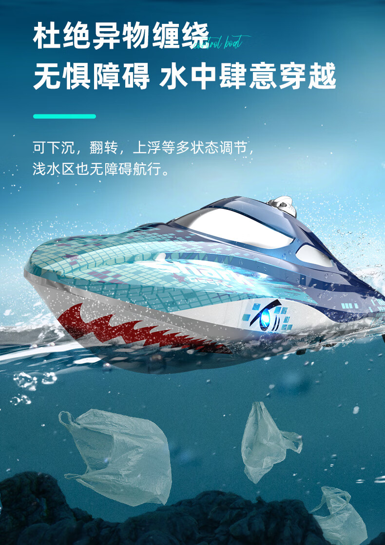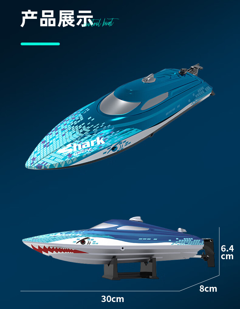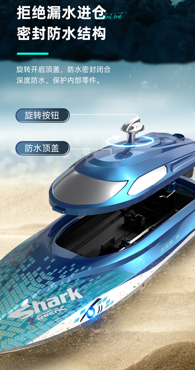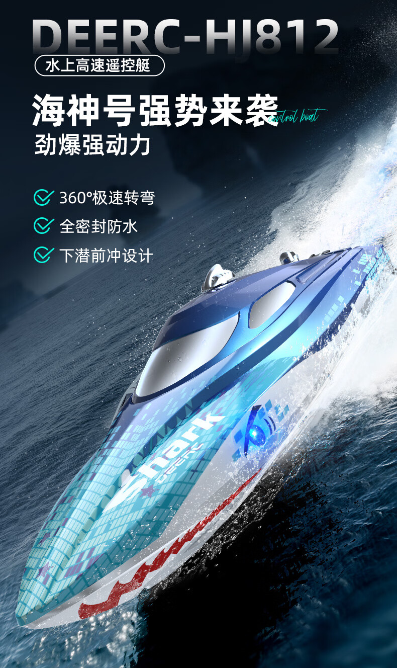 DEERC高速远程遥控船快艇水上电动玩具船舰艇潜水艇男孩生日礼物 30cm【双电+极速+夜灯】