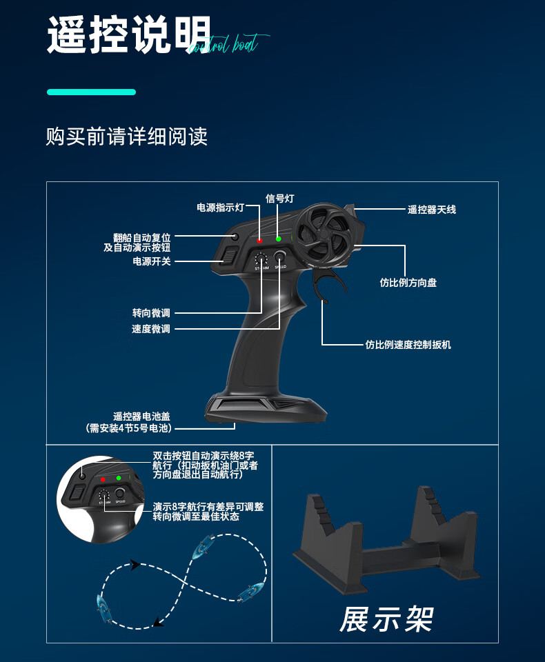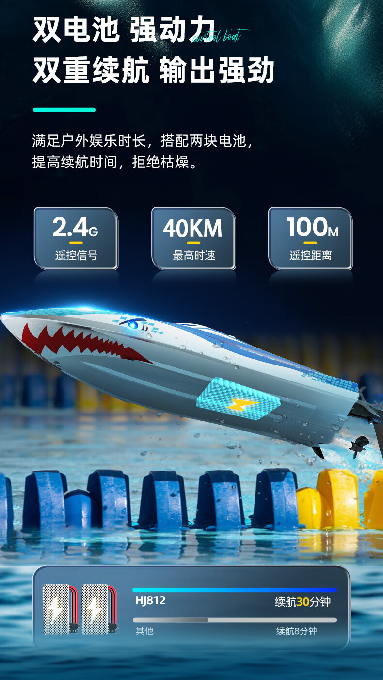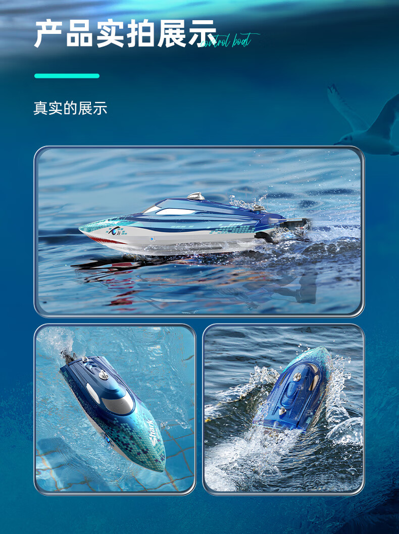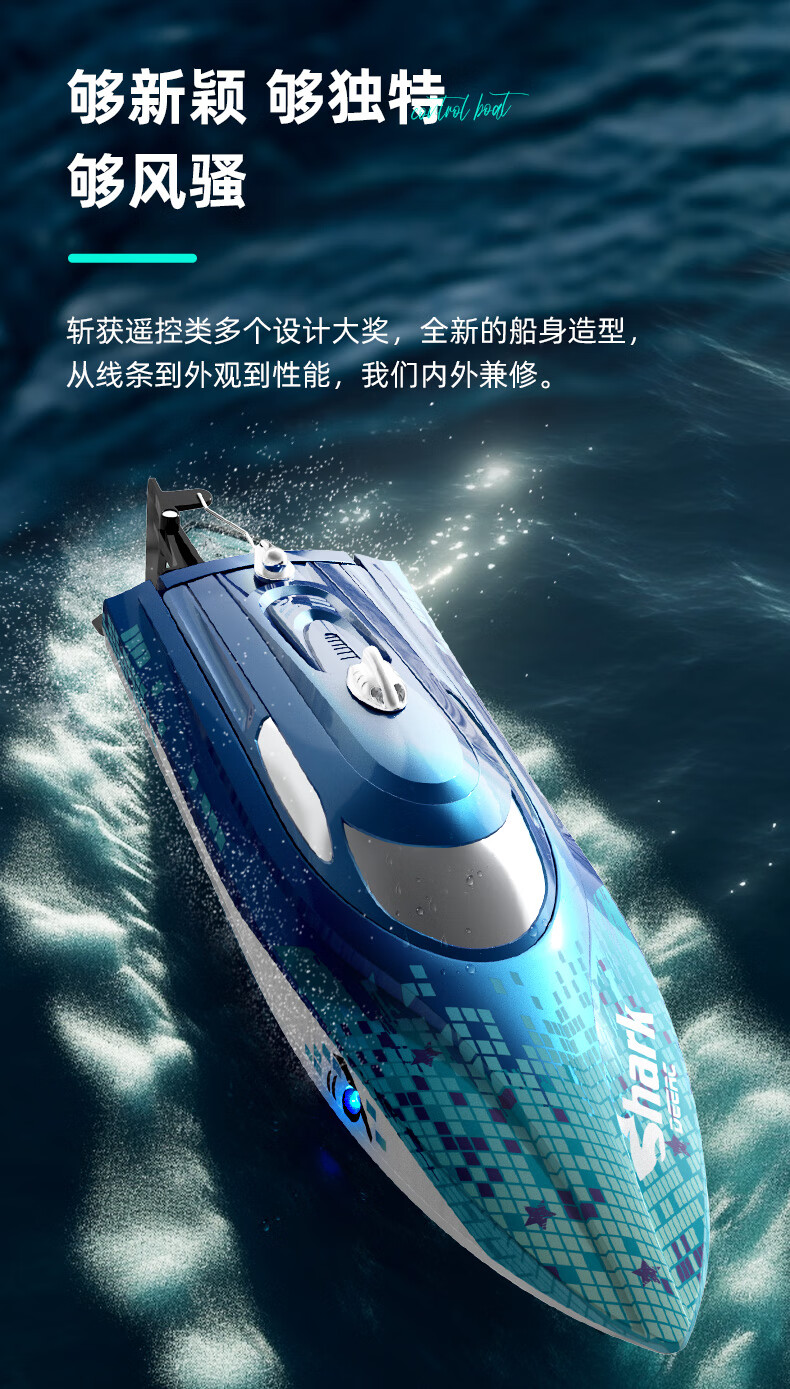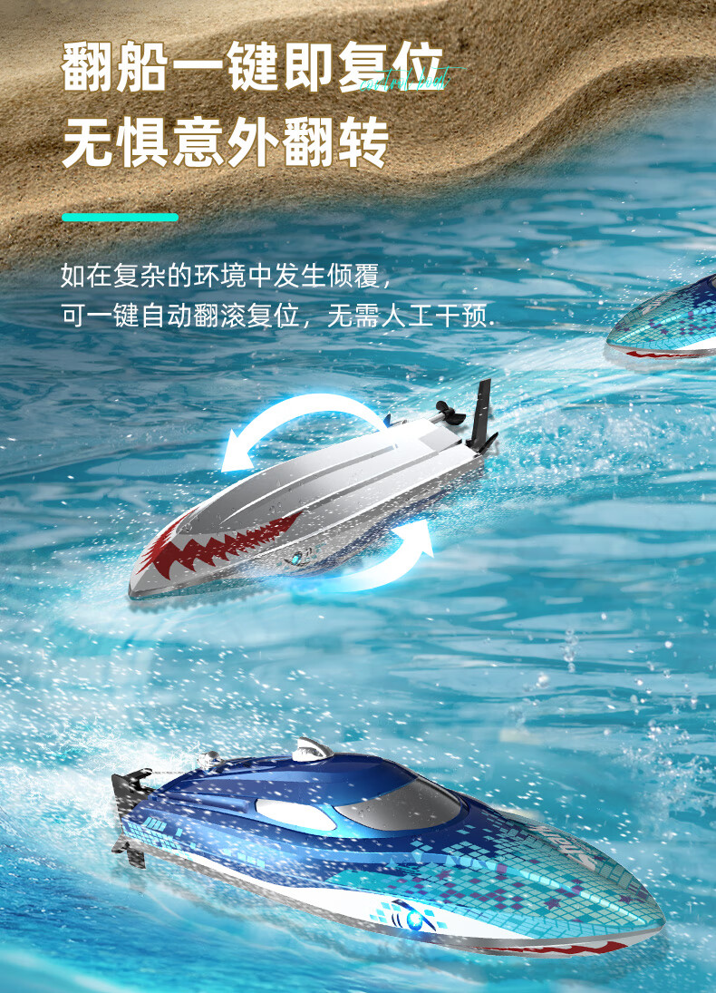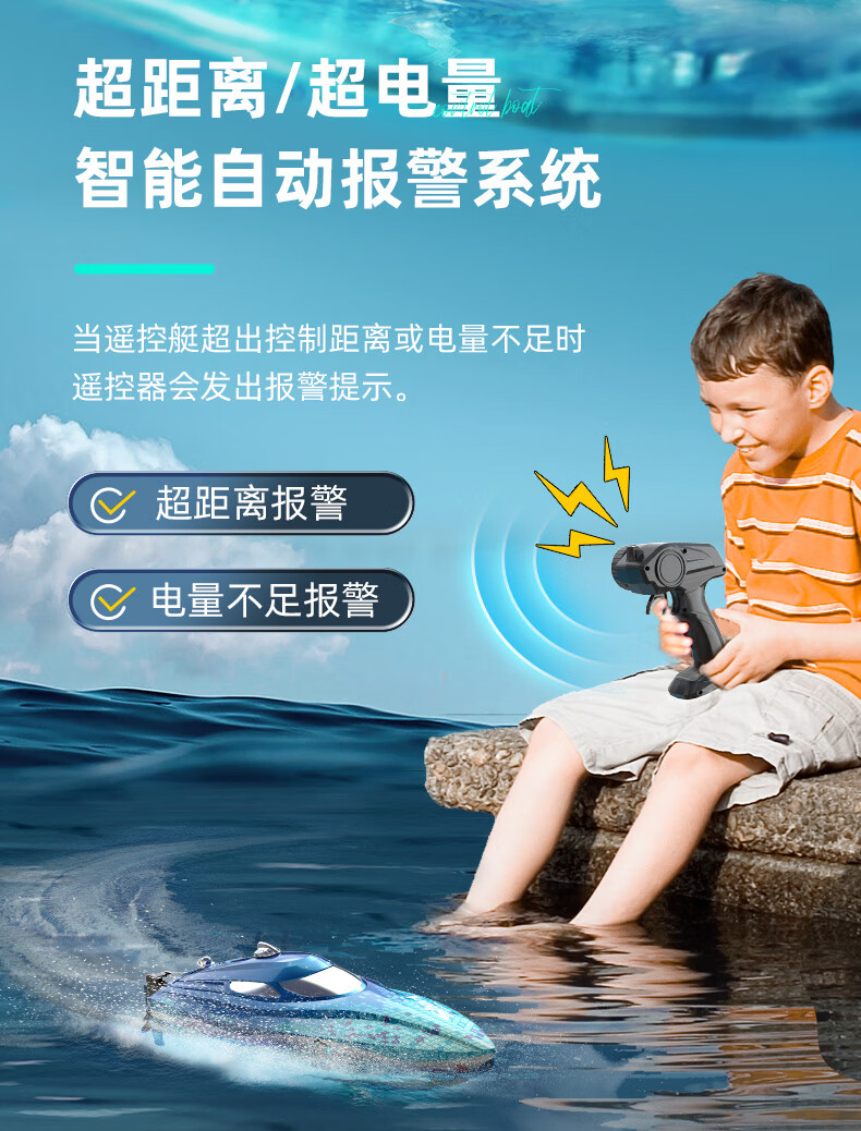 DEERC高速远程遥控船快艇水上电动玩具船舰艇潜水艇男孩生日礼物 30cm【双电+极速+夜灯】