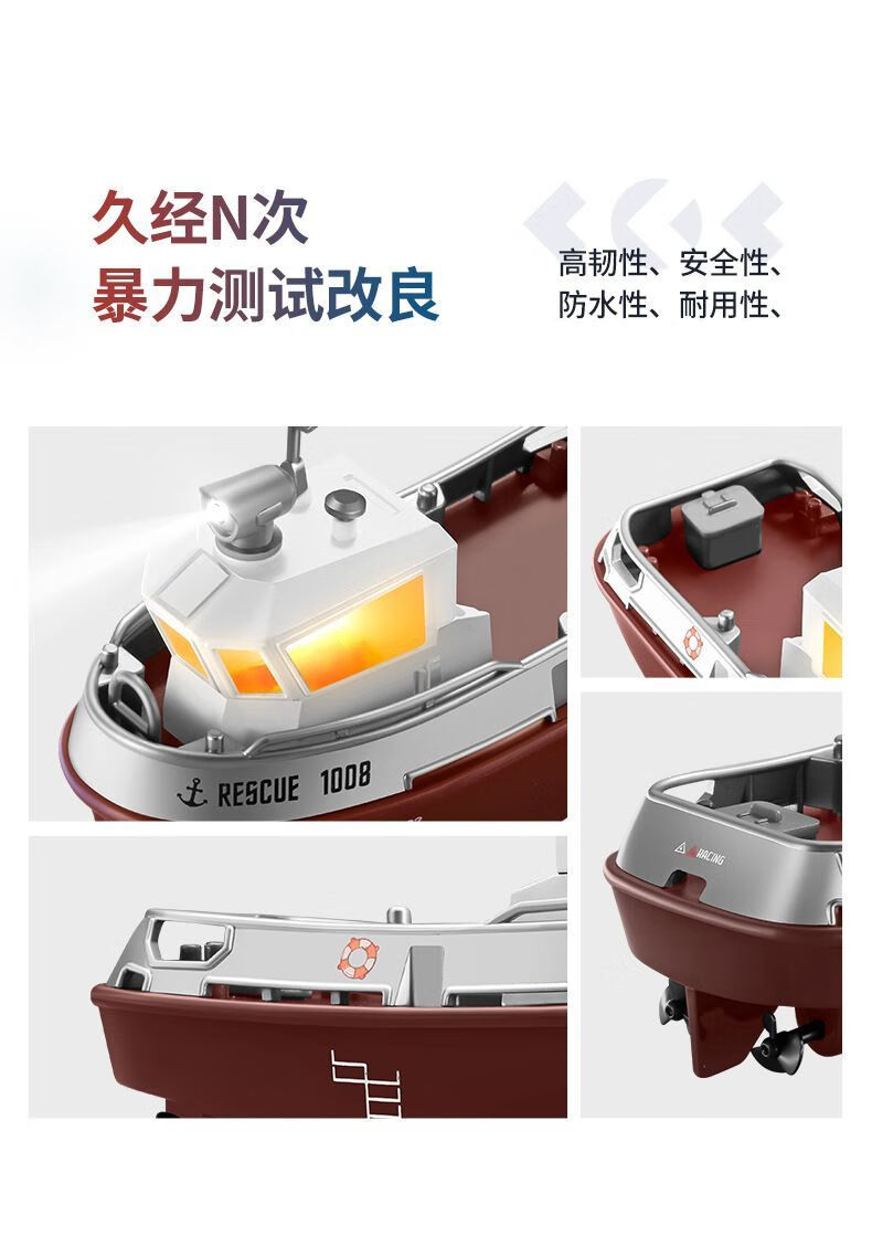 Mini remorqueur télécommandé pour enfants, jouet aquatique électrique RC à l'échelle 2,4 G avec lumières, modèle de cargo de simulation, remorqueur avec lumières + double moteurs standard + 3 jeux de piles télécommandées