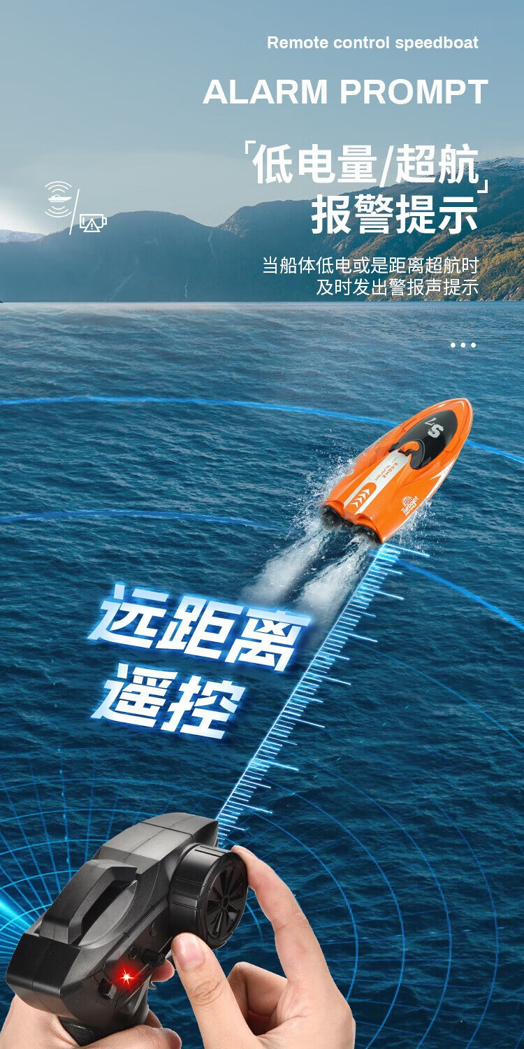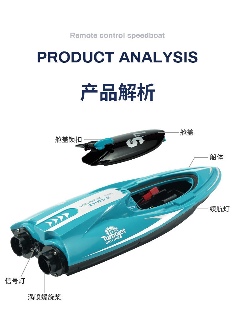 2.4G Twin Turbo Jet Bateau télécommandé Course aquatique Jouet de bateau électrique pour enfants Jouet de bateau de vitesse télécommandé à grande vitesse Modèle de bateau de course 1 batterie Orange/Double Turbo Jet Speed ​​​​Boat