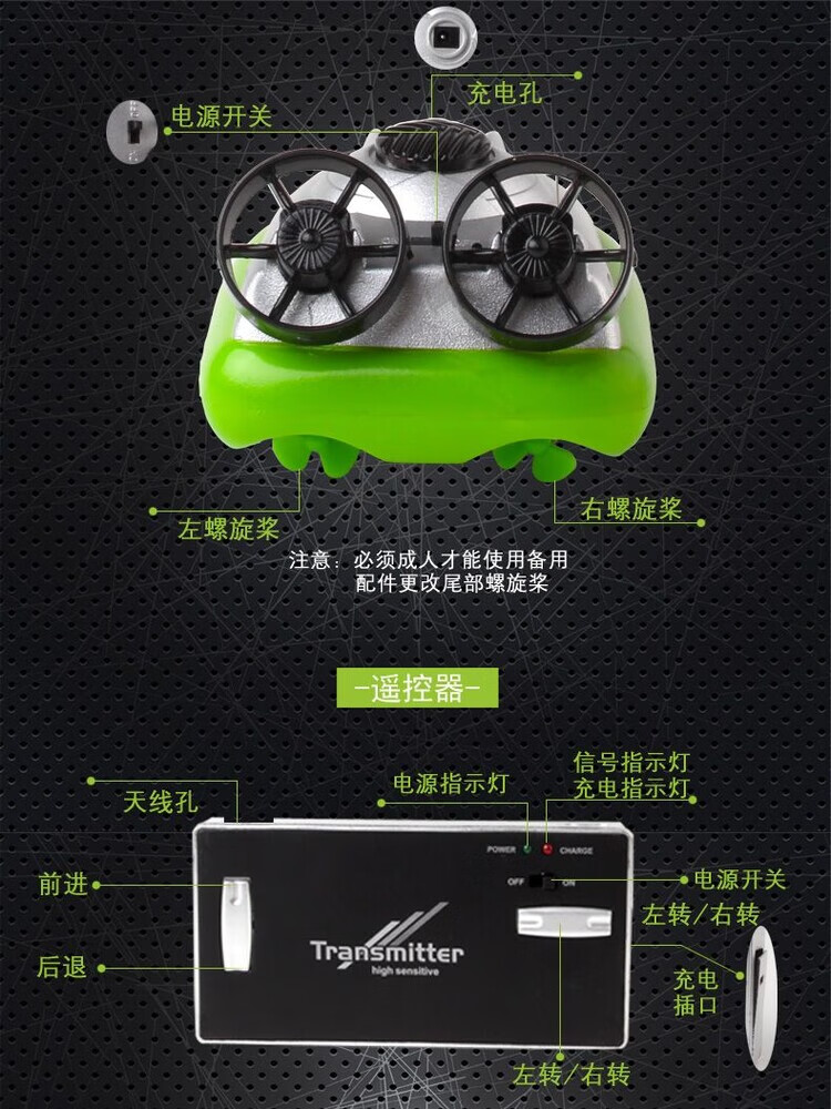 Liangcan Mini-Aufladung, kabellose Fernbedienung, elektrisches U-Boot, Atom-U-Boot, Hovercraft-Schnellboot, spielende kleine Kinder (777-219 blau) + Batterie