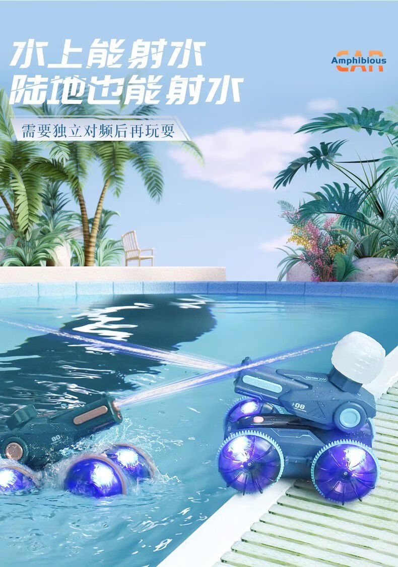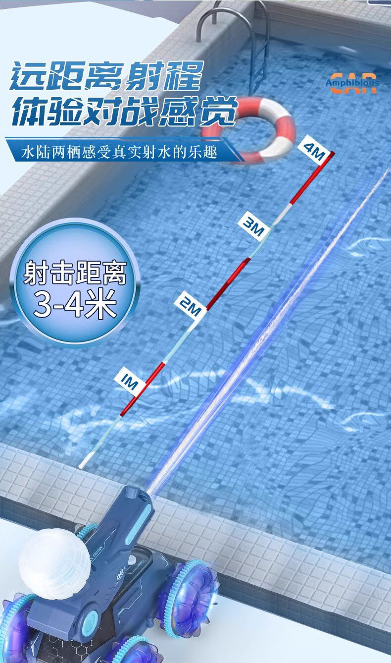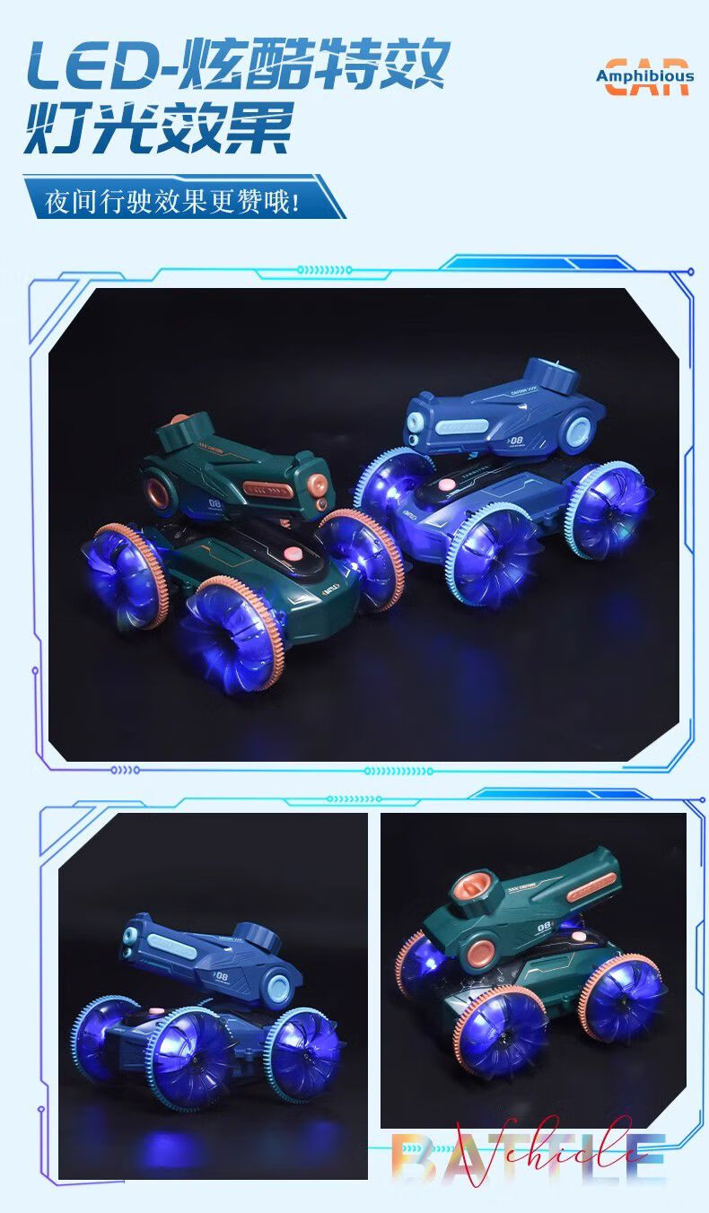 Shantou Lincun Children's Amphibious Remote Control Car Tank Boat Can Launch Water Spray Automatic Water Suction Gun Gesture Sensing Dual Control Handle + Watch Green Amphibious Deluxe Four-Power Battery Approximately 120 Minutes of Use