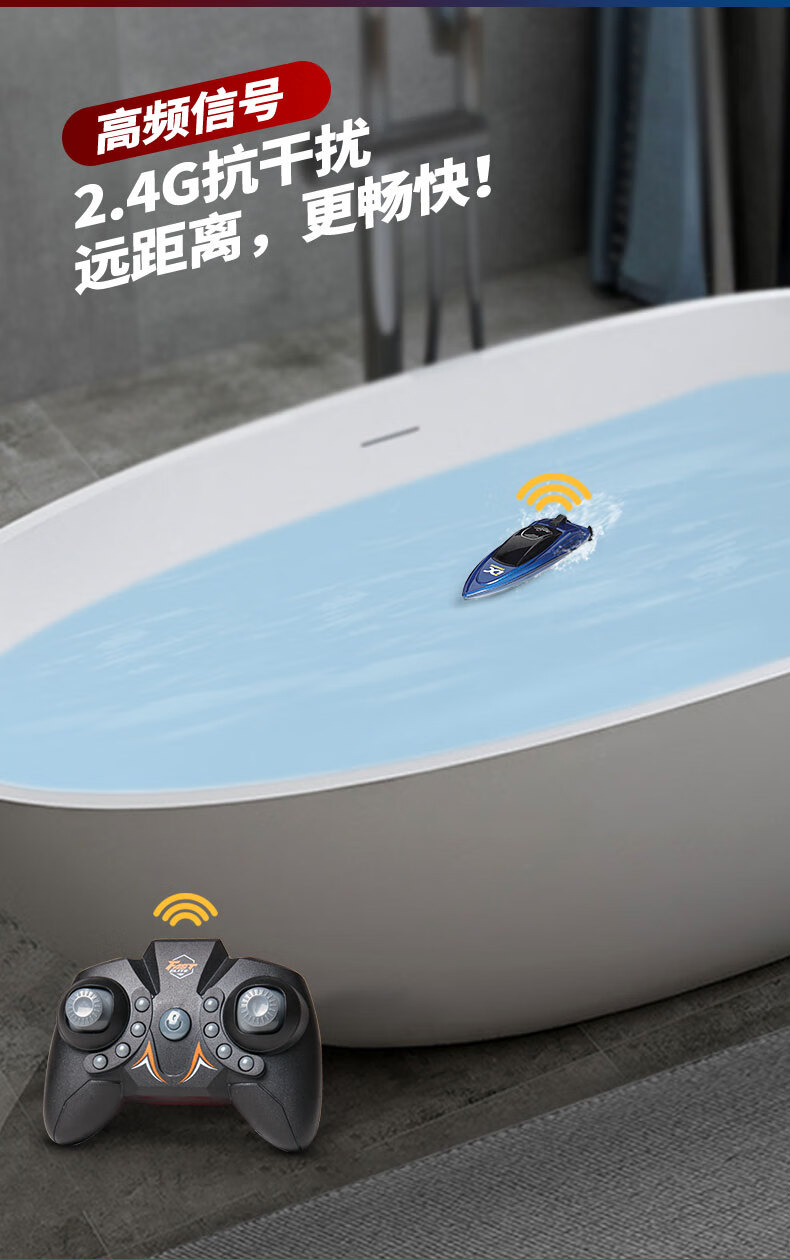 2,4 g ferngesteuertes Miniboot für Kinder, kleines Schnellboot, Aufladen, wasserdicht, Rudern, Indoor-Multiplayer-Wettbewerb, Pink, kostenlose Fernbedienungsbatterie