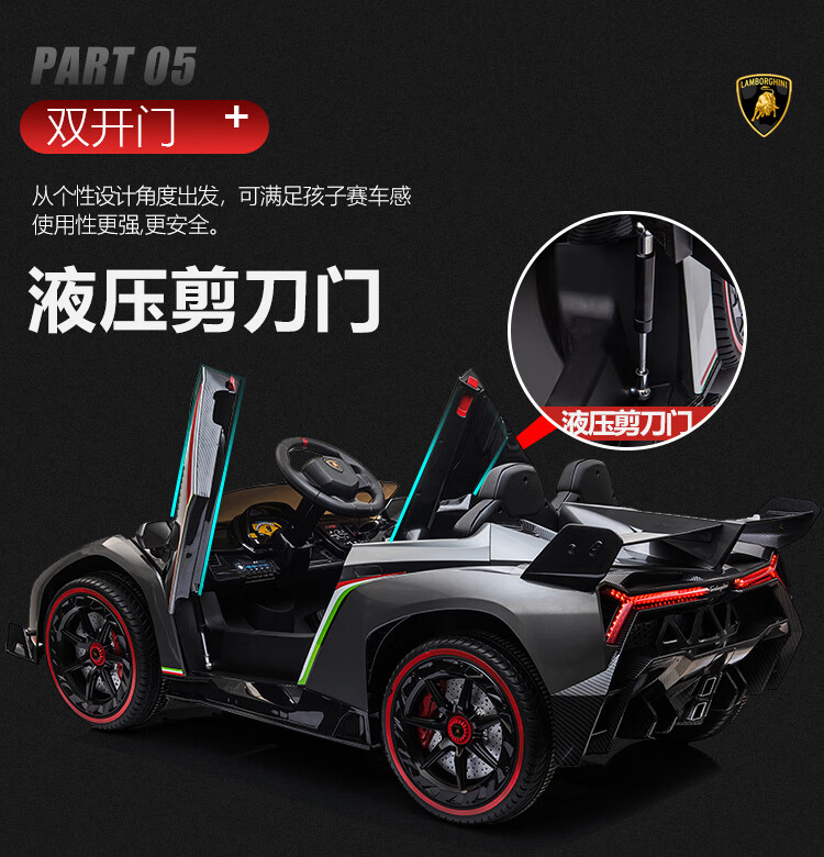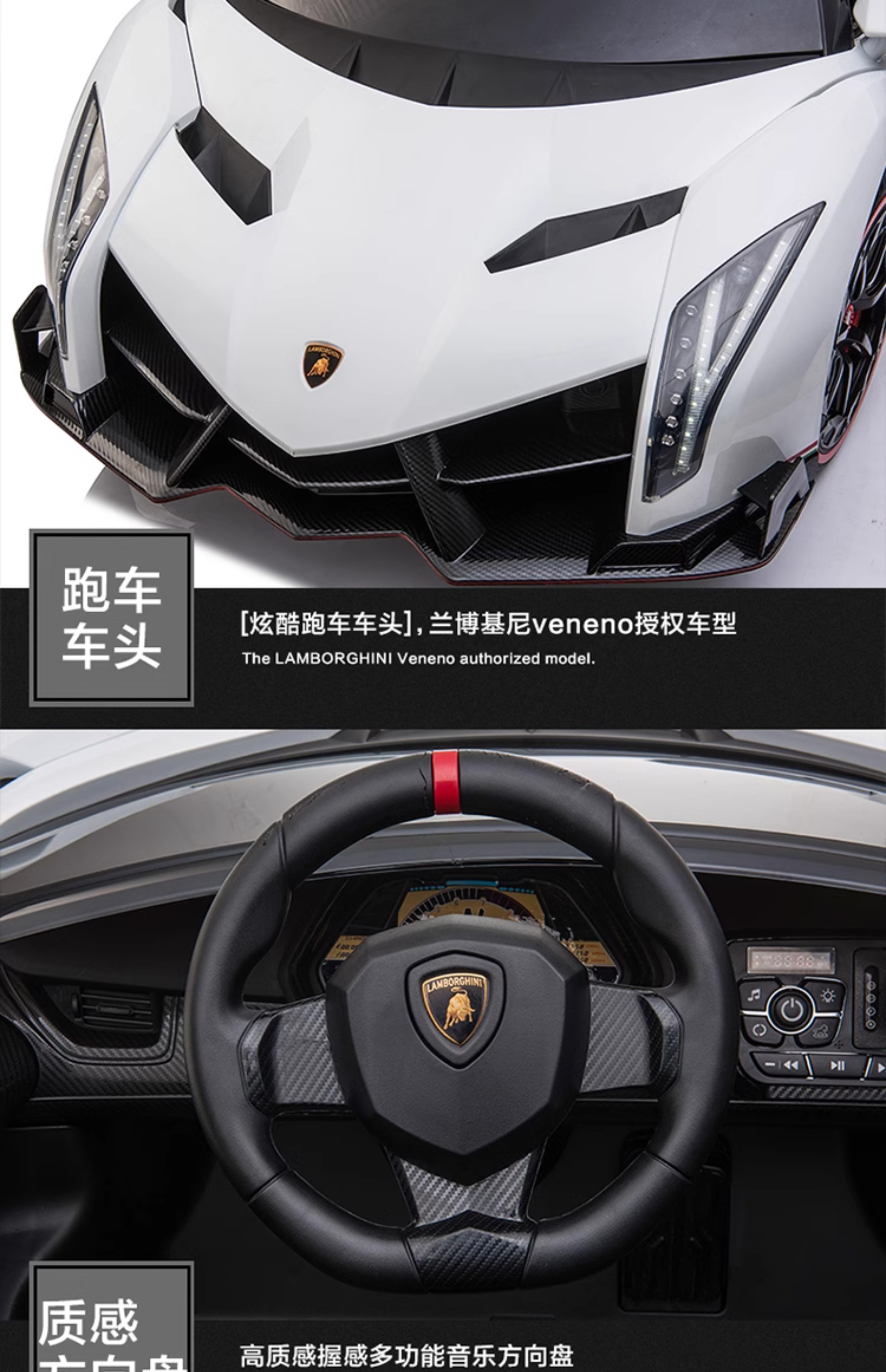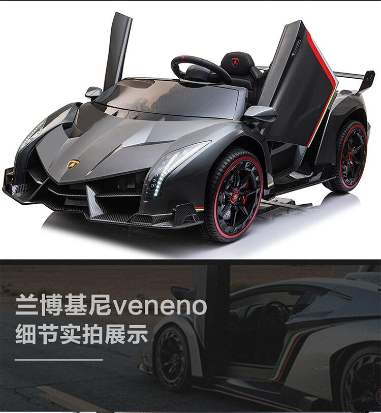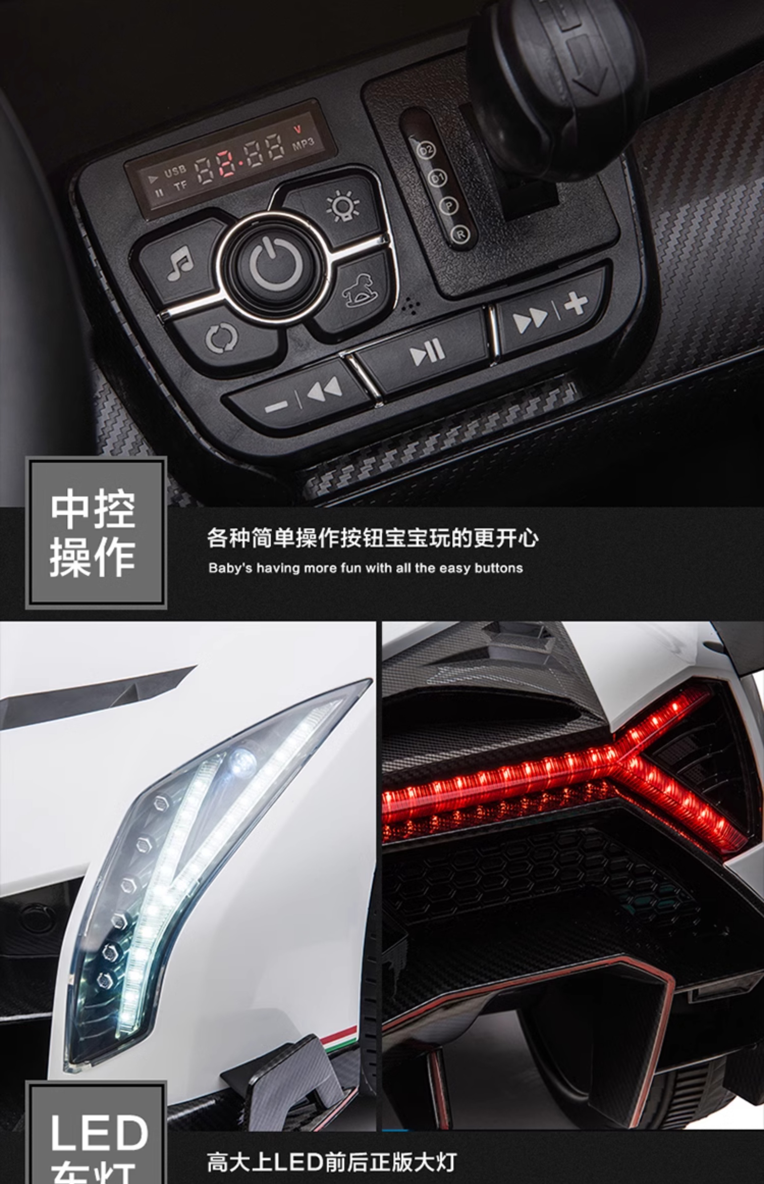 Xingchenhao Lamborghini children's electric car four-wheeled with remote control toy car can seat men and women baby two-seater stroller, painted silver MP4 LCD screen + four-wheel drive + leather seat + soft tire, double seat + scissor door + Bluetooth + music + swing
