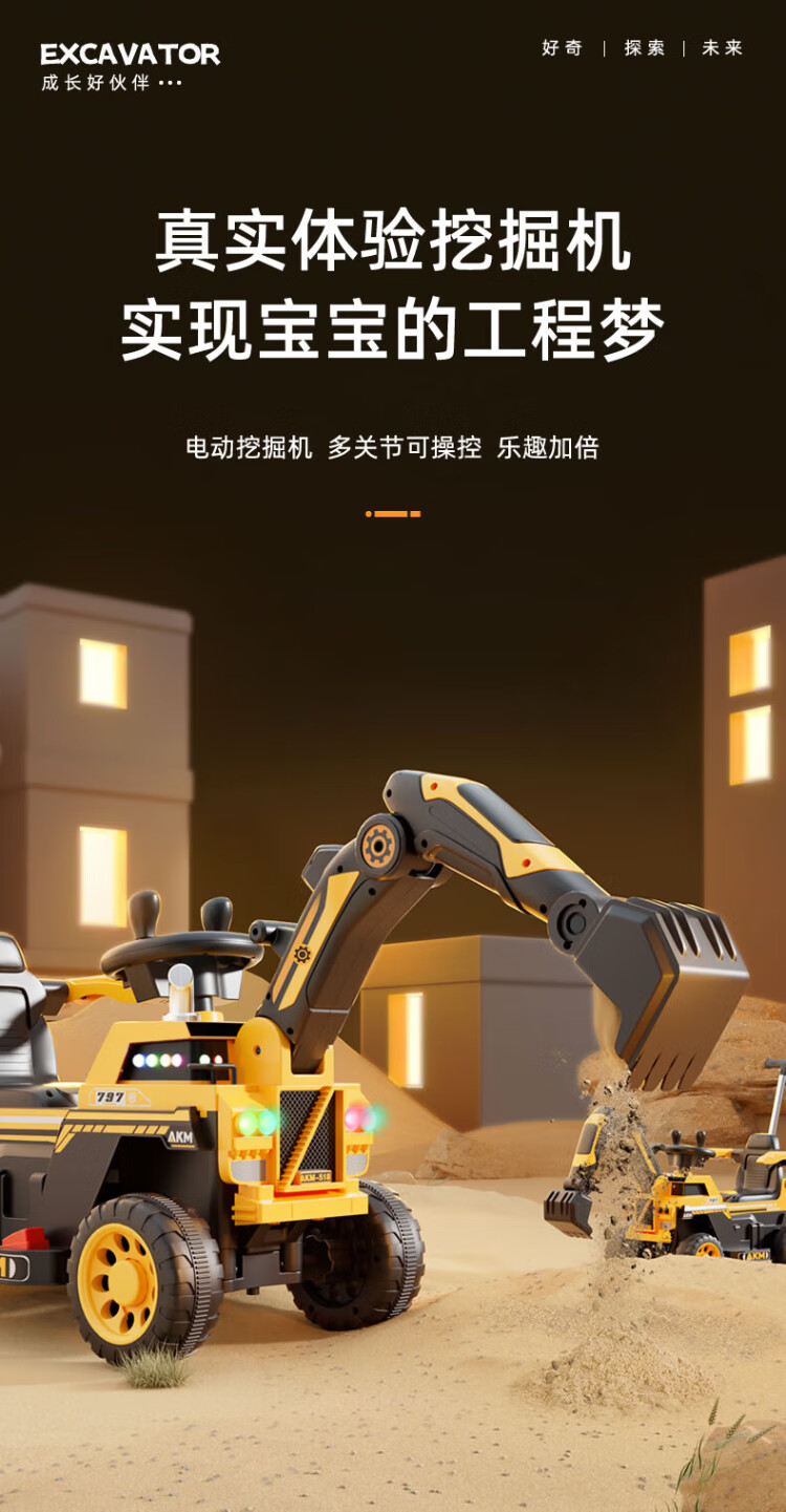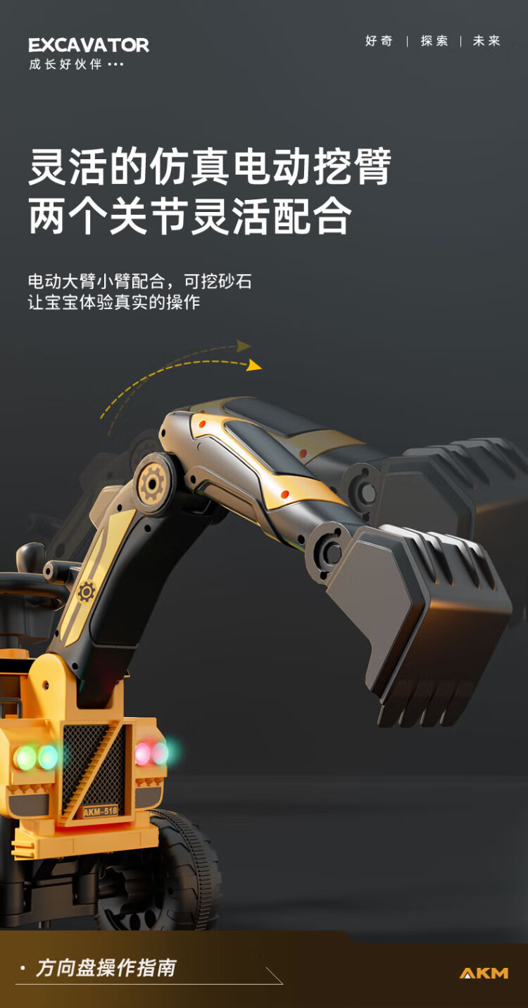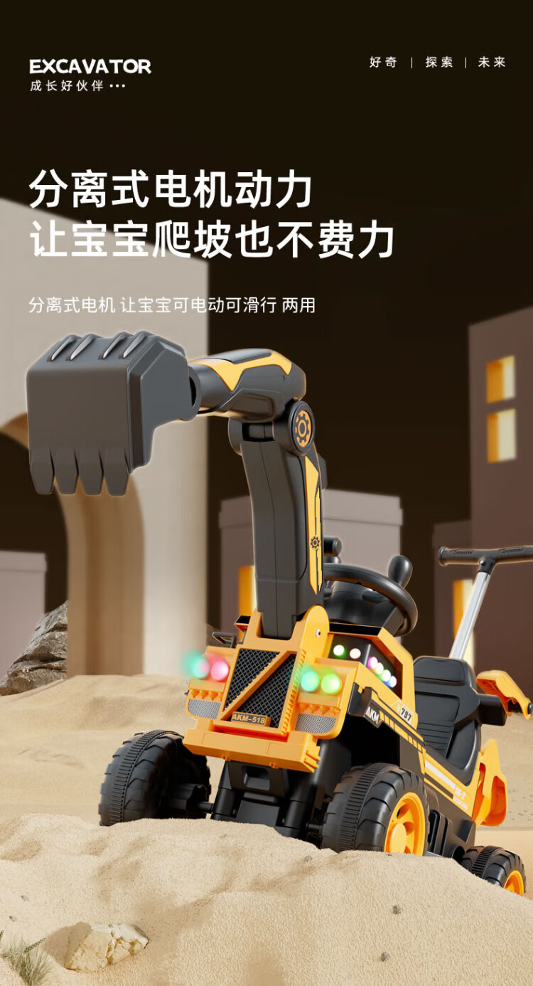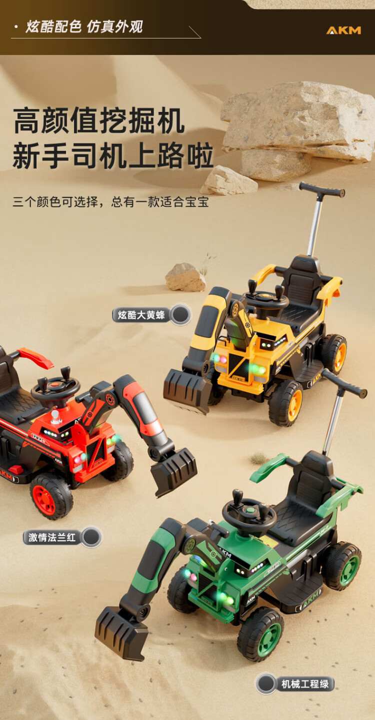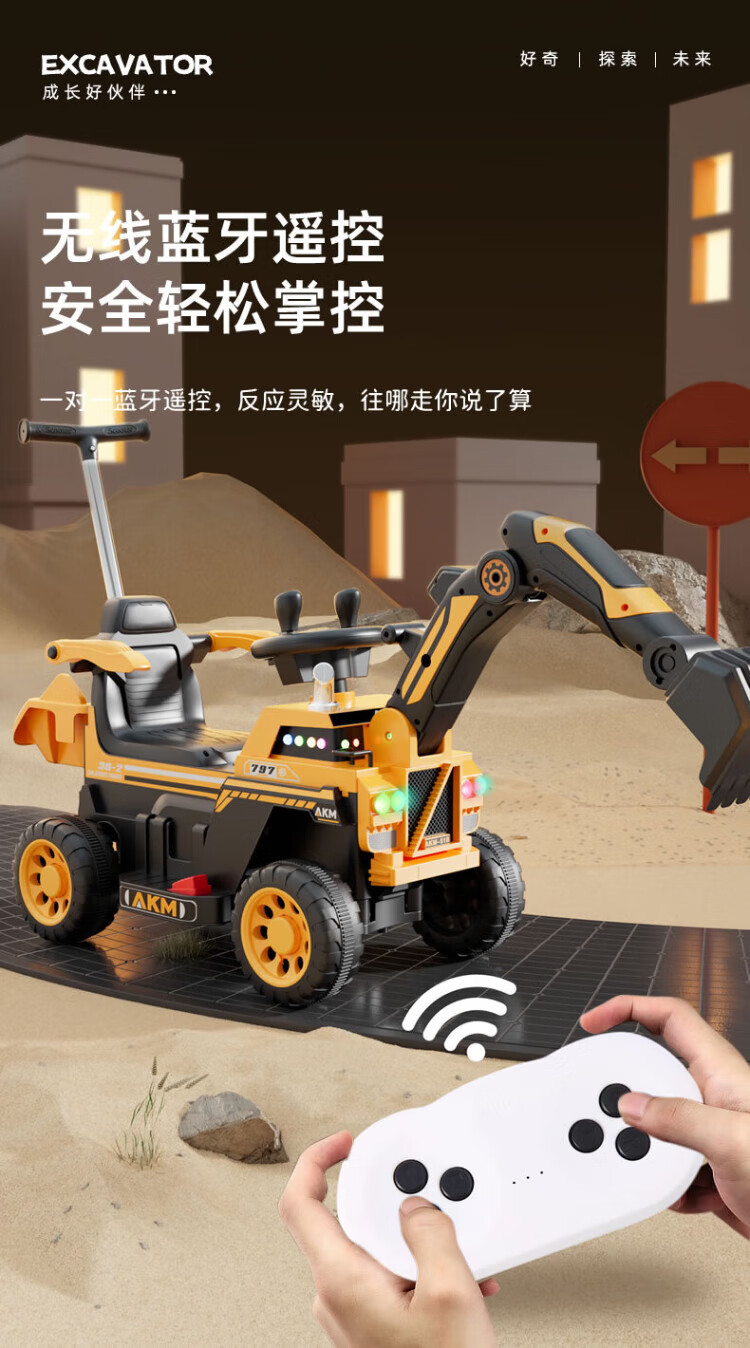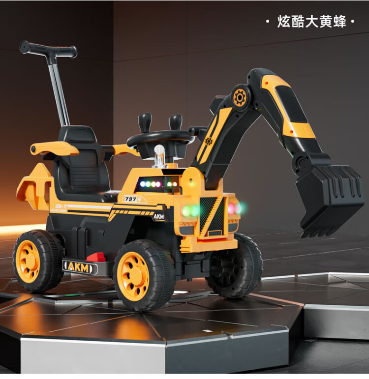 Feige pelle de voiture électrique pour enfants peut s'asseoir sur une personne pour creuser le sol 1-3-6-8 ans garçon bébé télécommande jouet voiture cadeau télécommande bras de creusement électrique poignée de poussée musique et éclairage