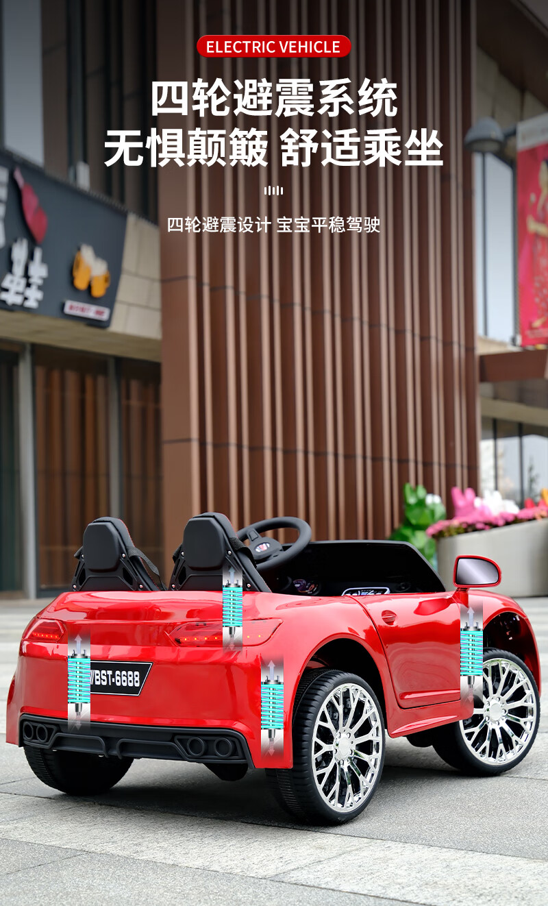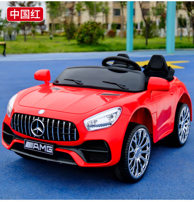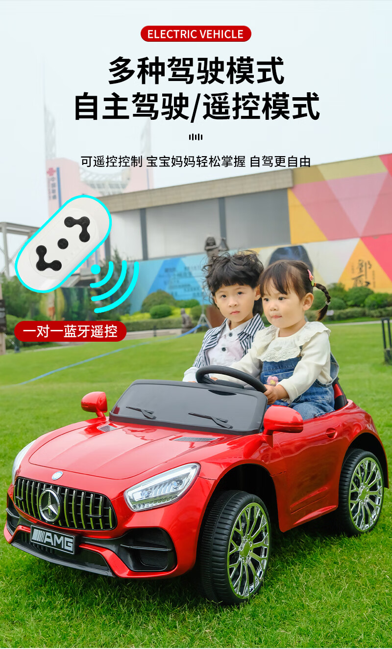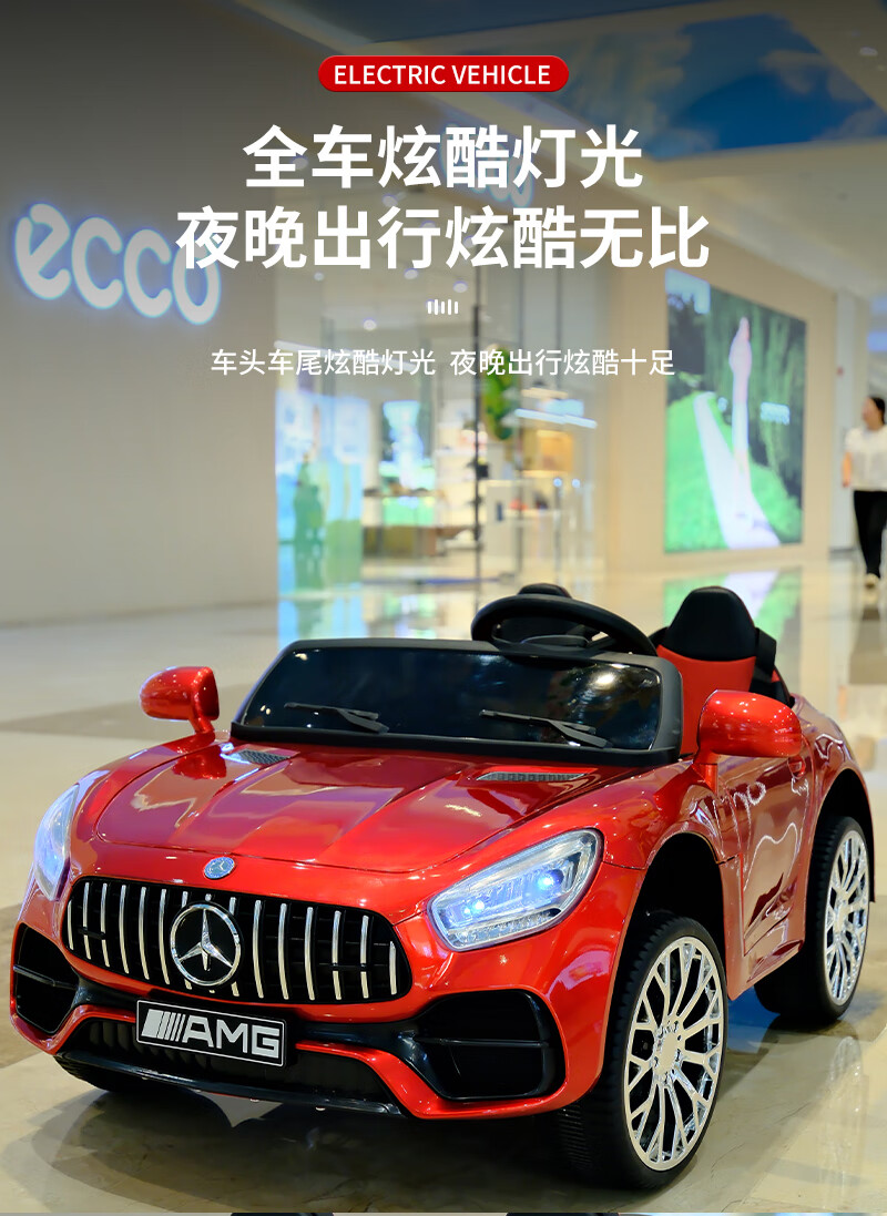 Das No Angel-Kinder-Elektroauto für Jungen und Mädchen kann auf einem Zwei-Personen-Mercedes-Benz-Elektroauto für Kinder mit ferngesteuertem Baby-Allrad-Kinderwagen sitzen, Luxus-Rot + Allradantrieb + Ledersitz, weiche Räder + 12V7A-Batterie