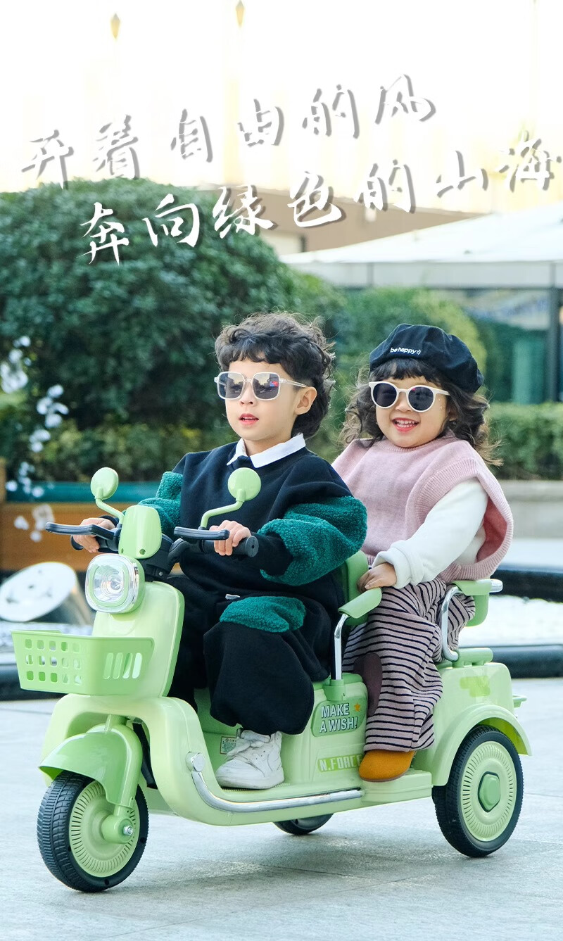 Le tricycle de moto électrique pour enfants Aobele peut accueillir des adultes, des hommes et des femmes, une voiture pour bébé, une voiture jouet télécommandée à double charge pour enfant, couleur café + batterie 12V7A + éducation précoce + Bluetooth + télécommande