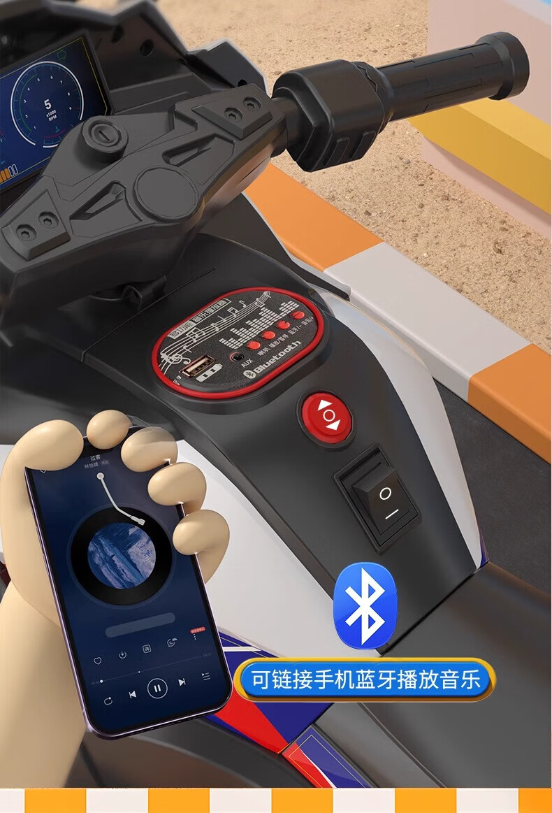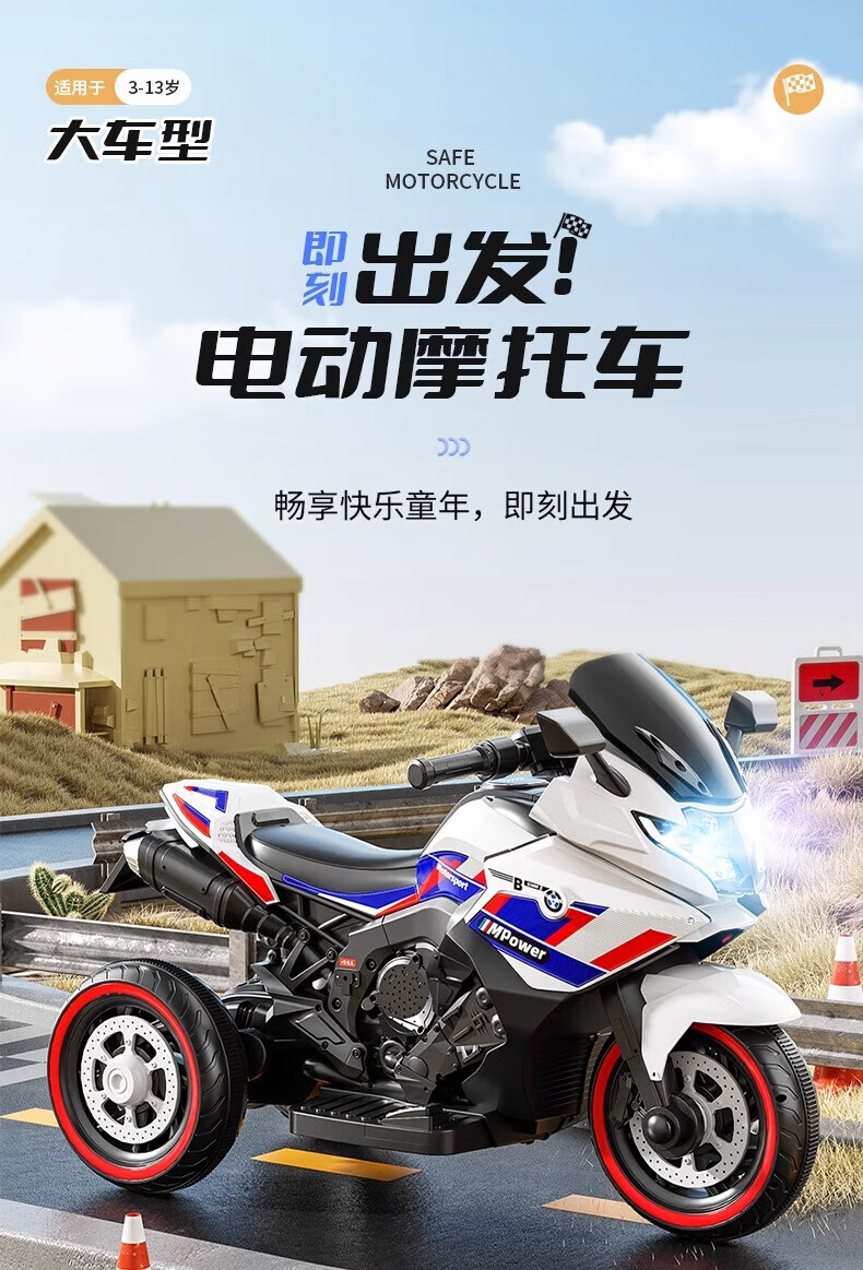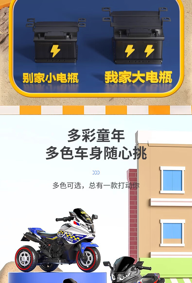 Beiq voiture électrique pour enfants moto 1-3-6 ans bébé tricycle voiture jouet pour enfants peut s'asseoir dans une personne télécommande batterie voiture grande voiture de police télécommande bleue double entraînement + Bluetooth + siège en cuir 1-7 ans anniversaire cadeau de la fête des enfants