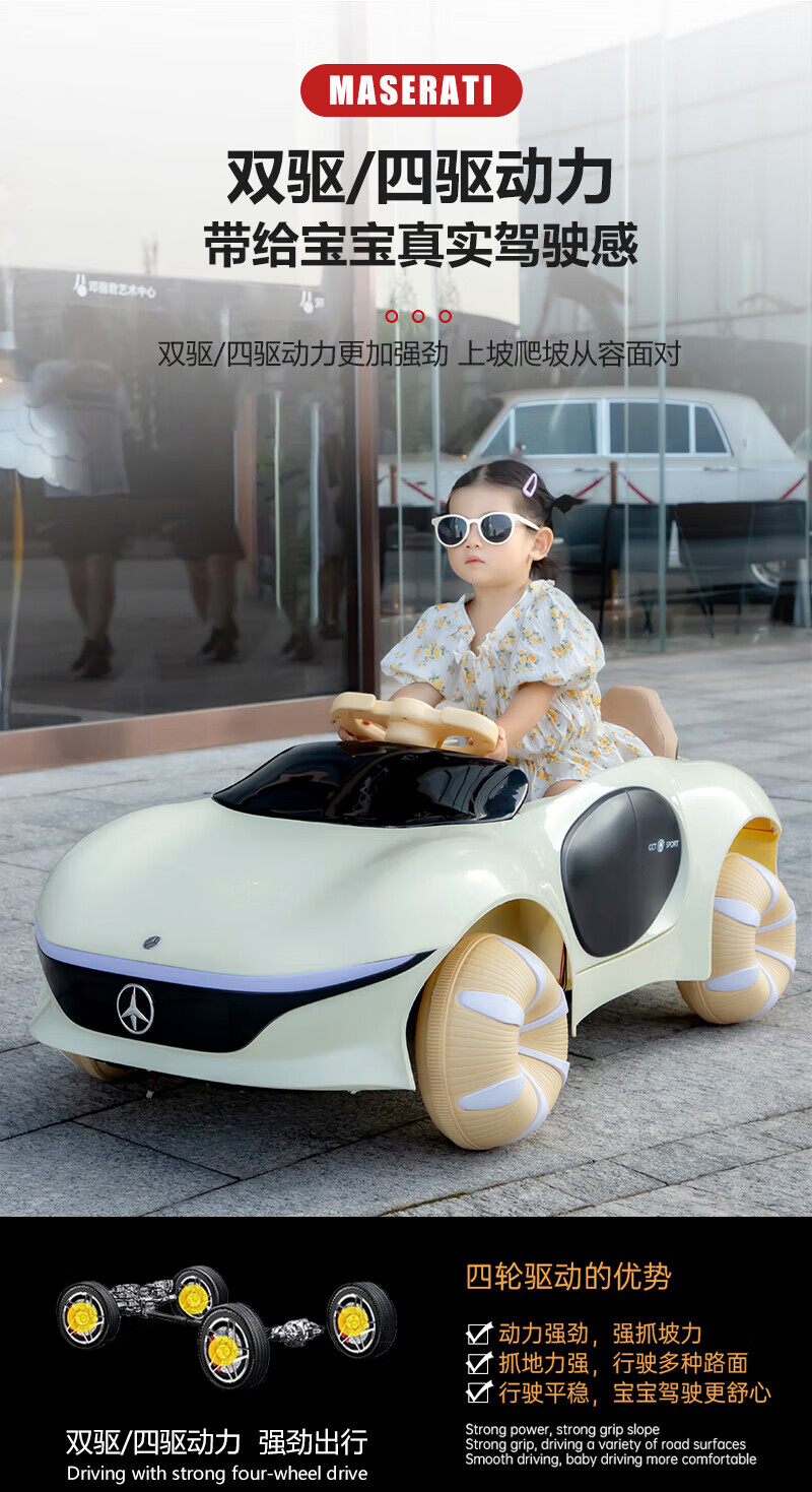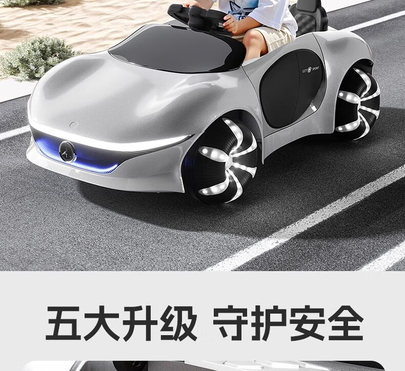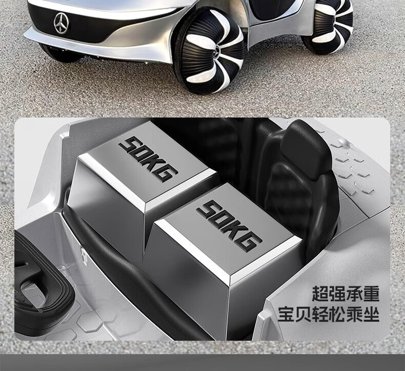 Liuwan Kinder Benchi Elektroauto Allradauto 1 9 Jahre alt mit Fernbedienung Baby Junge und Mädchen Spielzeug kann auf Geschenk sitzen, silber lackiert, Lithiumbatterie + volle Funktion + Ledersitz + Fernbedienung
