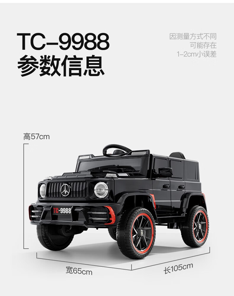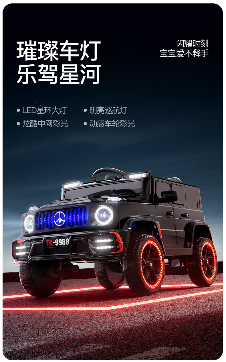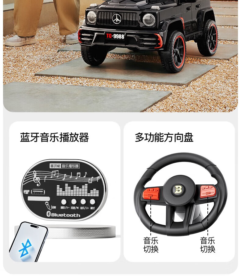 Maiduo Bear Mercedes-Benz Big G voiture électrique pour enfants peut s'asseoir sur quatre roues avec télécommande pour enfants tout-terrain et cadeaux pour bébés, peinte en noir, télécommande à quatre roues motrices + siège en cuir musical Bluetooth + roue flash en mousse