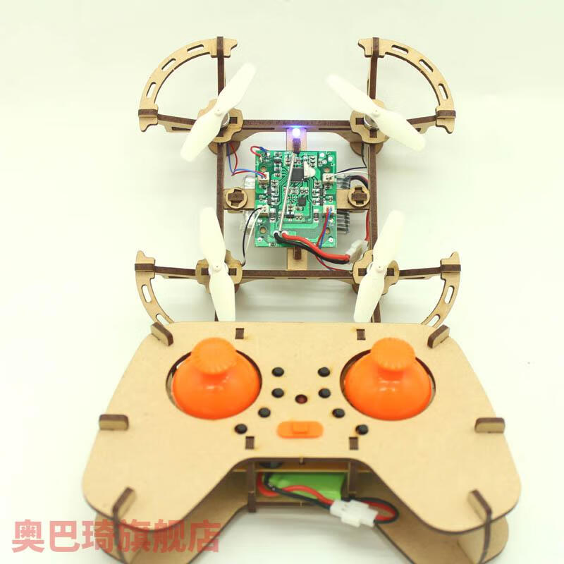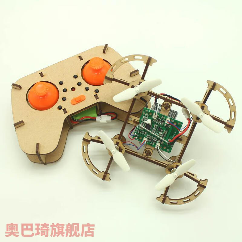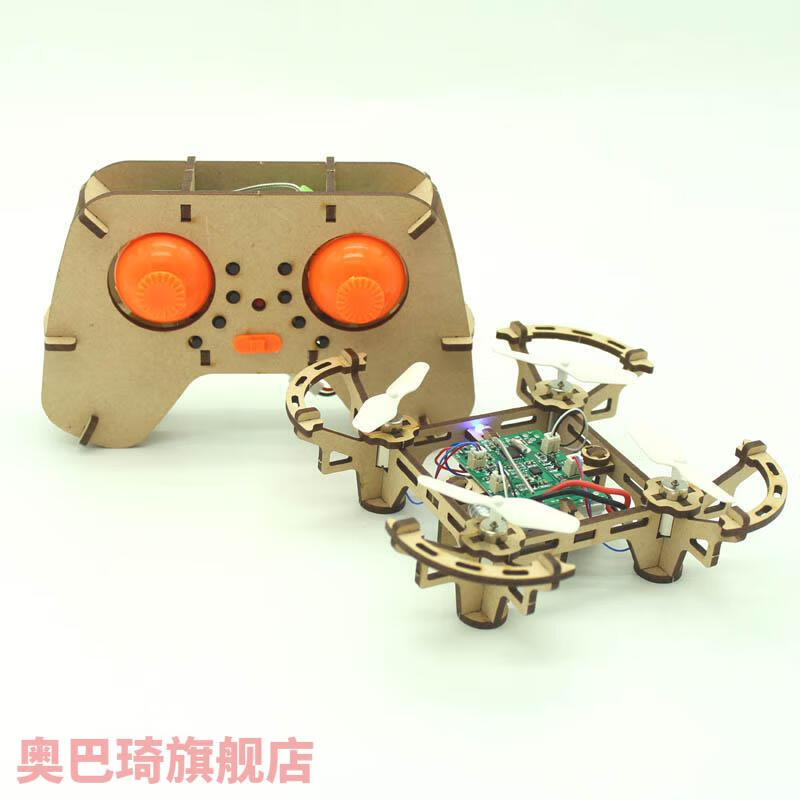 Wooden assembled DIY quadcopter drone model school science and education experiment remote control aircraft model training remote control battery