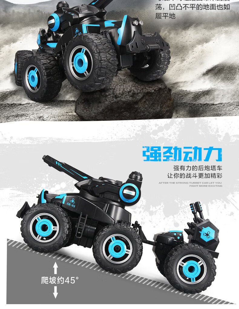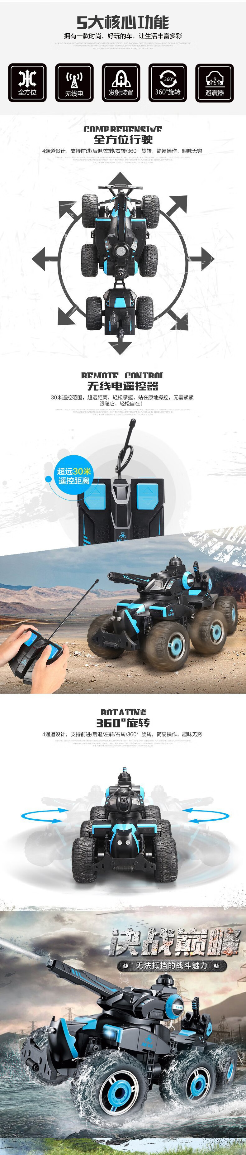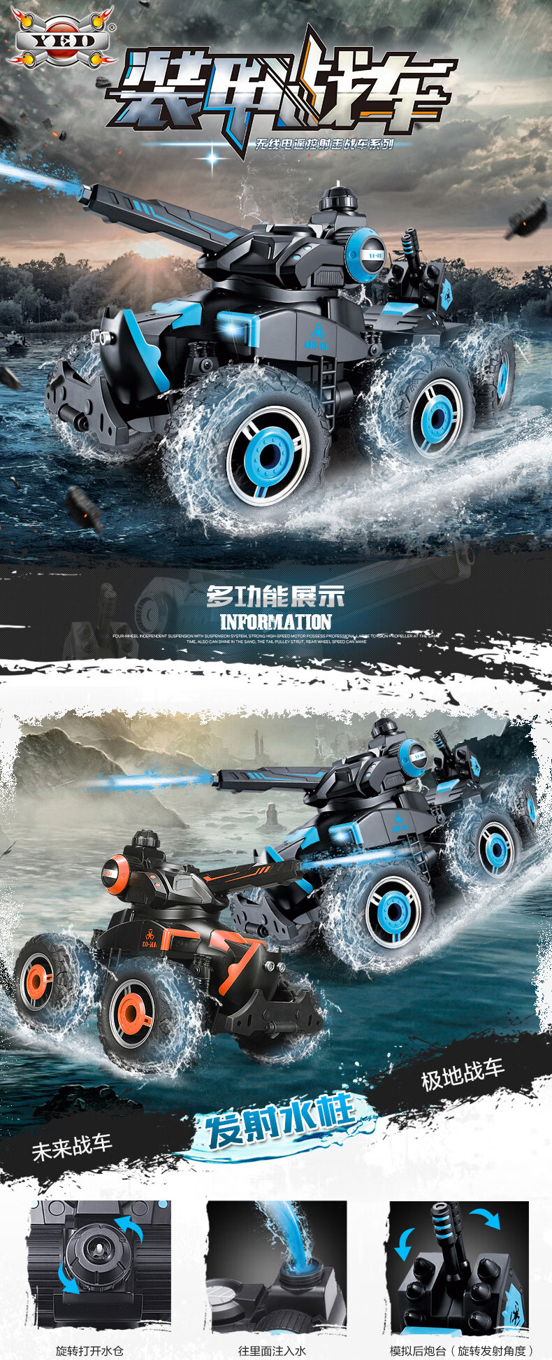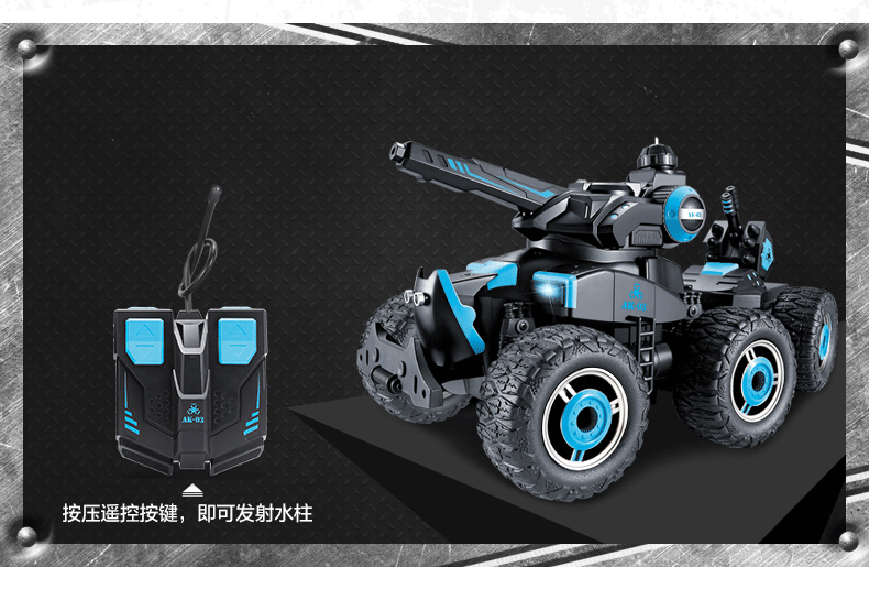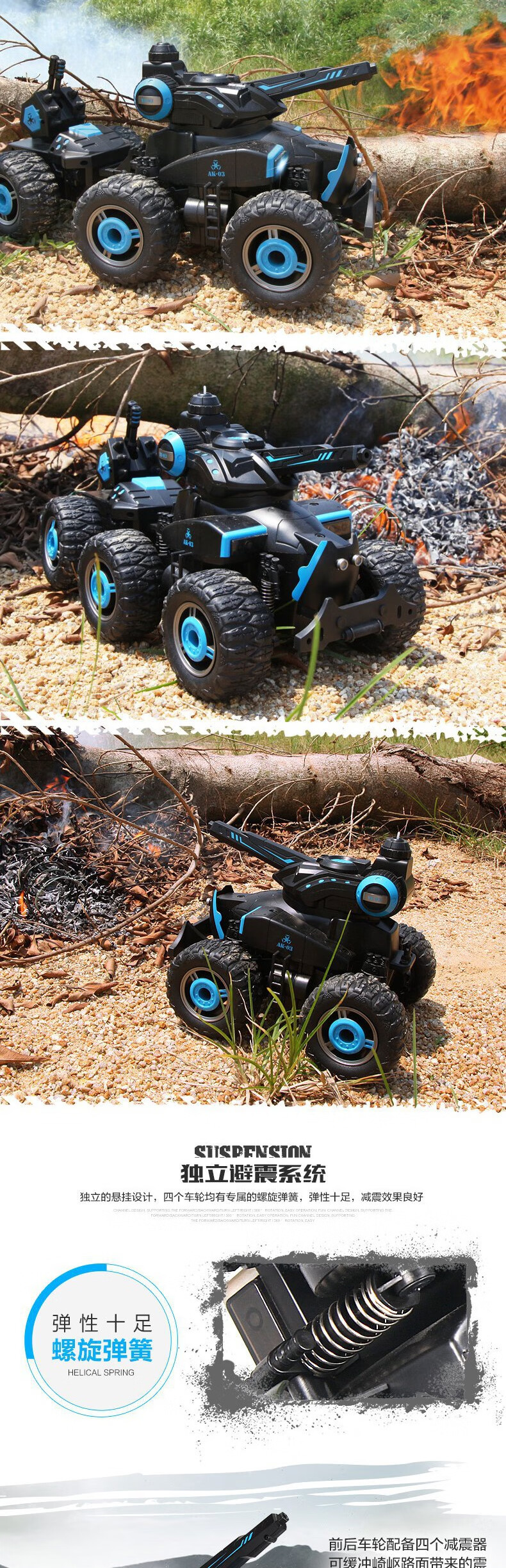 All-American (FERPECTTOYS) carro de seis ruedas con control remoto, coche de juguete de carga, canal de tracción en las cuatro ruedas, tanque con control remoto, regalo para niños, puede rociar agua, carro rociador de agua de seis ruedas, azul y negro
