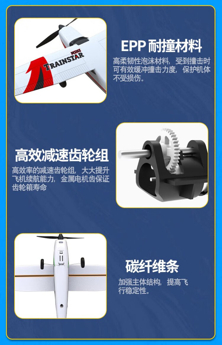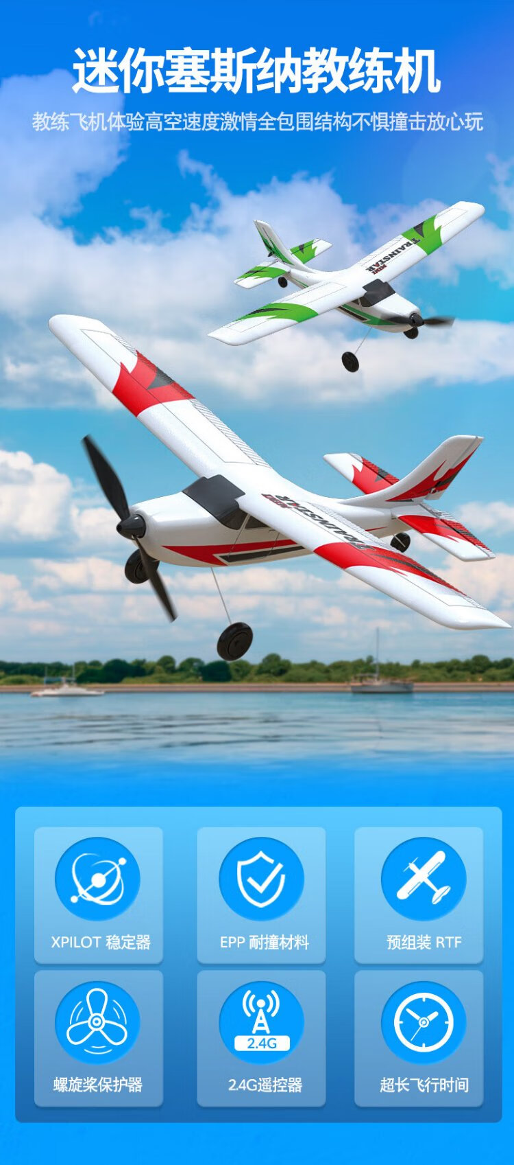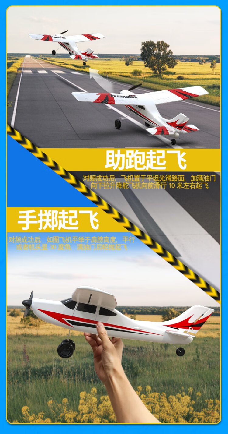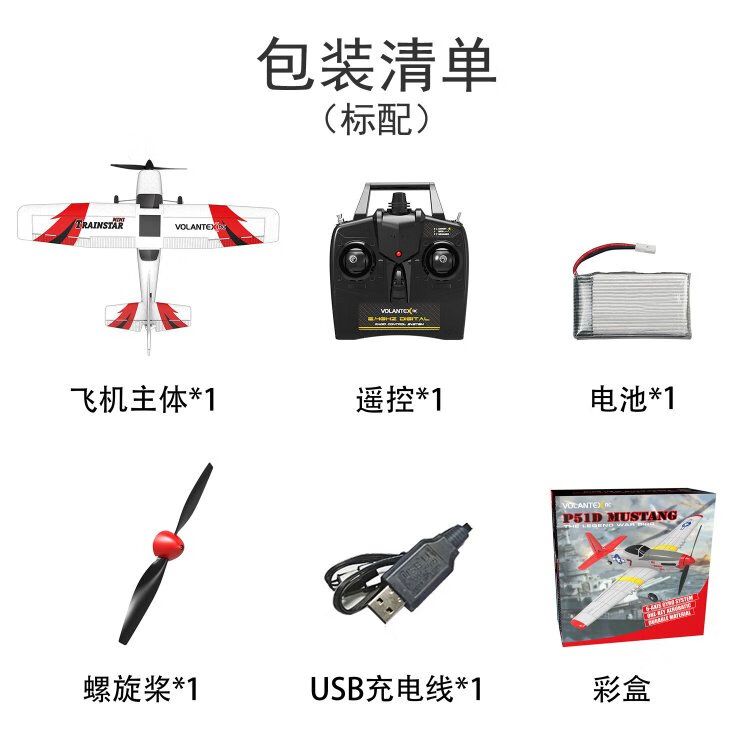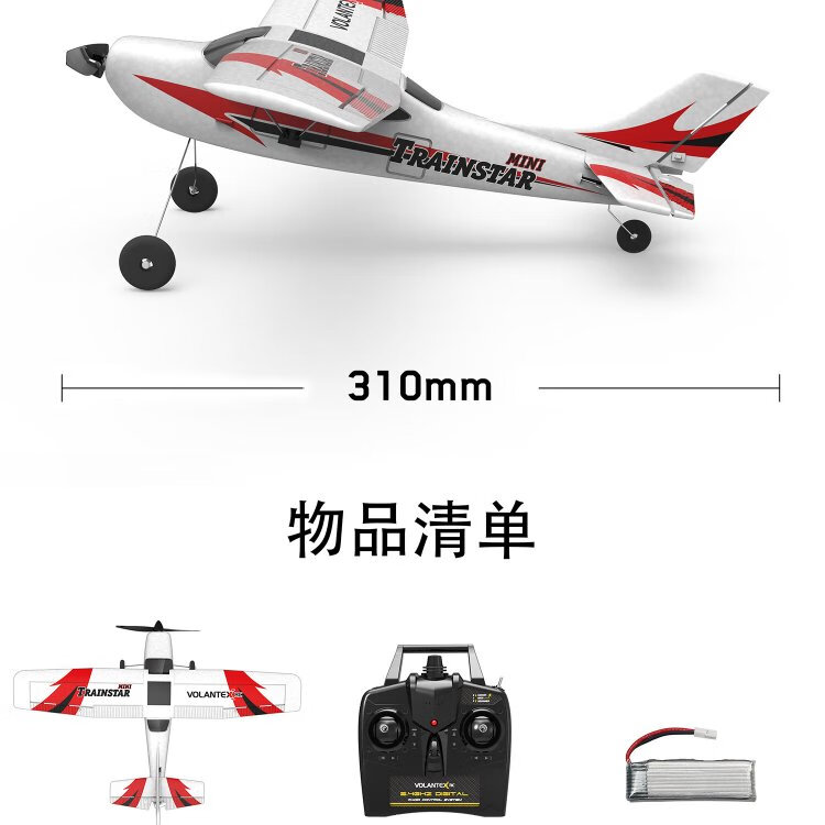 VOLANTEXRC塞斯纳三通道遥控飞机固定翼航模教练机滑翔机泡沫机入门新手系列 20分钟续航SPORTCUB400毫安 单机版 不带遥控电池充电线