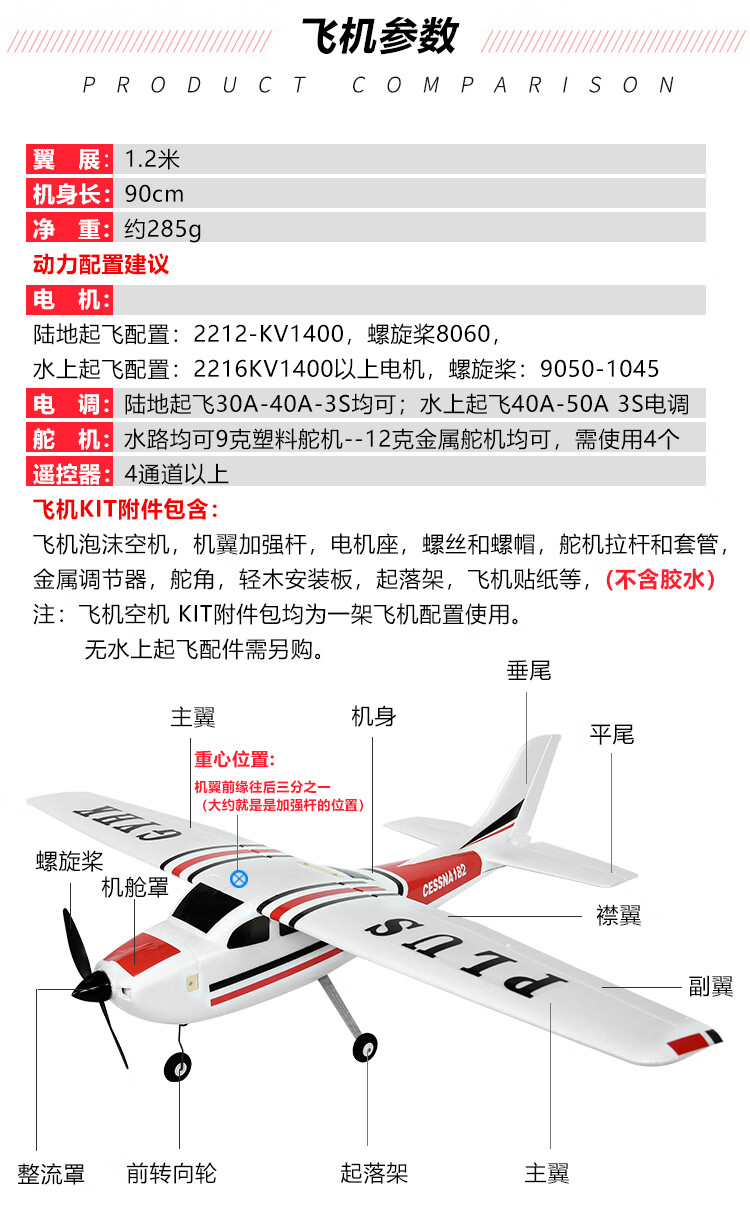 Cessna 182PLUS modèle d'avion d'entraînement à voilure fixe avion d'entraînement air-air télécommande avion planeur formation PNP puissance avancée (rouge) version XT60 Cessna 182PLUS