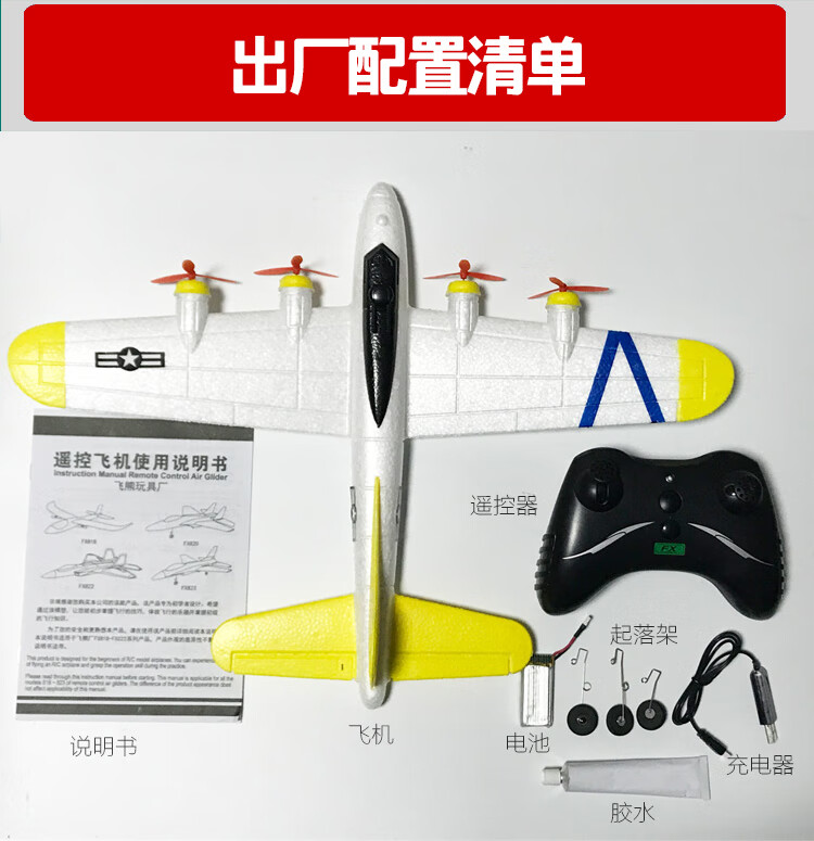 俏羽遥控飞机战斗机二战滑翔机固定翼航模战斗无人机儿童玩具 小号苏27黄色【收藏配件】 一块电池(飞15-20分钟)