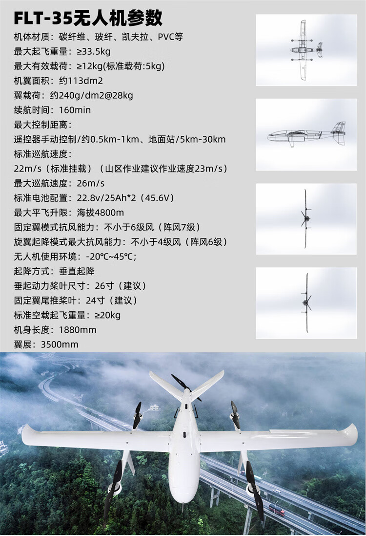 Lingle 3,5 mètres d'envergure à voilure fixe décollage et atterrissage vertical UAV inspection de la queue en V enquête d'arpentage et de cartographie avion version personnalisée package un à voilure fixe