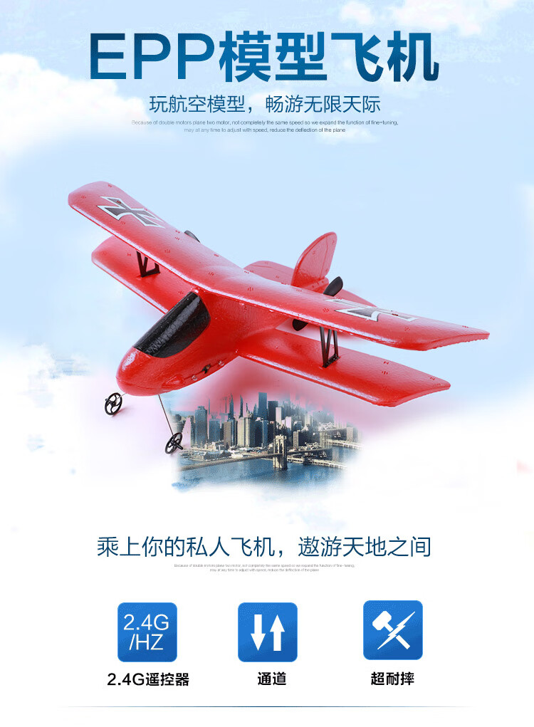 Planeur télécommandé FX808, biplan facile à piloter, modèle d'avion à voilure fixe avec lumière clignotante, avion télécommandé FX808, en rupture de stock (discontinué une fois épuisé), équipement standard