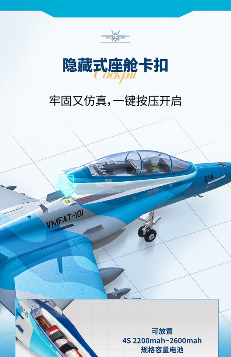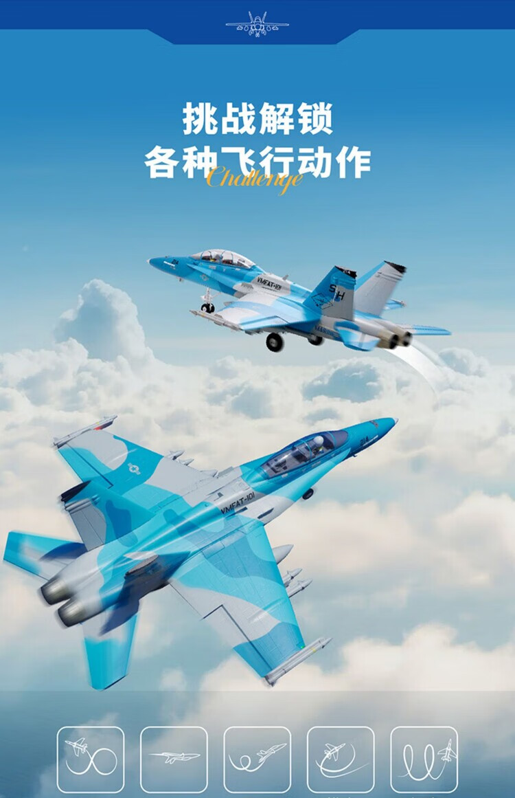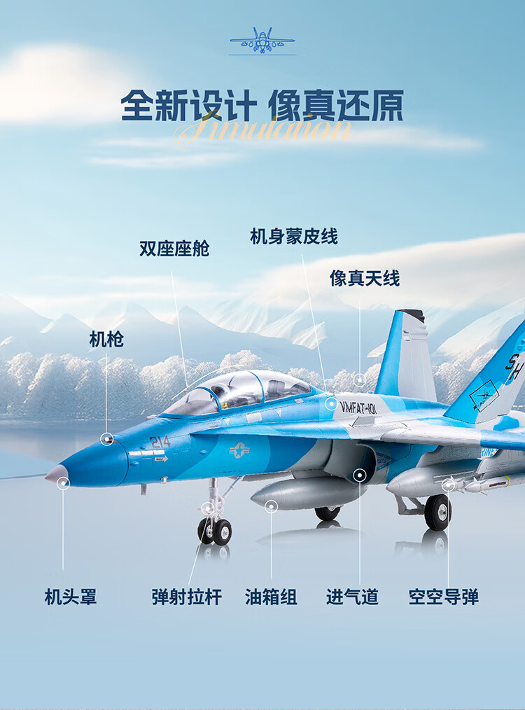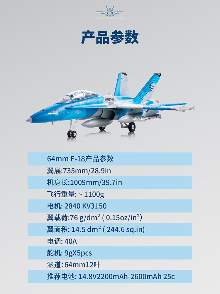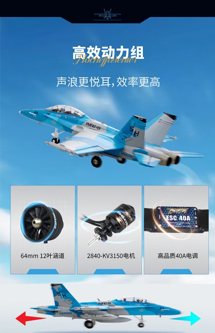 Modèle d'avion FMS 64 mm F-18 simulation télécommande électrique avion à voilure fixe performance extérieure modèle d'assemblage à grande vitesse camouflage bleu-PNP-hors Ruifei-XT60