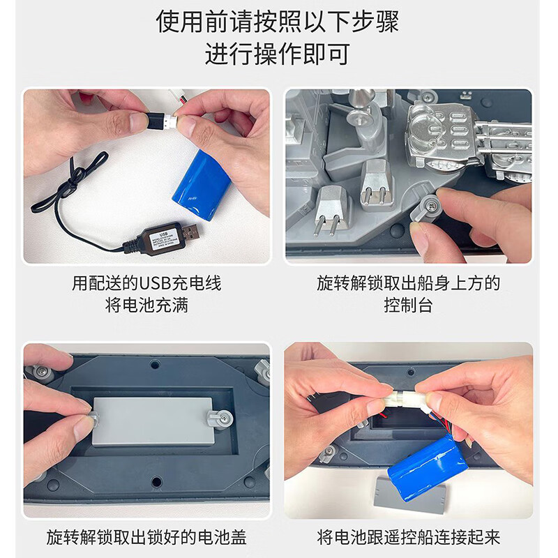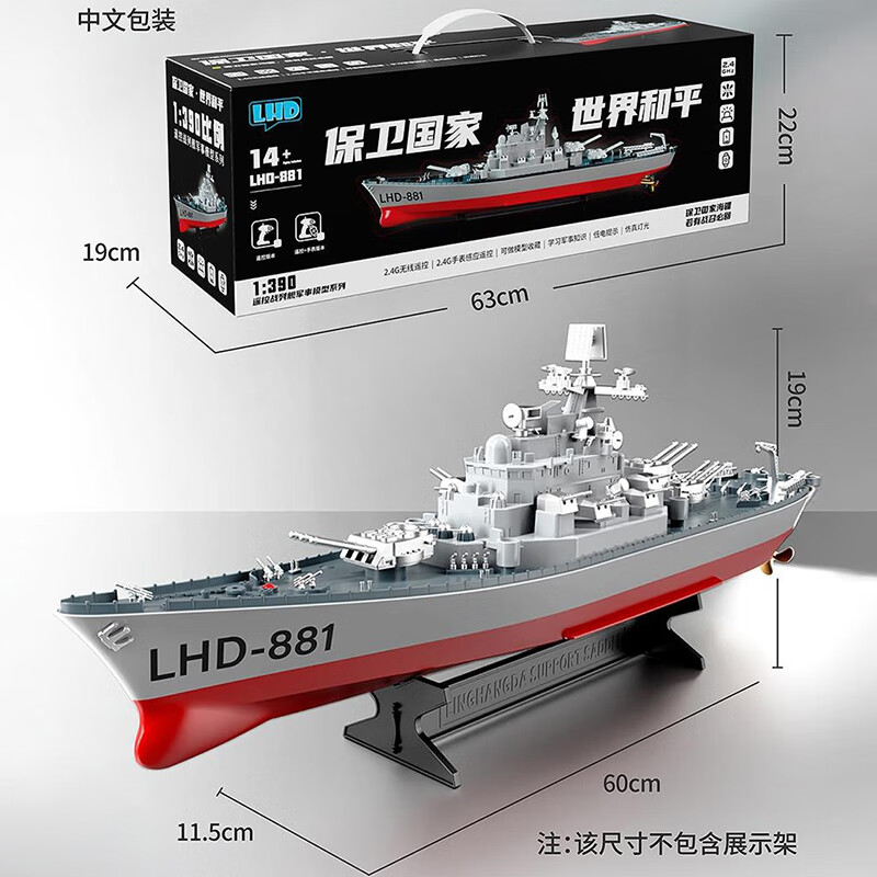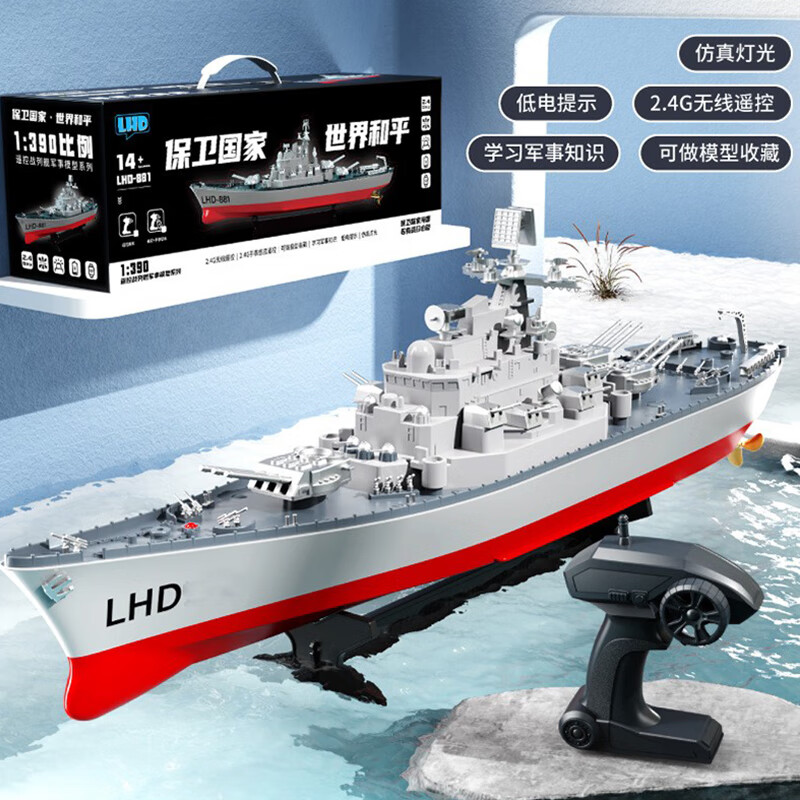 超大号遥控船高速快艇模型男孩儿童礼物船模玩具可下水电动船 60cm战列舰LHD