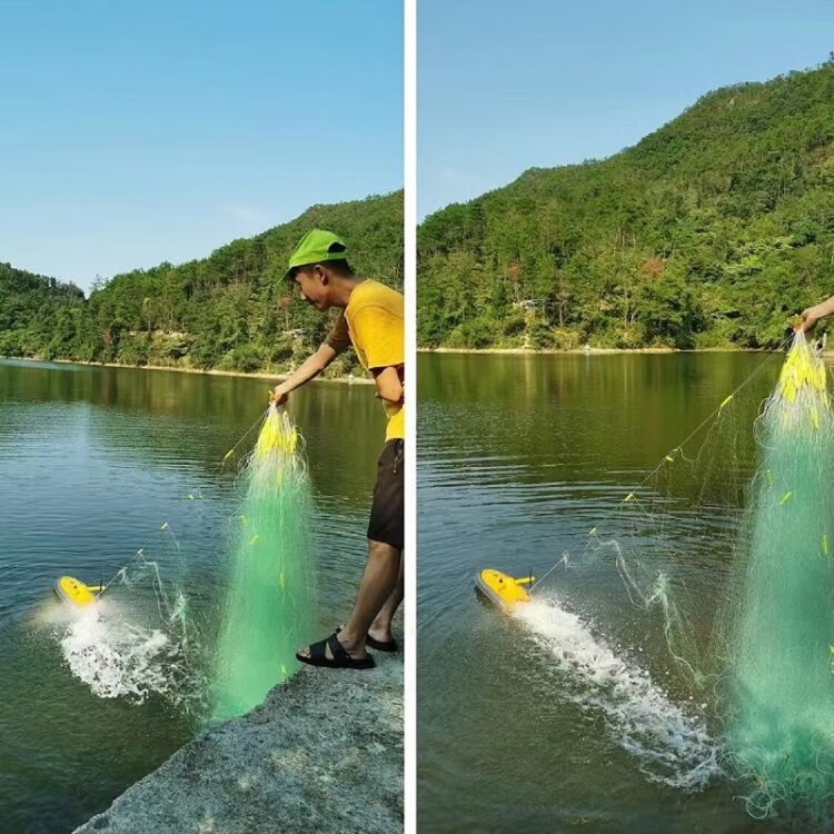 Qiwang professionelles Dragnet-Boot mit Fernbedienung, Schnellboot, superhohe Leistung, automatisches Ein-Knopf-Aushaken, Angeln, Drag-and-Drop-Fischernetz, elektrisch, Hochleistungs-Ein-Knopf-Aushaken, 40-Minuten-Version, professionelles Schleppnetz (einzeln elektrisch)