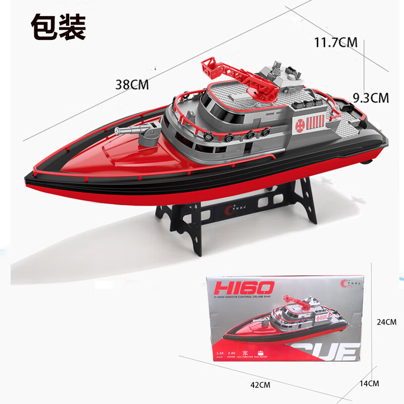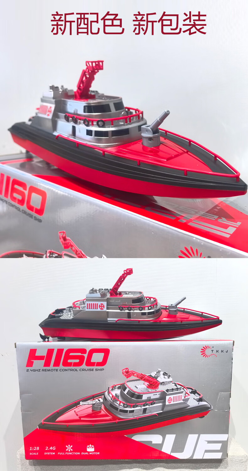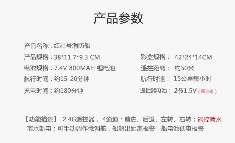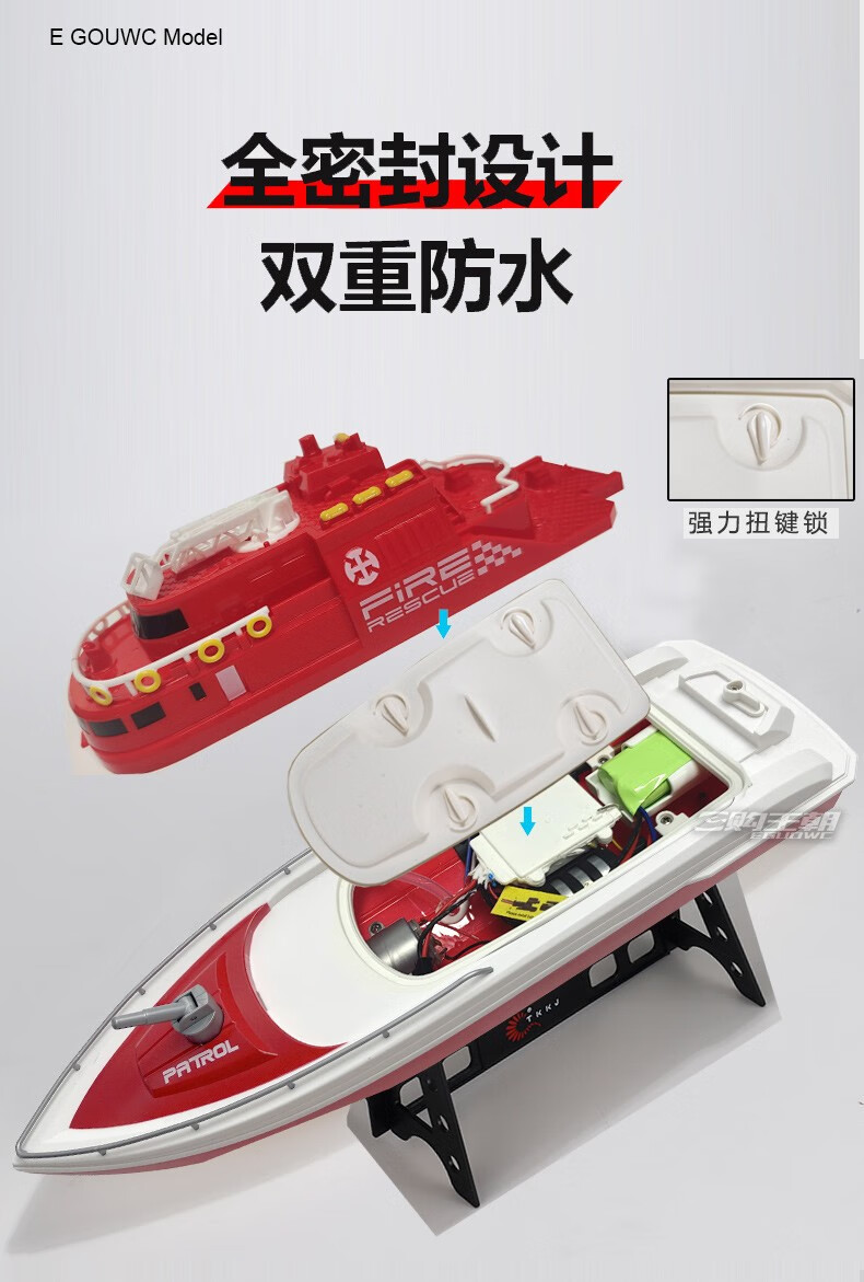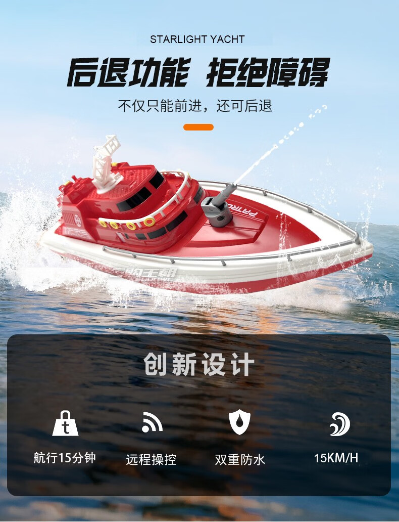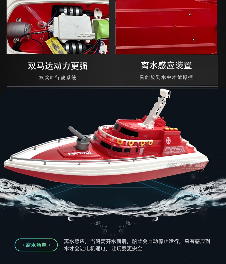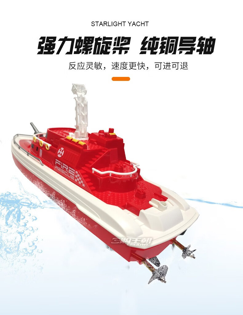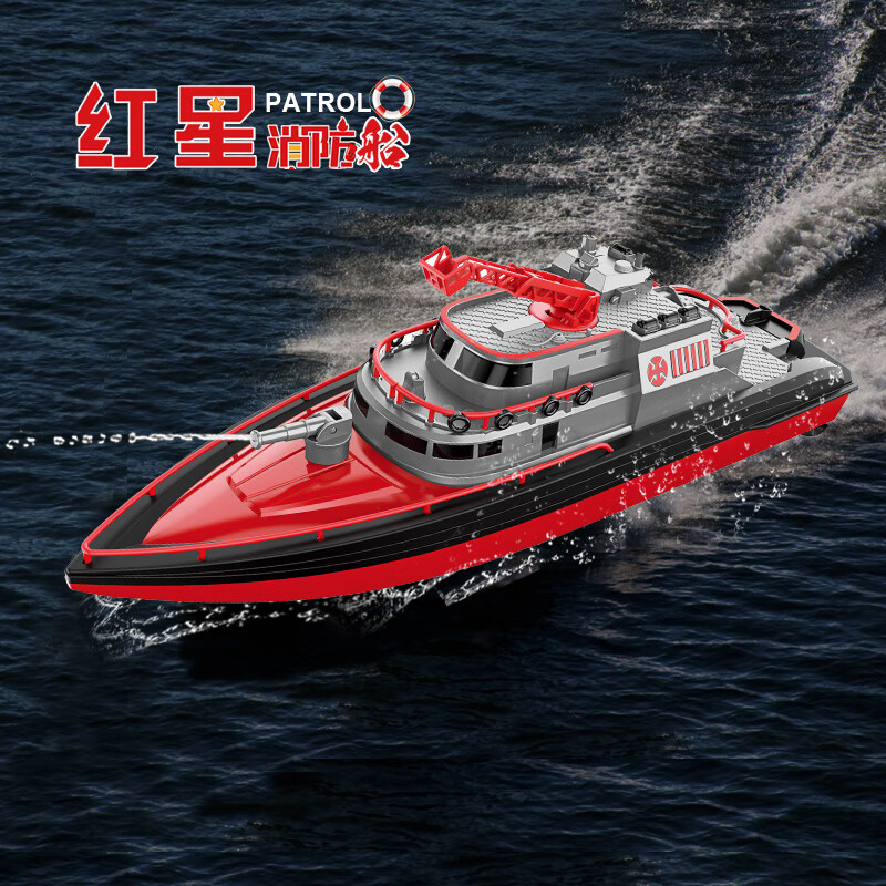 遥控消防船喷水充电高速快艇儿童男孩无线电动水上玩具轮船模型 红星—喷水消防船 单电版(约行驶15分钟)