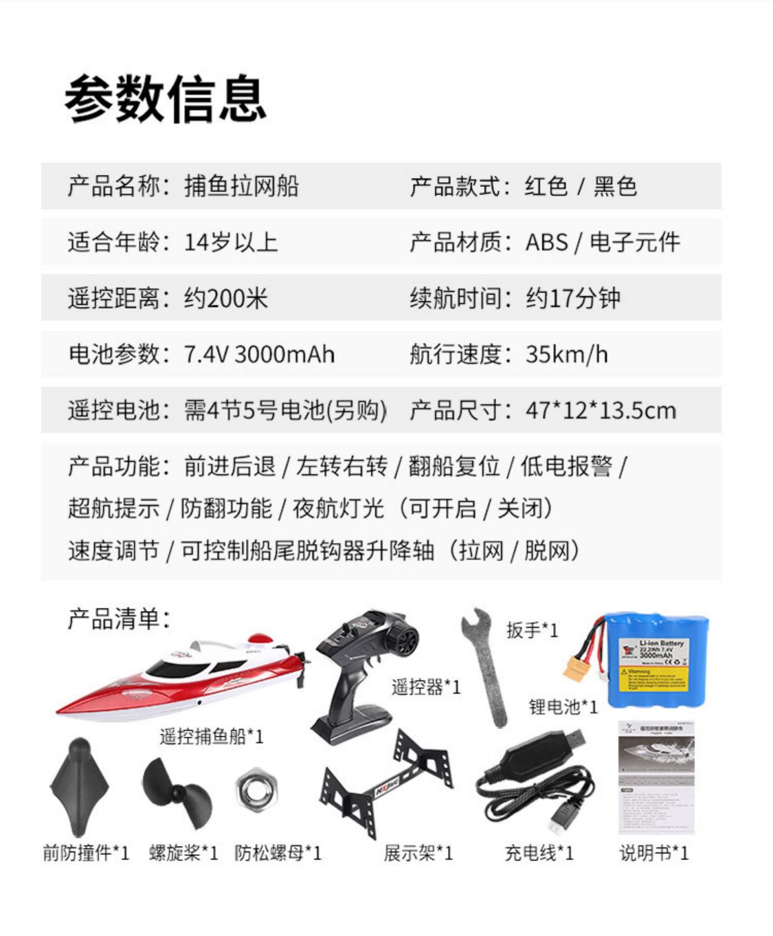 启旺(BePep)大马力拉网遥控船快艇捕鱼电动自动一键脱钩放渔网拉线过河拖网 (一键脱钩带包网)拉60米浮网黑绿 一个电池高速续航40分钟