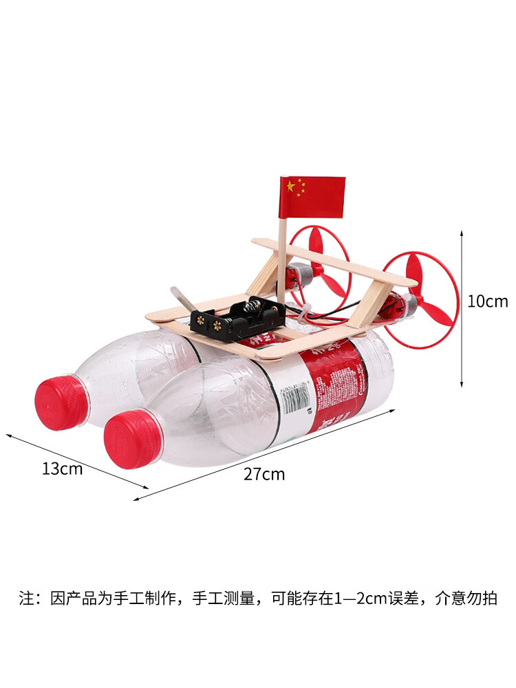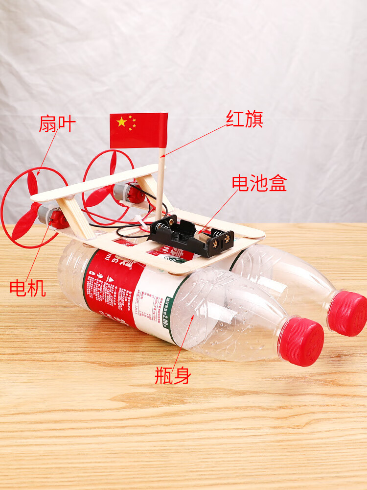 科技制作小发明科学实验手工DIY材料自制动力船变废为宝学生作品 遥控版游艇材料包+颜料